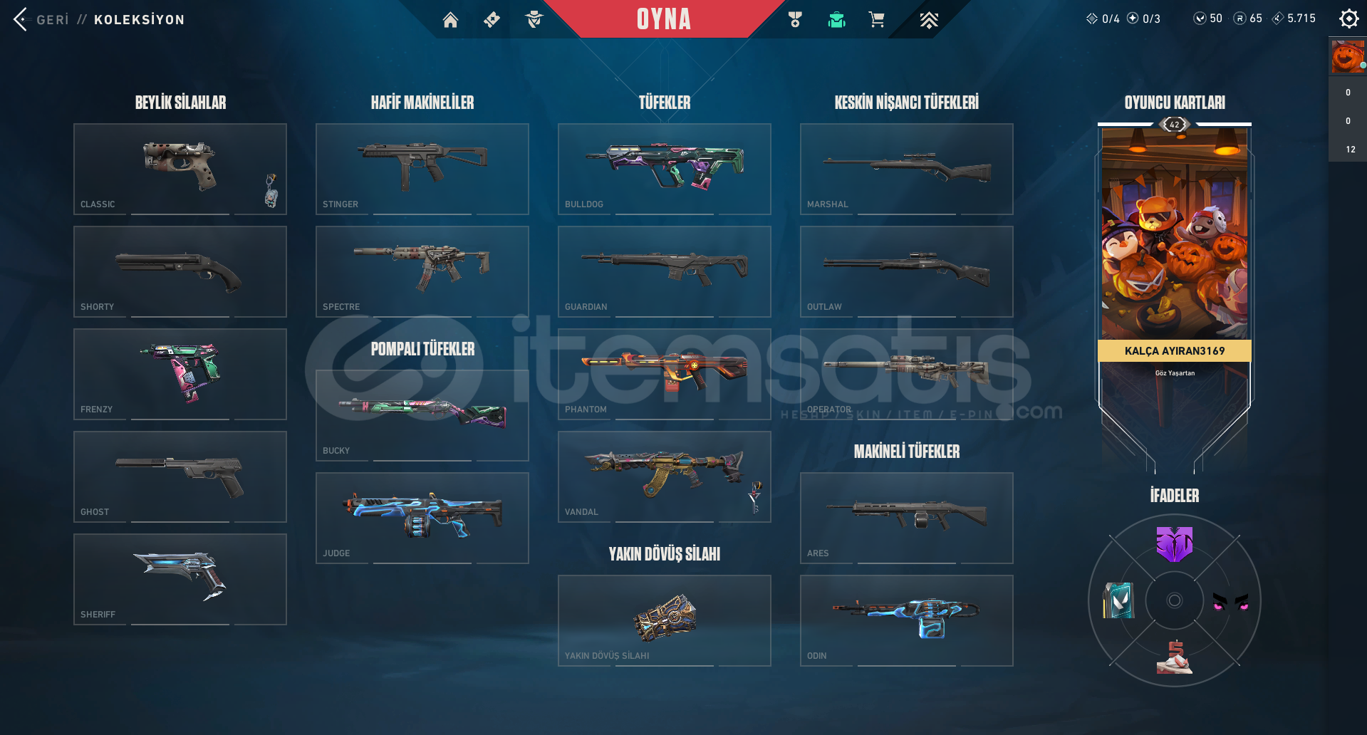Hesaba 3500 tl yatırıldıDİAMOND 1 RANKLIİçerisinde KURONAMİ VANDAL - KURONAMİ SHERİFF - ARCANE VANDAL - ARCANE ELDİVENLERİ - RADİANT ENTERTAİNMET SYSTEM PHANTOM - 1 ADET BİTİRİLMEMİŞ BATTLE PASS bulunmaktahesap benim hesabım kendim kurdum bir yerden satın almadımmakul bir miktarda pazarlık yaparım alıcısına şimdiden hayırlı olsunaklınıza tak...