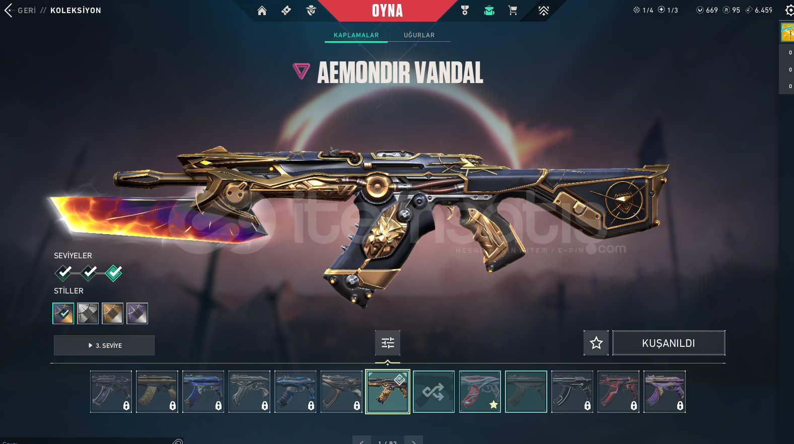 hesabın vp değeri yaklaşık 3500TL’den daha fazladır.🌌 🔥 ULTRA ÖZEL VALORANT HESABI 🔥 🌌💎 Rank: Gümüş 1💥 Seviye: 83 🎨 SKIN ENVANTERİ:⚔️ Aemondır Vandal 🌿 Gaia Vandal 🐉 Oni Phantom 💥 Anomali Sheriff 🔫 Kartuş Bıçak🎁 Kartuş BP’si FULLENMİŞTİR!📧 Mail: Değişim yap...