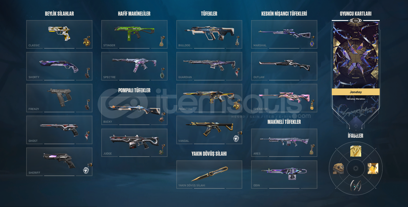 RANK: BRONZE 3LEVEL: 106ENVANTER DEĞERİ: 35,600 VPYoru's Stylish Butterfly CombKuronami VandalChampions 2024 BladeVCT x WOL ClassicMystbloom OperatorChampions 2025 VandalChampions 2025 Butterfly KnifeByteshift KnifeChampions 2024 PhantomSingularity SheriffSingularity VandalReaver GuardianRecon PhantomPrime VandalOni VandalSolarex SheriffOverlay StingerOverlay OutlawOverlay PhantomByteshift JudgeInterhelm ClassicHivemind VandalHivemind AresByteshift OutlawATLAS // CMD ClassicByteshift G...