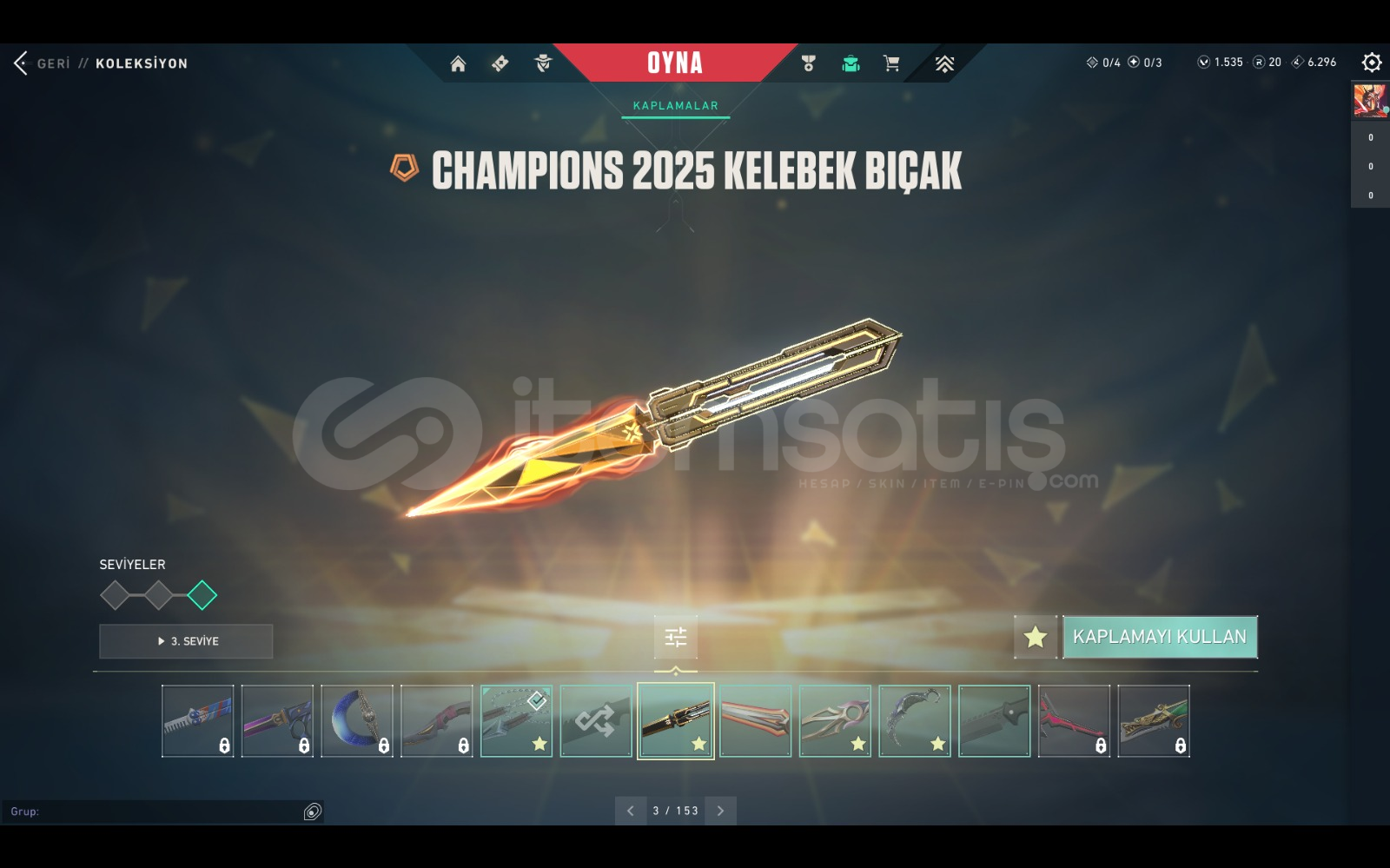 Pazarlık olur Hesap mükemmel hesabın içindekiler bıçaklar= sirçiçeği Kunai champions 2025 kelebek bıçak kuronami no yaiba yağmacı karambit vandallarda= champions 2025 Vandal cesur yürek Vandal kaosun başlangıcı Vandal felaketin kalbi Vandal gaia intikamı vandal marshal=seri tetik marshal öbürleri pass skinleri bu sezonun pass o açık hesapta + olarak 1535 VP 20 RP vardır ...