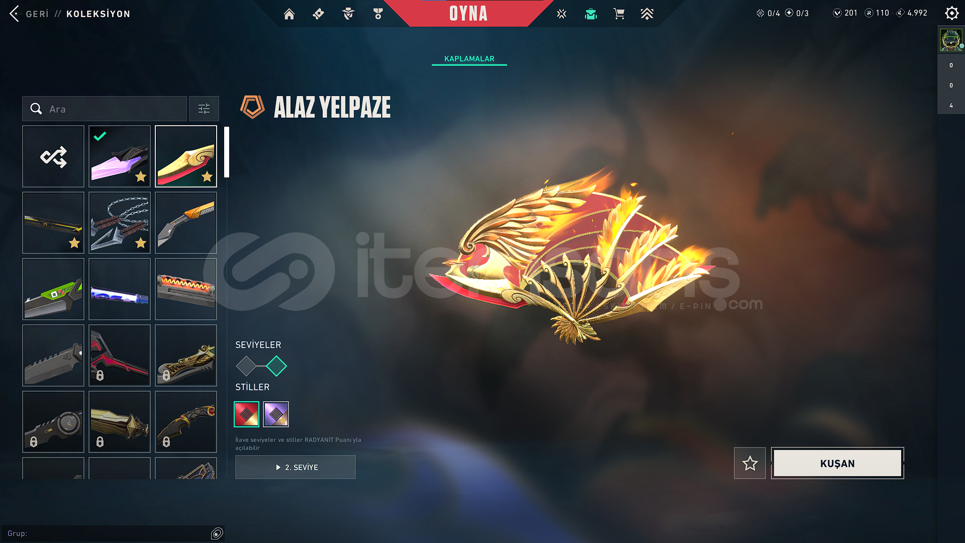Hesaptaki Detaylı Skinlerin Fotoğrafları Linktedir.