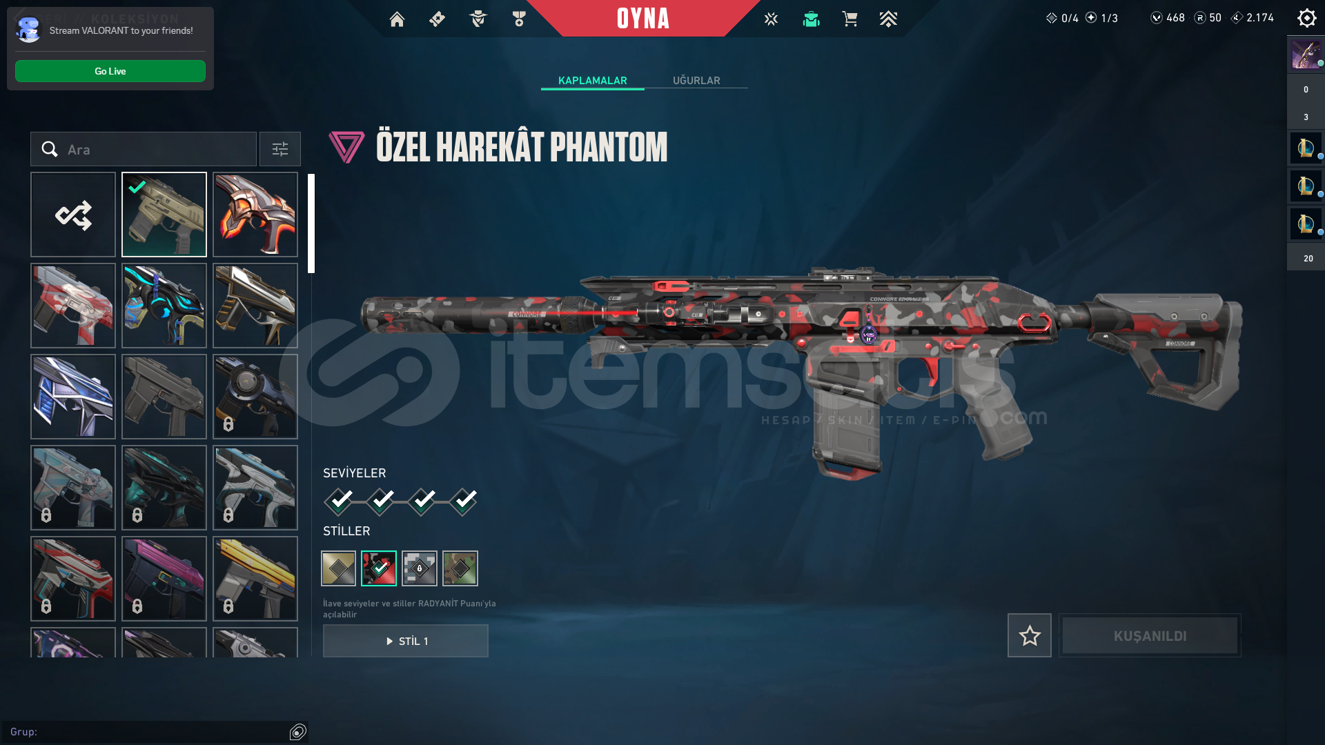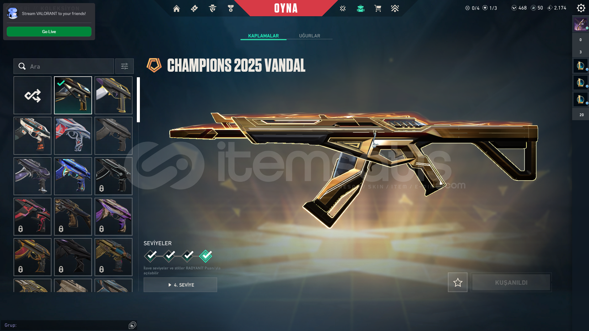 Uzay avcısı bıçakChampions 25 vandalAsil vandalGaia vandalyağmacı vandalÖzel harekat phantomIşık muhafızı phantomKuronami phantomEjder opAsil spectreYağmacı sheriffMail değişecekSorularınız varsa mesaj atarak sorabilirsiniz
