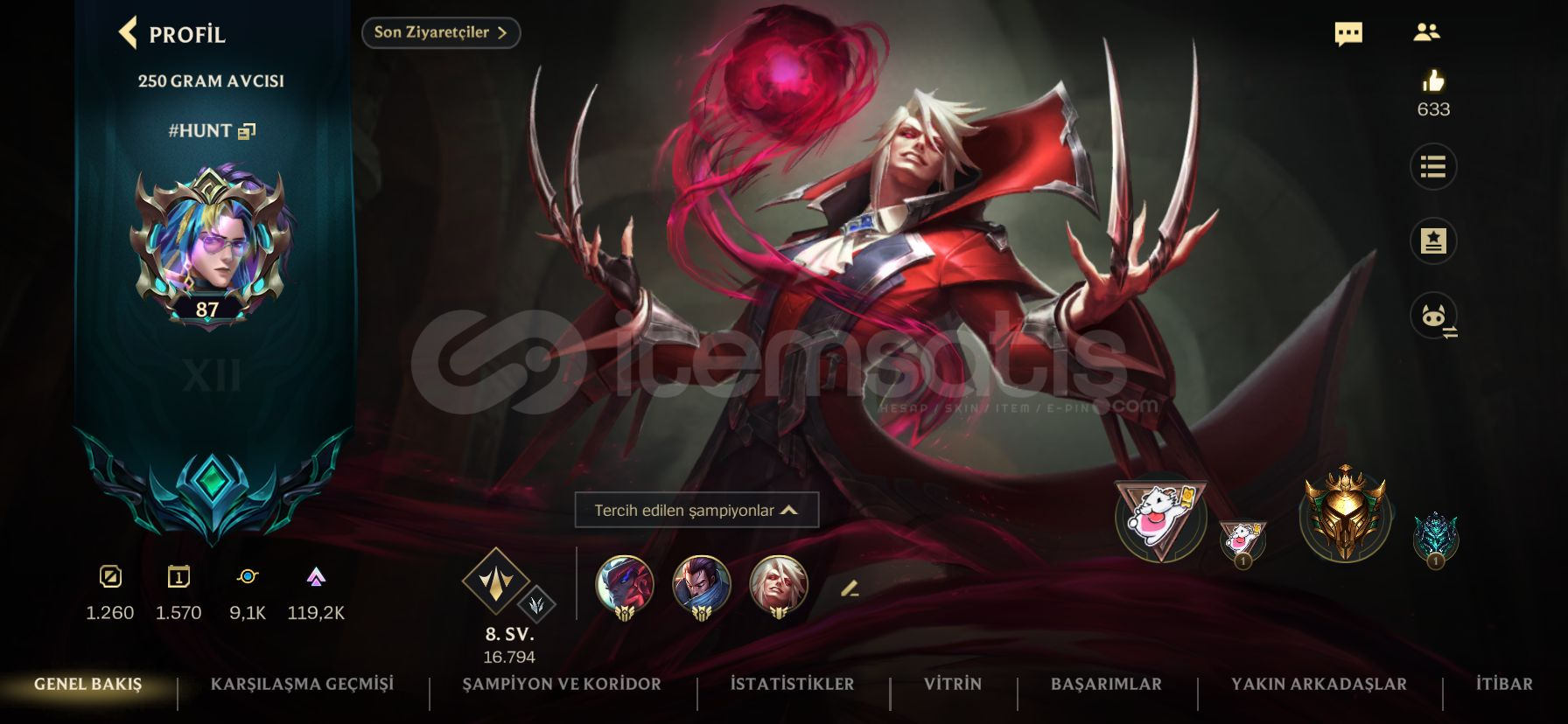 87 Leveldir Peak Rank Zümrüt 1 dir Şuanki Rankı Altın 3 dür, 43 Kostüm Vardır 12 Efsanevi 18 Destansı Geri Kalanı Sıradandır Detaylı İncelemek İstiyenlere Kullanıcı Adını Paylaşırım Vitrinden İnceleyebilirler.