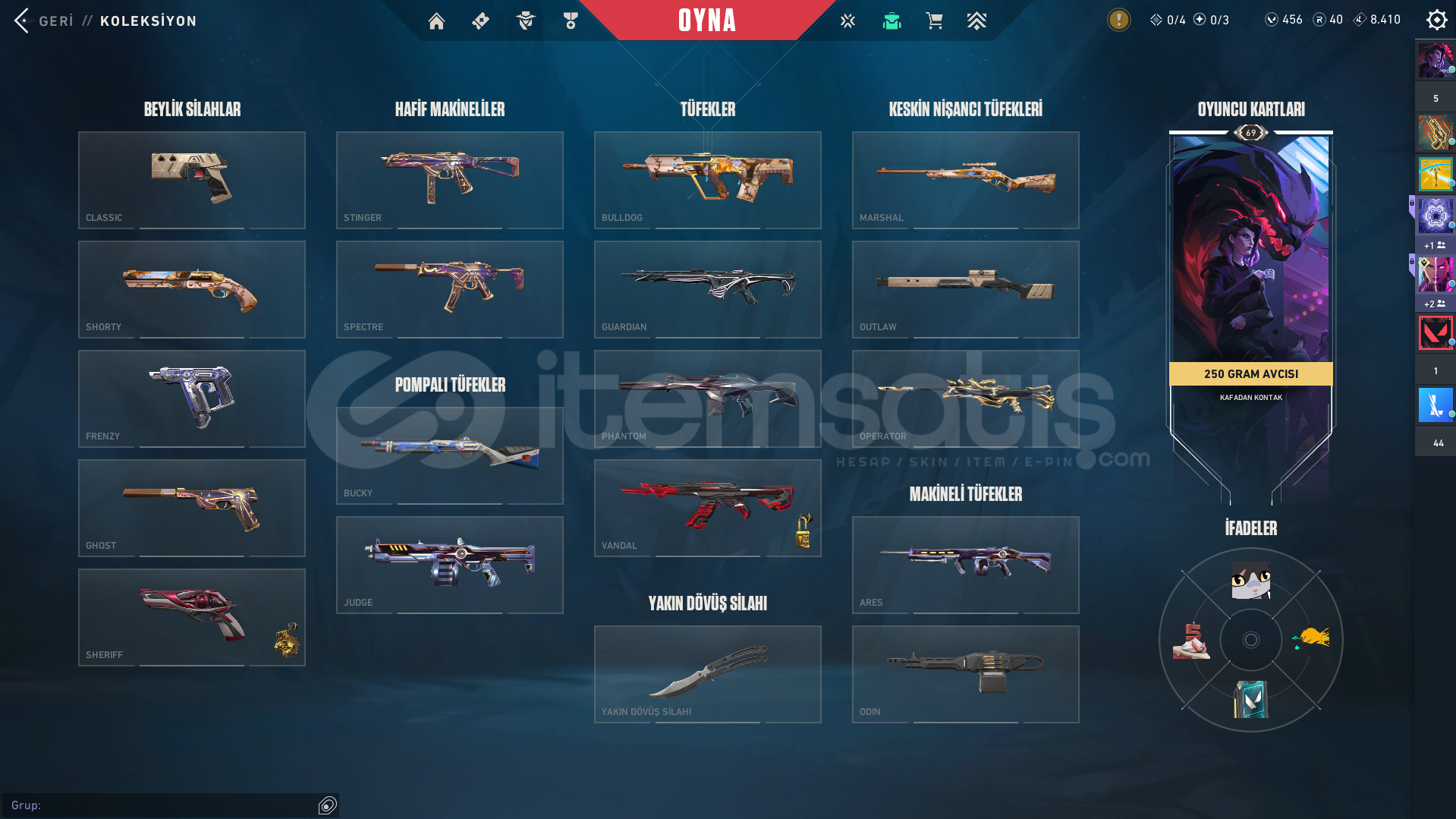 Exo Vandal , Gaja Vandal , Ejder Ateşi Vandal , Ejderin Buyruğu Vandal , Anomali Phantom , Zamanın Ötesi Şerif , Ejderin Buyruğu Operator , Fatih Guardian , KaraBorsa Kelebek Bıçak 450 Vp 60 Radyanit 651 Kingdoms Kredisi Açılmamış Sadece 3 Ajan Vardır , Gümüş 3 60 kpdir.