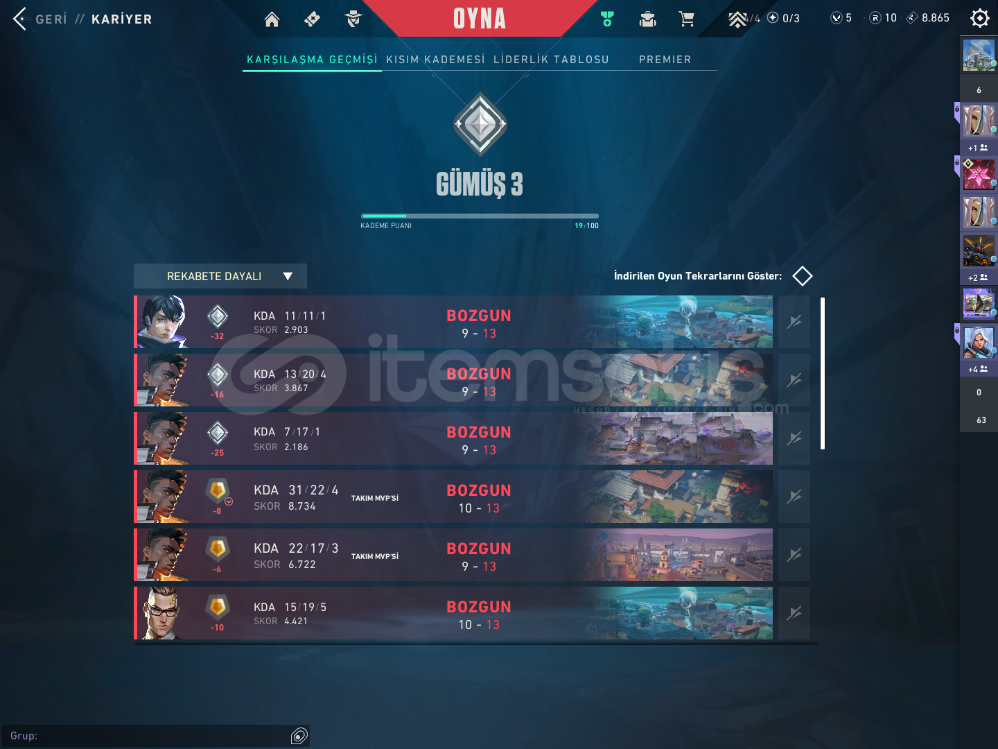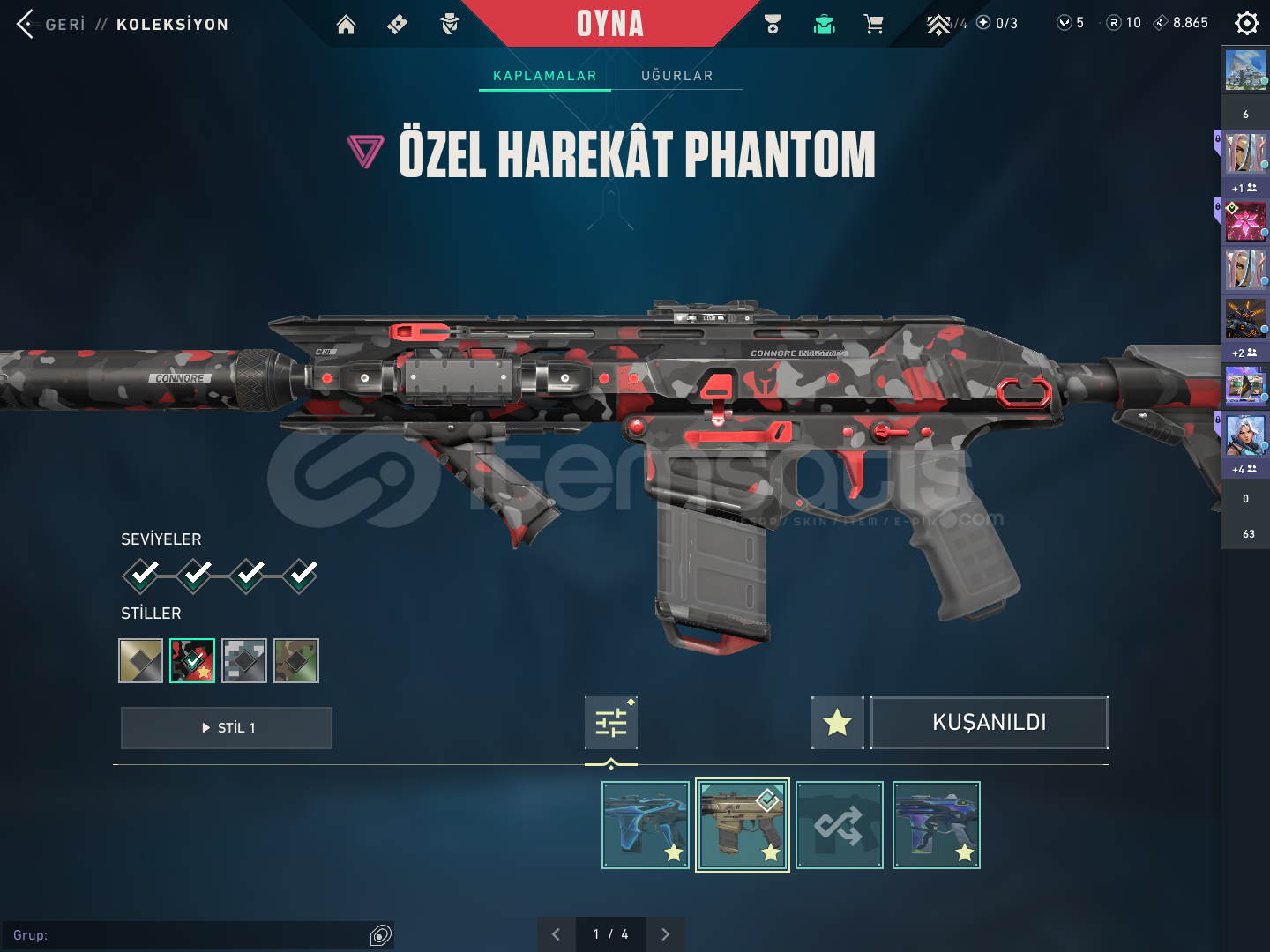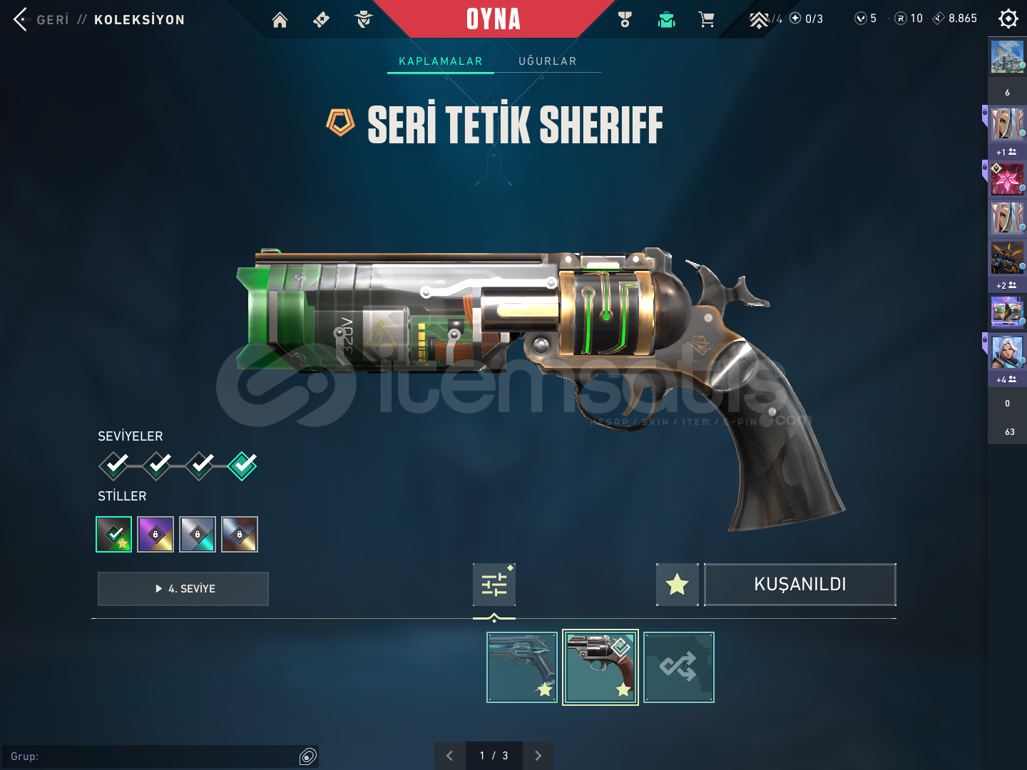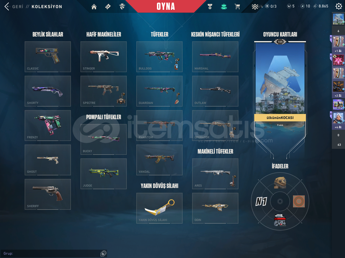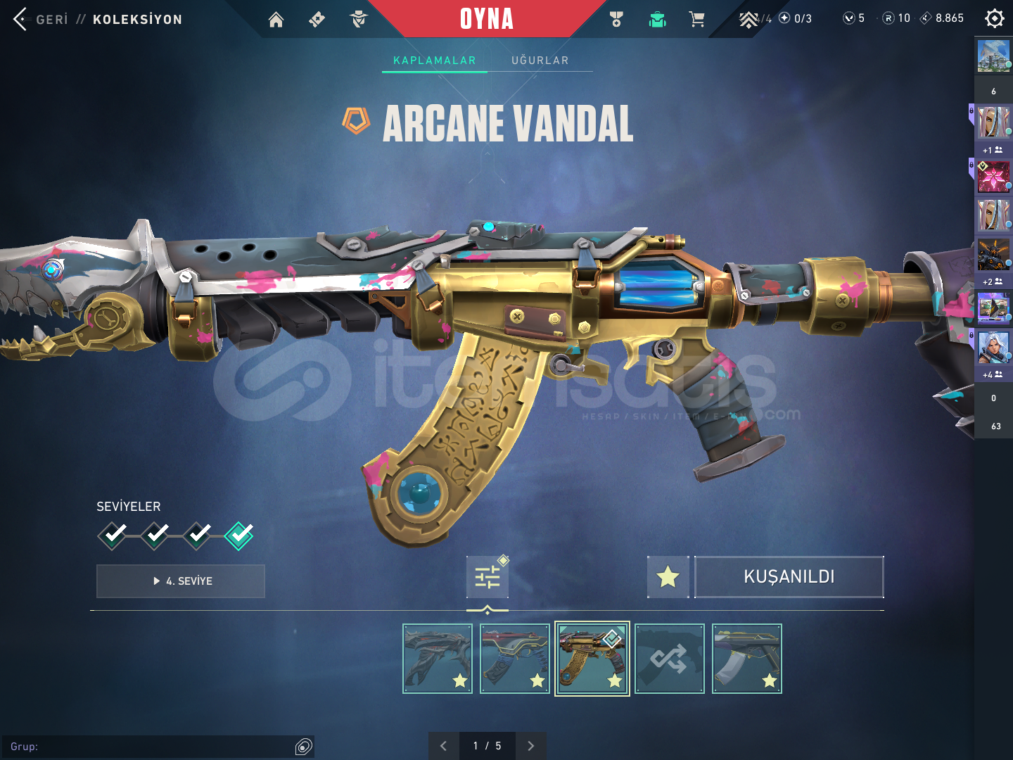 Hesaptaki skinler: oni vandal asil vandal arcane vandal primordium vandal özel harekat kalebek kurnomi ve seri tetik sheriff neptün clasiic anomali ghost seri tetik marshall ion ares fatih odin