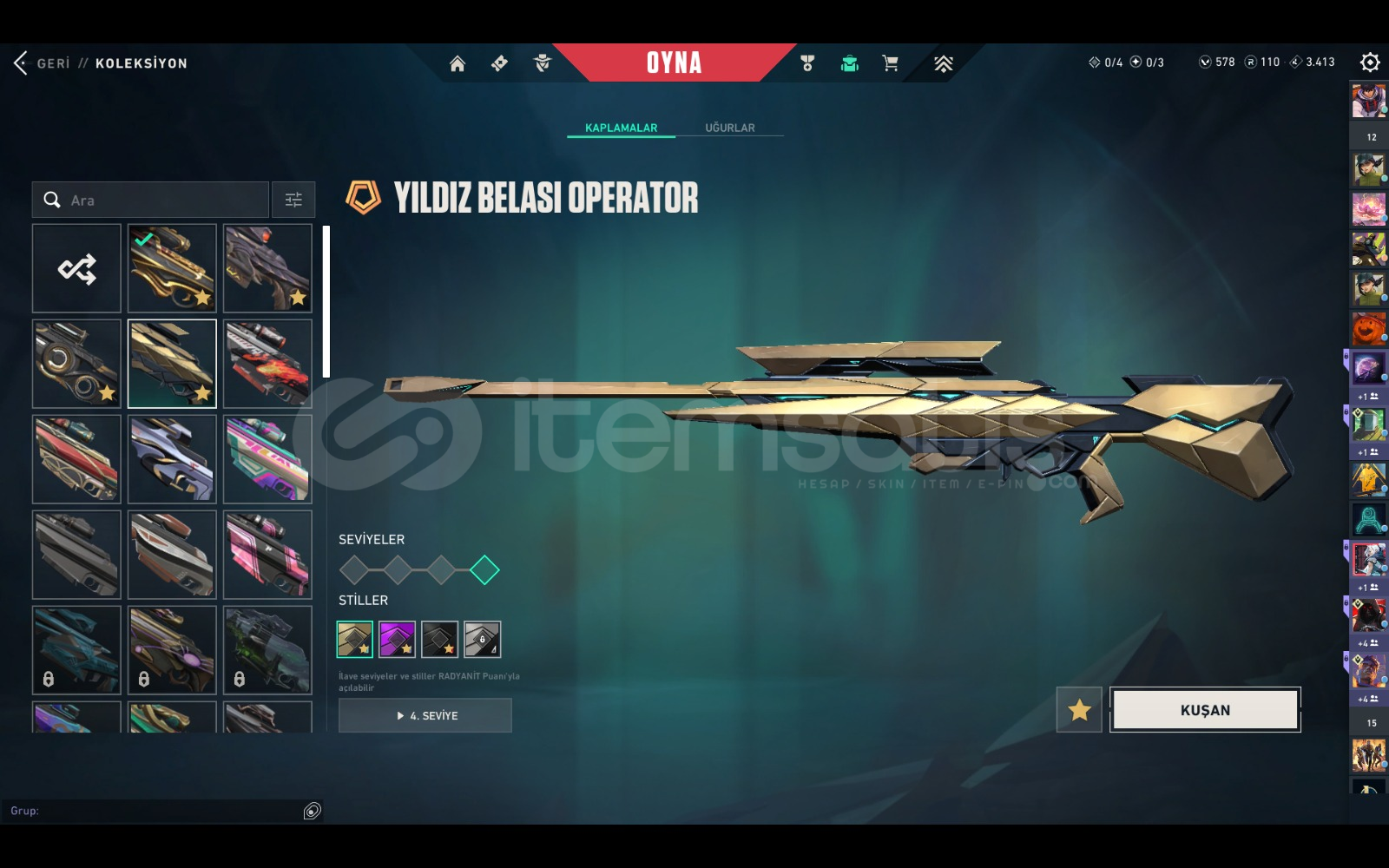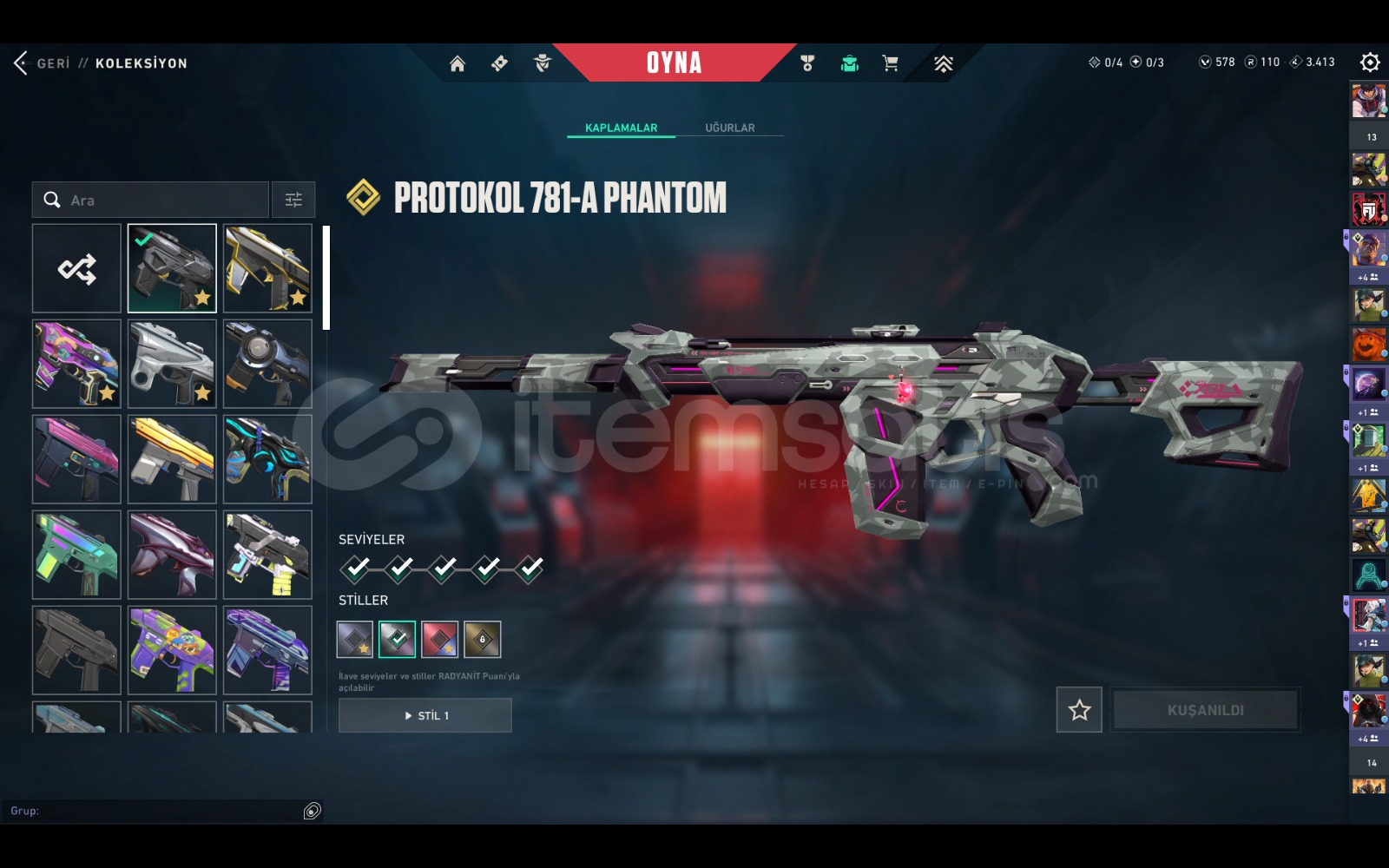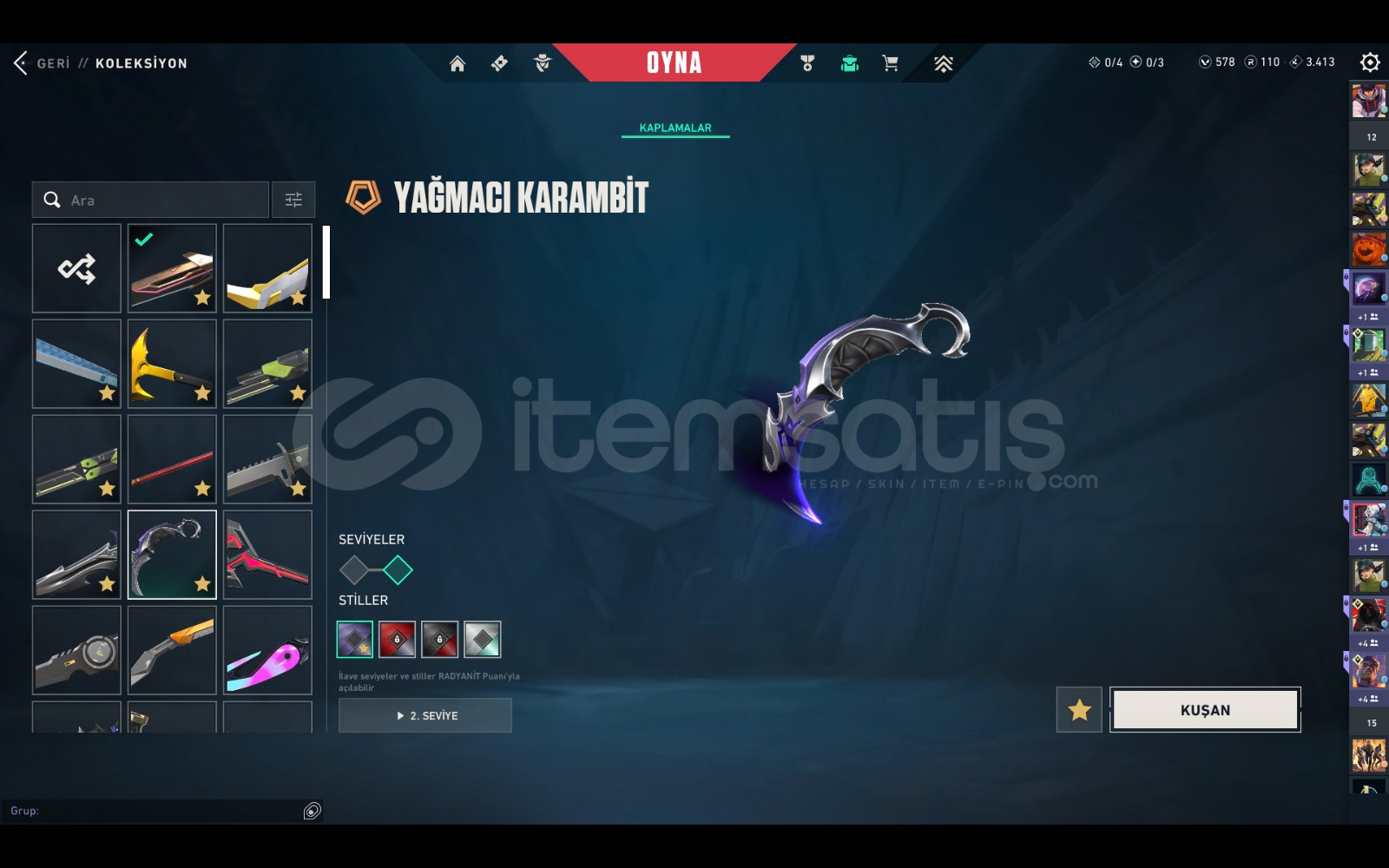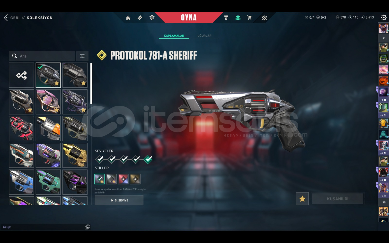 çoğu karakterin kontratı tamamen bitik dia görmüş plat 3 rank 42 tane özel desen 10 tane özel bıçak outlaw hariç tüm silahlarda özel desen ucuza hesap