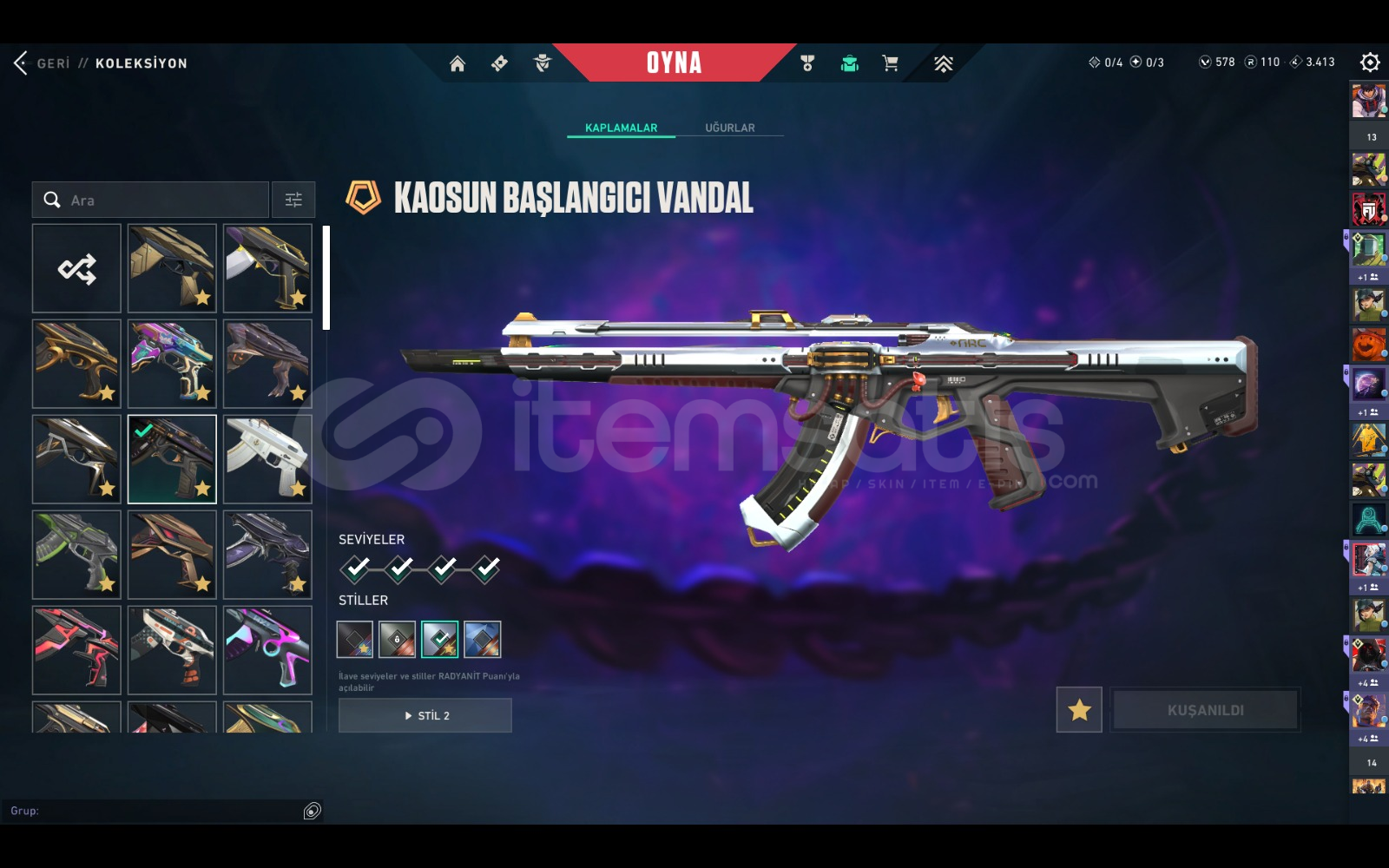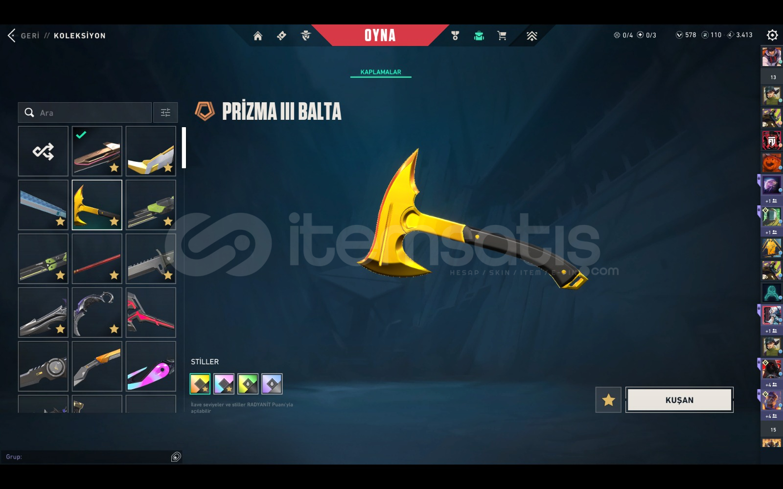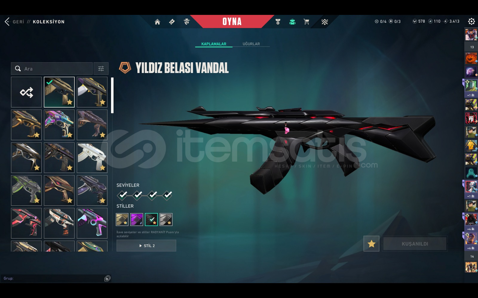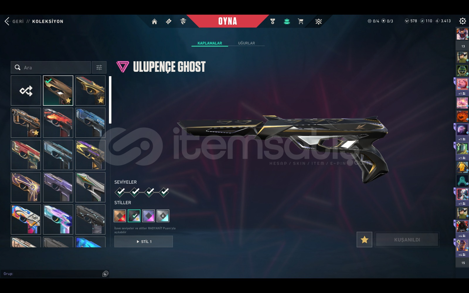 çoğu karakterin kontratı tamamen bitik dia görmüş plat 3 rank 42 tane özel desen 10 tane özel bıçak outlaw hariç tüm silahlarda özel desen ucuza hesap