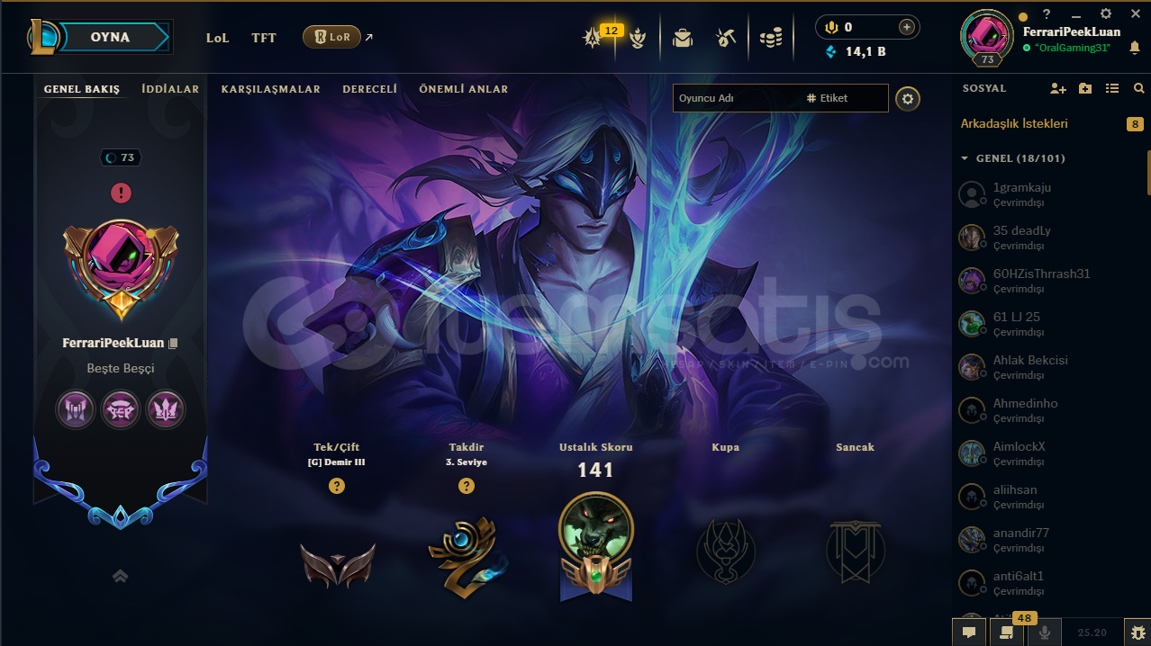 HESAPTAKİ SKİNLER BUNLARIR HESABIN AYNI ZAMANDA LOL HESABI DA BULUNUR ESNEK GOLD VE SKİNLİ HESABA 45K VP YATIRIMLIŞTIR YARISINDAN DAHA UCUZA SATILIR!!