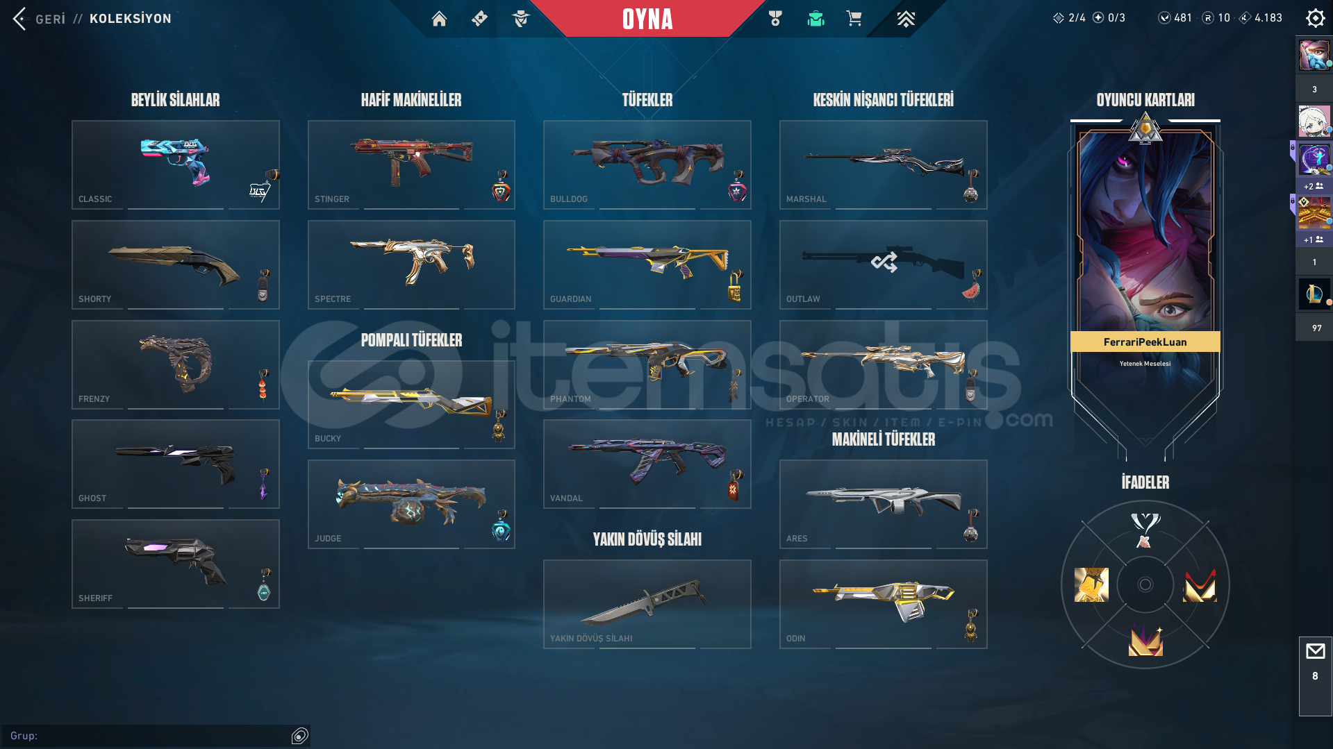100% GÜVENCEYLE SATILIR SORUN YAŞAMANIZ SÖZ KONUSU DEĞİL ANINDA TESLİM EDİLİR!!!Hesabın tek kullanıcısıyım oyunu bıraktığım için satıyorum hesapta limited itemler var bütün silahlarda animasyonlu skin bulunmakta Hesapta 5 sezon battle pass acıldı ve fullendi 2023 2024 2025 champions seti ve vct karambit bulunur HESAP 154LVLSKİNLER:BÜTÜN SKİNLER HEPS...