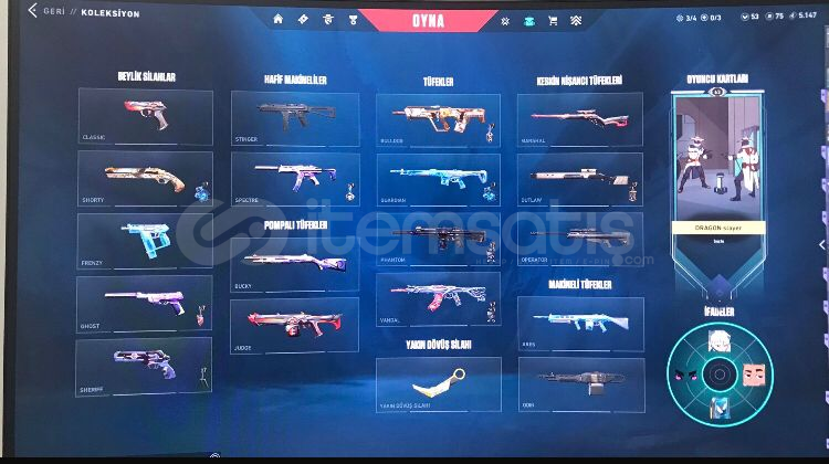3 VANDAL 3 PHANTOM SKİN VAR DİĞER SİLAHLARDA BP SKİNLERİ VAR 63 SEVİYE HESAPASİL KARAMBİT,GAİA VANDAL,AEMONDER,IŞIK MUHAFIZI. PHANTOMDA, KAOS,PONCİK ECEL VE ASİL VARTEMİZİNDEN ÖMÜR BOYU KULLAN(PAZARLIK YAPILIR)