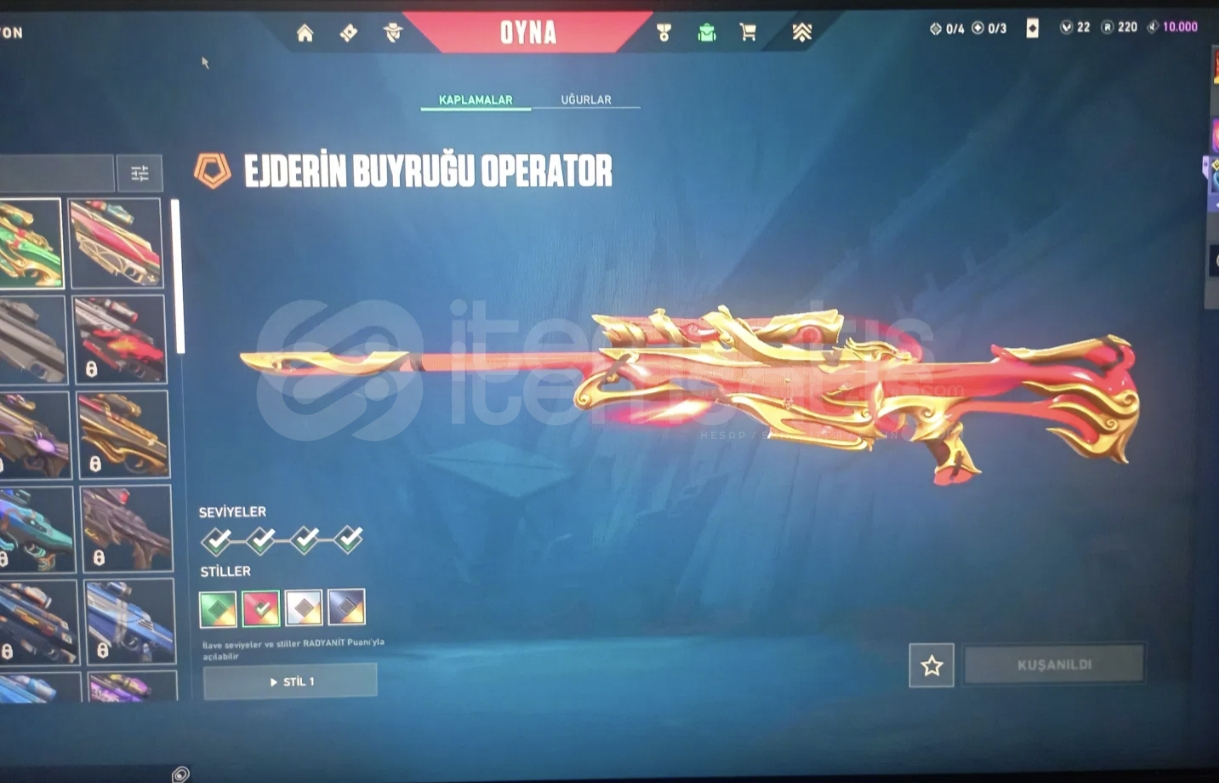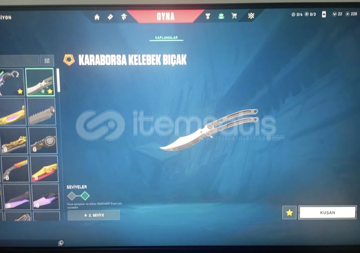 Yağmacı ghostYağmacı karambitYağmacı VandalKuronomi vandalKuronomi SheriffOne tap vandalEjderin buyruğu vandalEjderin buyruğu operatörRadyant sistem ghostDolmir'in intikamı vandalKaraborsa kelebekKalp durduran vandalKırık kalp operatörFındıkkıran operatörVe bunun gibi birçok battle pass skinleri