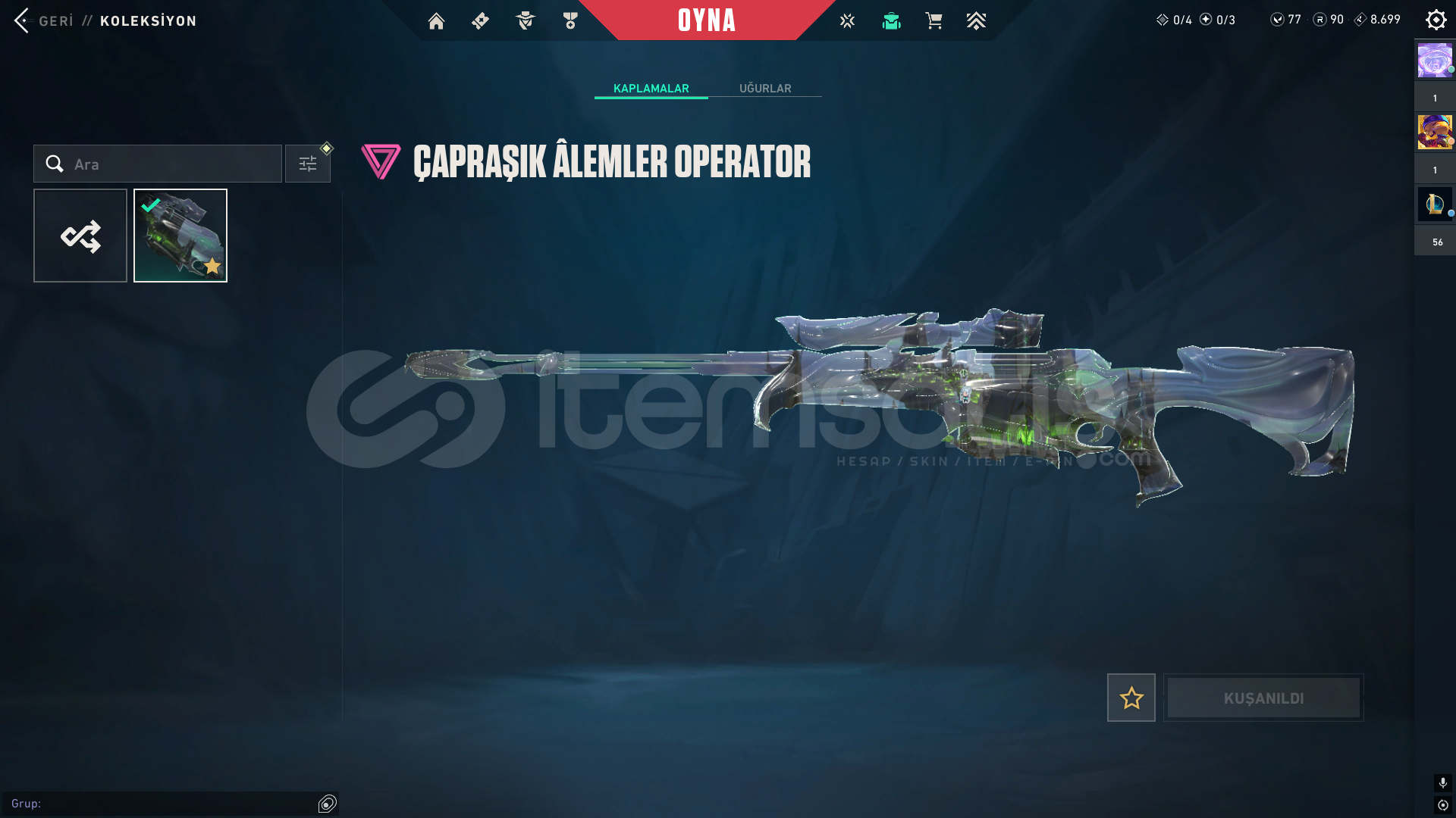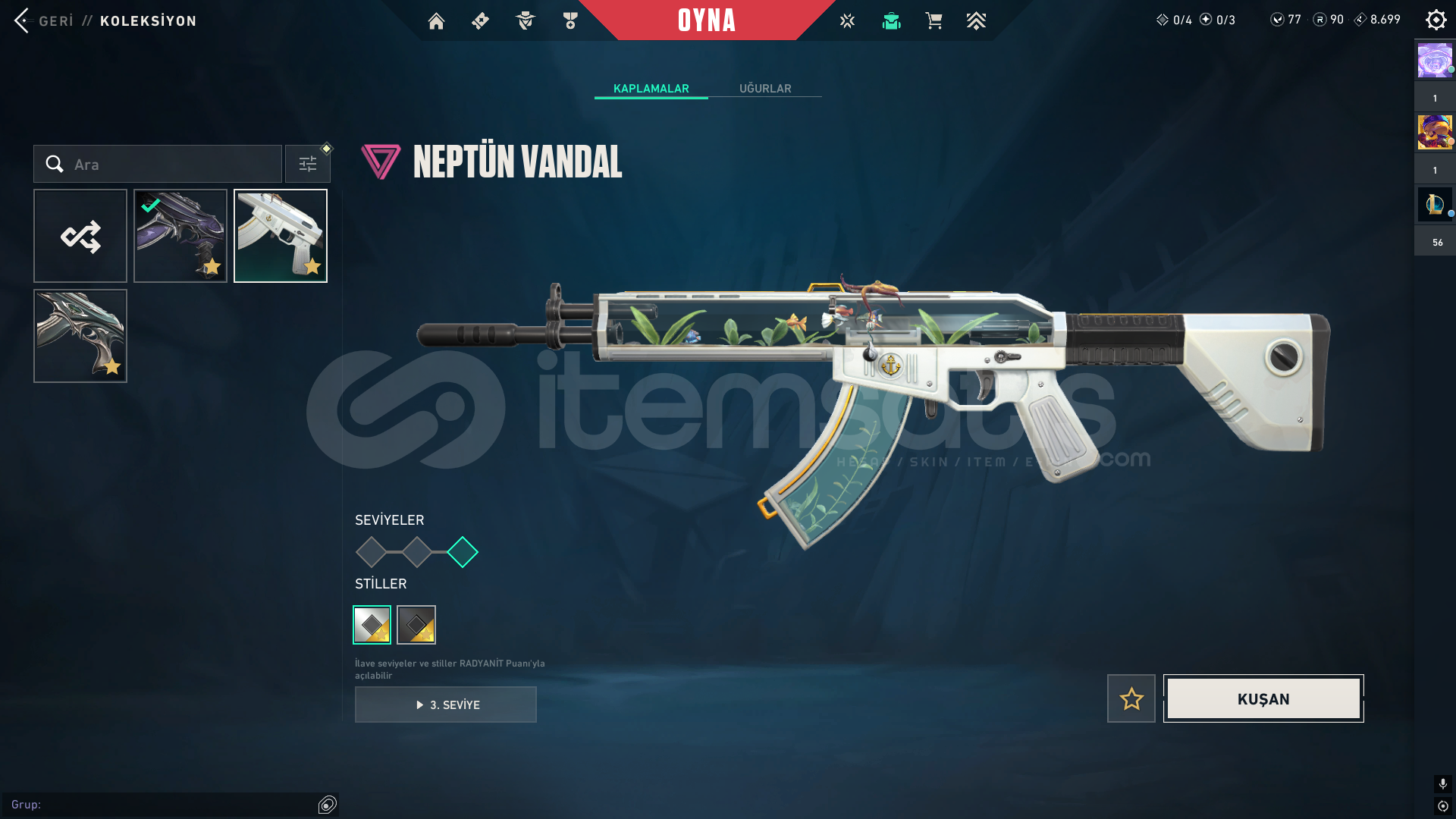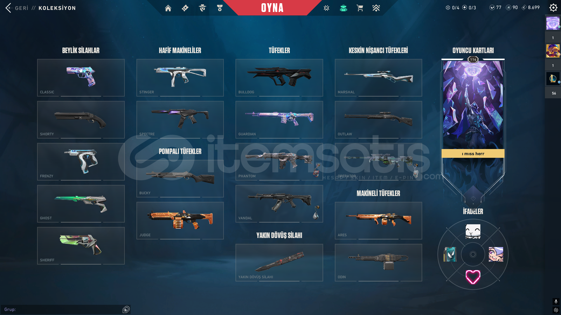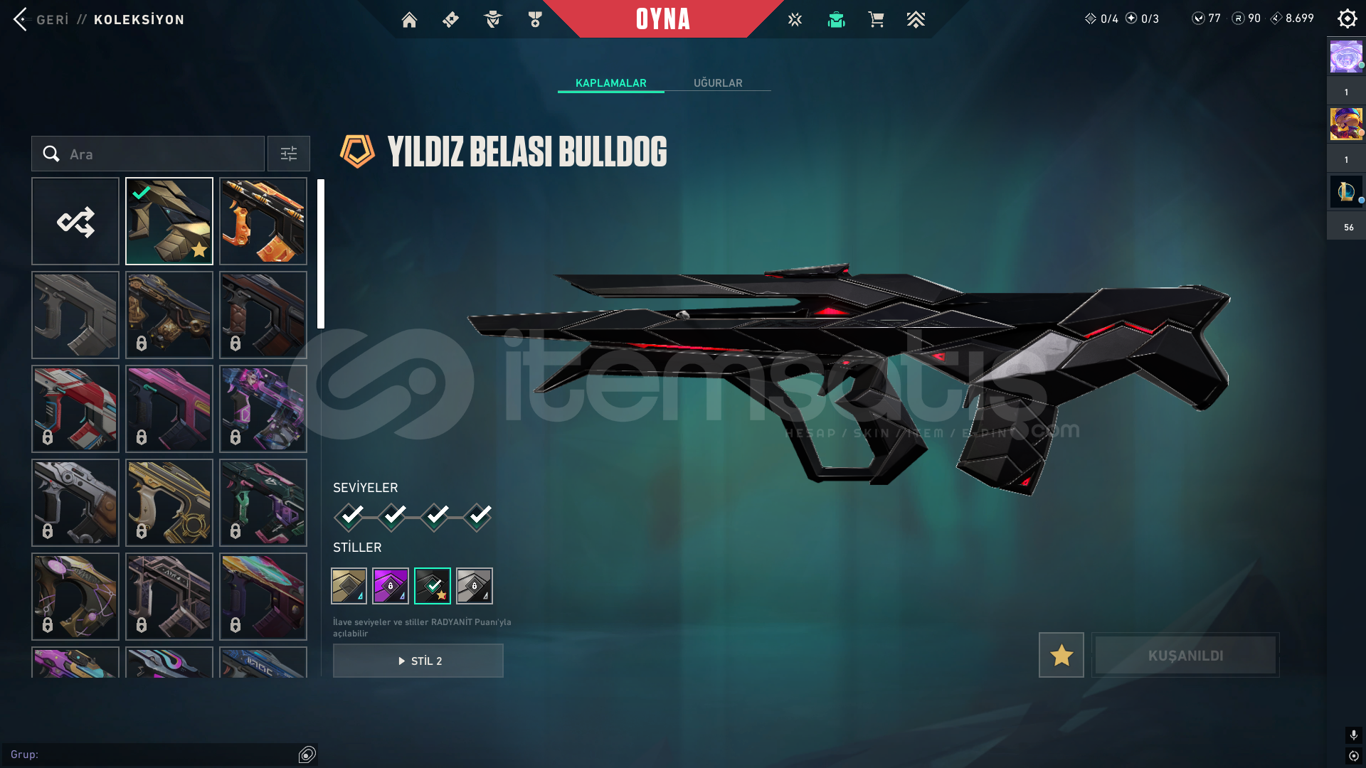 Hesap Dia1İçindekilerSheriff(Işık Muhafızları)Spectre(Anomali)Bulldog(Yıldız Belası)Phantom(Gaia-Felaketin Kalbi)Vandal(Yağmacı-Neptün-Yitik)Bıçak(Catrina-Özel Harekat Kelebek)Operator(Çapraşık Alemler)