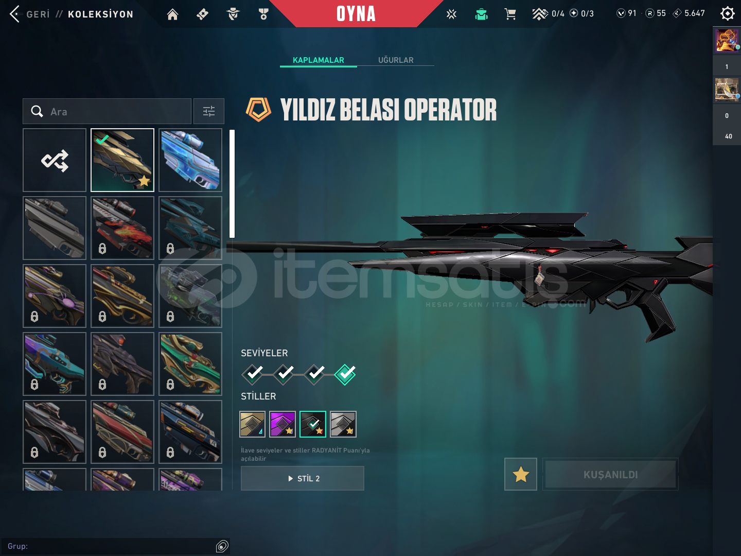 HESAP 46 LEVEL VE ALTIN BİR HESAPTIR HESABIN İÇİNDEKİLER:AEMONDIR SHERİFFYILDIZ BELASI OPERATÖRGAİA VANDAL1 ADET BATTLE PASS