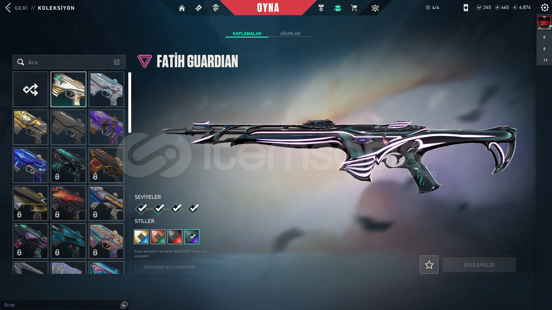 4 battlepassvct clasicsihirpunk ghostiyon şerifyitik spectrefatih guardionspectrum ve özel harekat phantomyıldız belası, asil, iyon ,ışık muhafızı, delipop vandalrgx kelebekyağmacı karambituzaylı avcısı bıçejder opuranyum yerçekimsel op