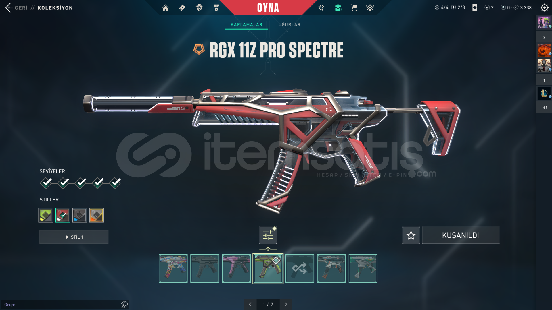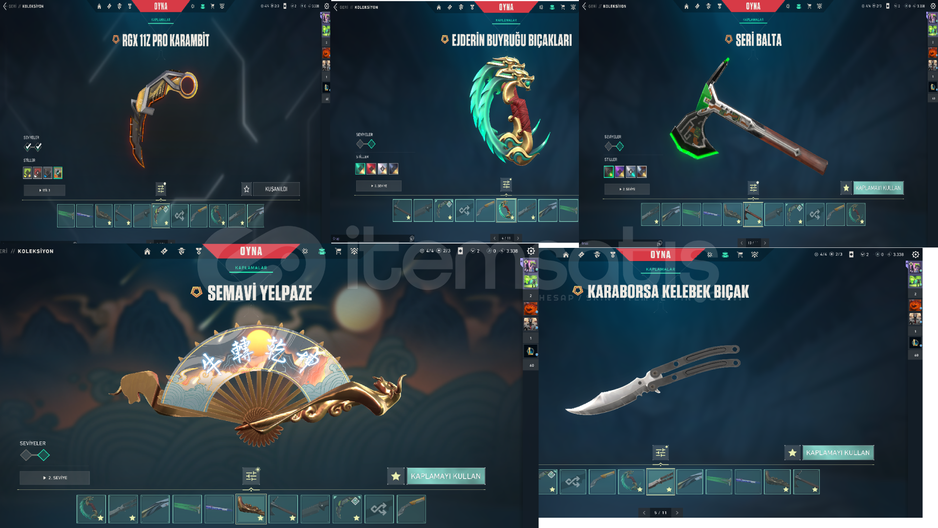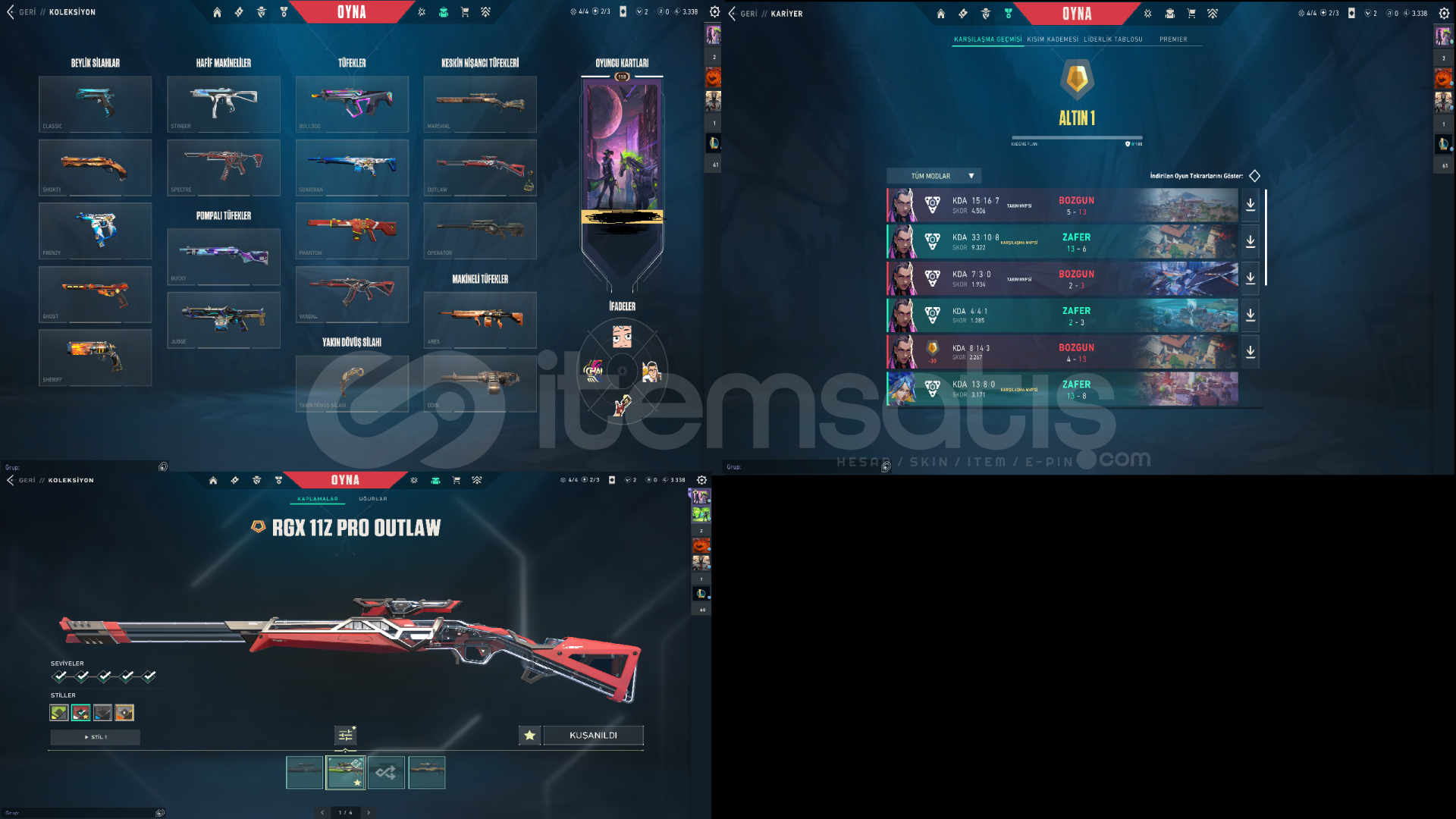 tüm fotoğraflar mevcuttur anlık rankı gold 1 ranked atmıyorum skinler artık mantıksız geldiği için satıyorum bireysel satıcıyım pazarlık payı vardır gayet dolu bir hesap main hesabım zaten mailini değiştirebilir alan arkadaş hesaptaki tüm skinlerin fotosunu koydum hepsini görebilirsiniz aşağıya da yazıyorumVANDAL:DELİPOPRGXYAĞMACIIŞIK MUHAFIZINEP...