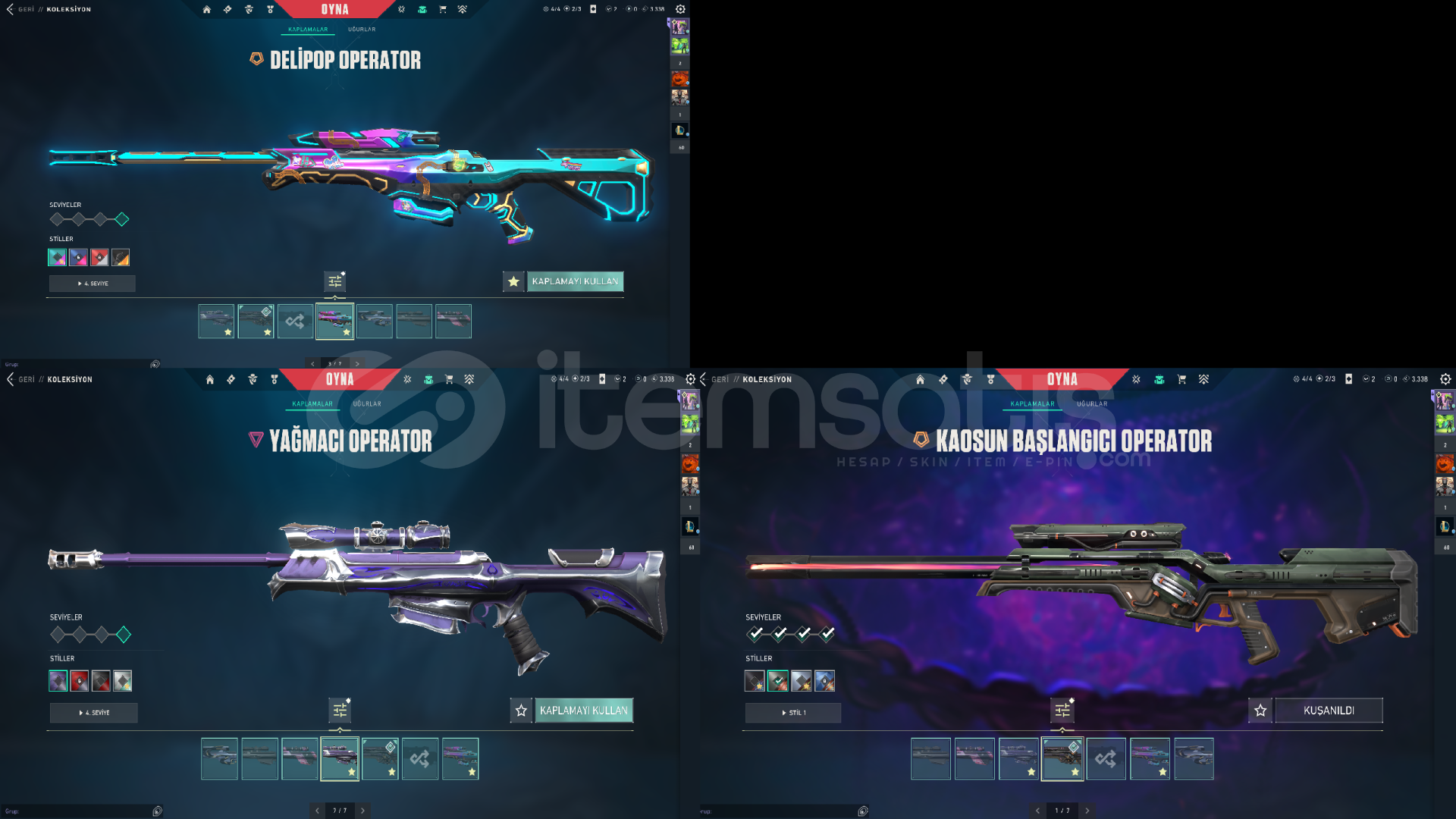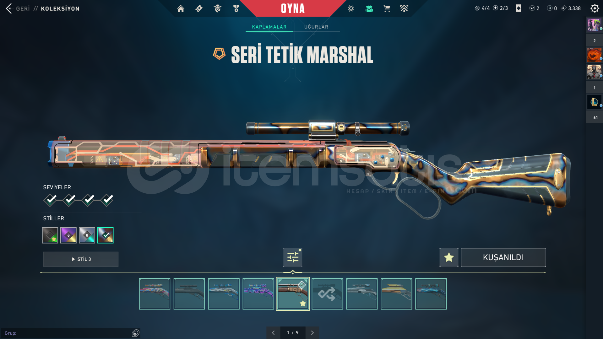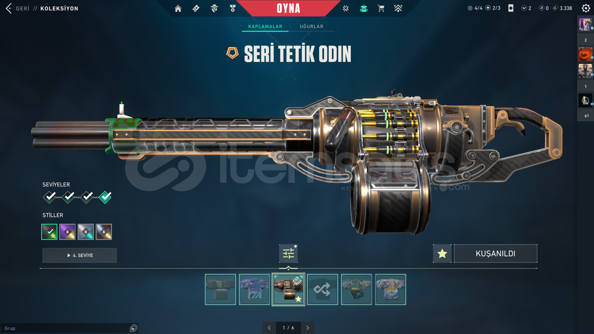 tüm fotoğraflar mevcuttur anlık rankı gold 1 ranked atmıyorum skinler artık mantıksız geldiği için satıyorum bireysel satıcıyım pazarlık payı vardır gayet dolu bir hesap main hesabım zaten mailini değiştirebilir alan arkadaş hesaptaki tüm skinlerin fotosunu koydum hepsini görebilirsiniz aşağıya da yazıyorumVANDAL:DELİPOPRGXYAĞMACIIŞIK MUHAFIZINEP...