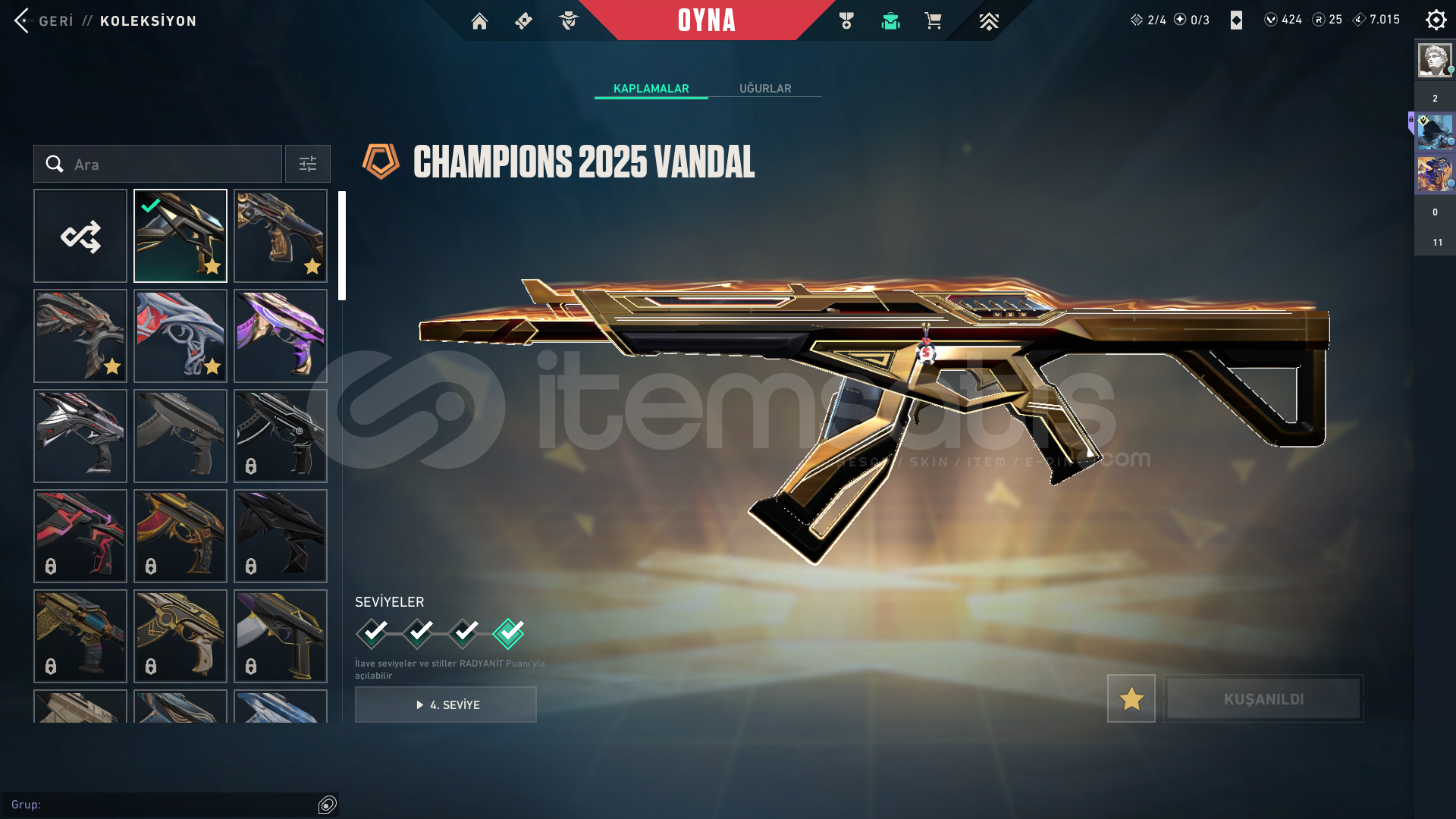 CHAMPİONS 2025 VANDALAEMONDER VANDALFELAKETİN KALBİ VANDALGAİANIN INTIKAMI VANDALALBENI VANDALECELİN ISIRIGI VANDALRGX KARAMBİTANOMALİ KELEBEKECELİN ISIRIGI BICAKGALAKSİ MUHAFIZI BICAKSOLAREX YADİGARI BICAKZİFİRİ PHANTOMHELEZON PHANTOMGALAKSI MUHAFIZI PHANTOMSOLAREX PHANTOMKIVRAK BELA PHANTOMASİL GUARDİANEJDER ATESI OPERATORNEPTUN ODINYILDIZ BELASI SHERIFFYAGMACI GHOSTASİL SPECTREPLATİN 1 139 SV İLK MAİ...
