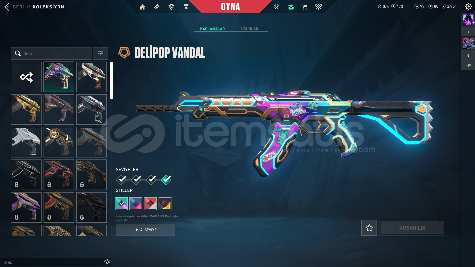 ANINDA TESLİMAT: Ödeme sonrası saniyeler içinde Hesap bilgileri sizde.FİYAT/PERFORMANS: Harcanan emeğin ve paranın yanında şu anki fiyatı bedava.HESAP BİLGİLERİRGX classicGaia ghostZaman ötesi sheriffYağmacı spectreDelipop vandalAnomali phantomIşık muhafızları opİyon vandalEjder vandalKöken vandalSemavi yelpazeBattlepass bıçaklarıHer silahta en az 1 skinFull diziliBatt...