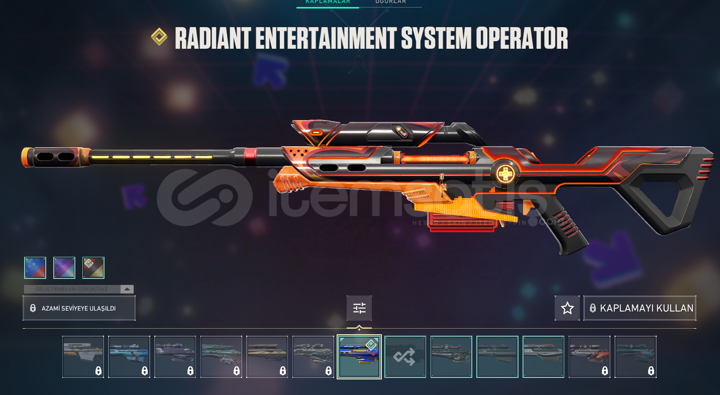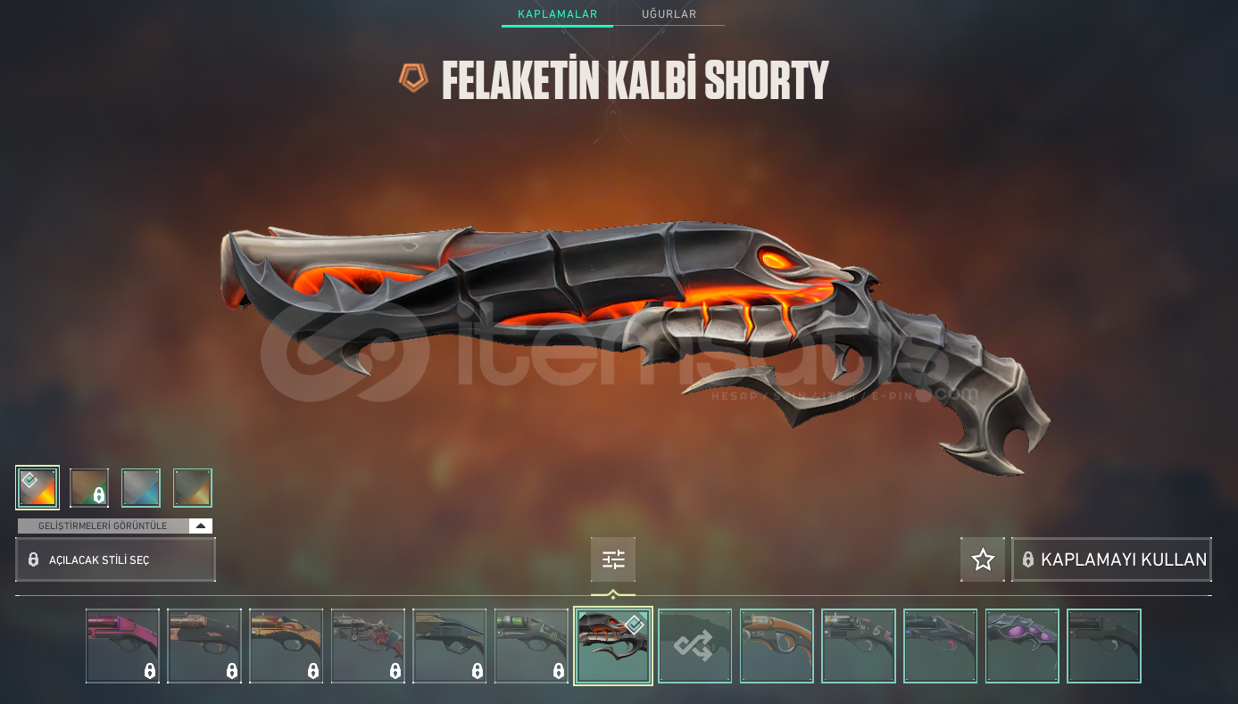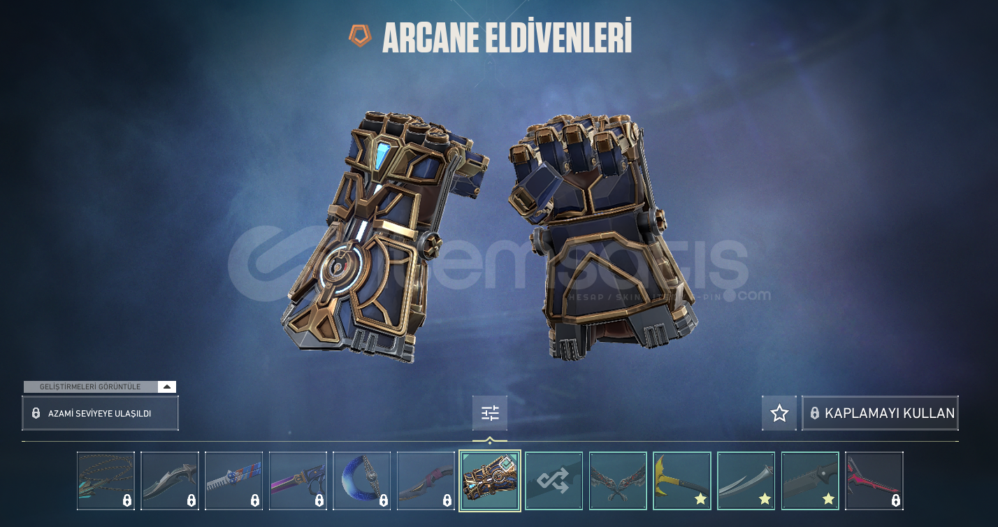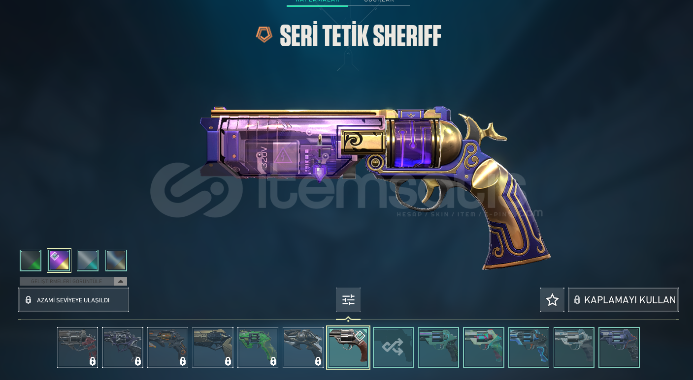 Bıçak = Arcane Eldiveni,Felaketin Bıçağı,Prizma balta,Şakıyan ÇelikVandal= Arcane Vandal, Asil Vandal, Yağmacı Vandal, Felaketin kalbi vandal, Sualtı Vandal,Süvari VandalPhantom= İYON Phantom, Asil Phantom, Felaketin Kalbi Phantom, Işık Dalgası PhantomOparatör= Radıyant Enterment Oparatör , Köken OperetörSherif = Seri tetik 4 tane normal sherif skinGhost = 5 tane normal sherifSpekt...