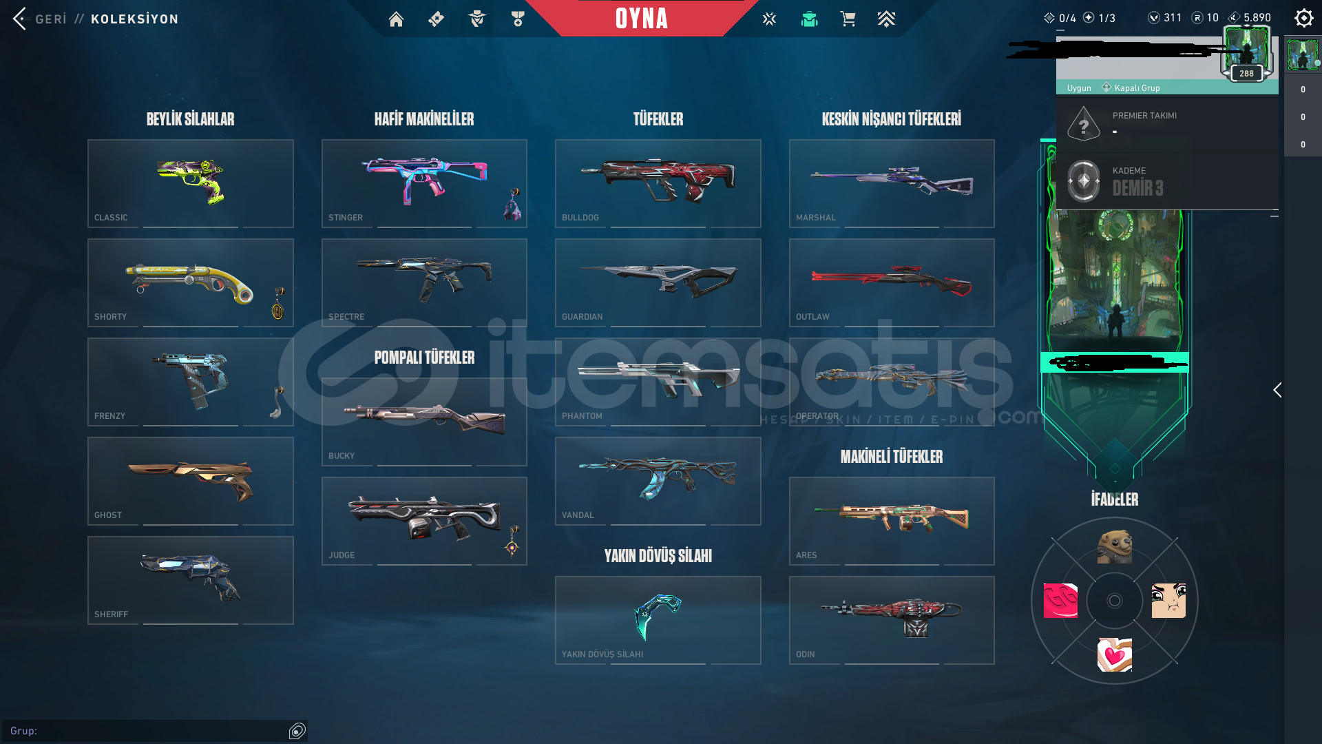 70000 VP HARCANMIŞPEAK RANK İRON 3Bıçak :Blade of Aemondir, Combat Crafts Axe, Titanmail Mace, VCT 2025 Karambit, Recon BalisongVandal :CYRAX Vandal, Dolmir's Revenge Vandal, Kuronami Vandal, Gaia's Vengeance Vandal, Primordium Vandal, Ion Vandal, Prelude to Chaos VandalPhantom :BlastX Phantom, Bolt Phantom, Combat Crafts PhantomClassic :VCT25 x M8 ClassicGhost :Recon Ghost, XERØFANG GhostSheriff :Singularity SheriffFrenzy :Combat Crafts FrenzyBulldog :Combat Crafts ...