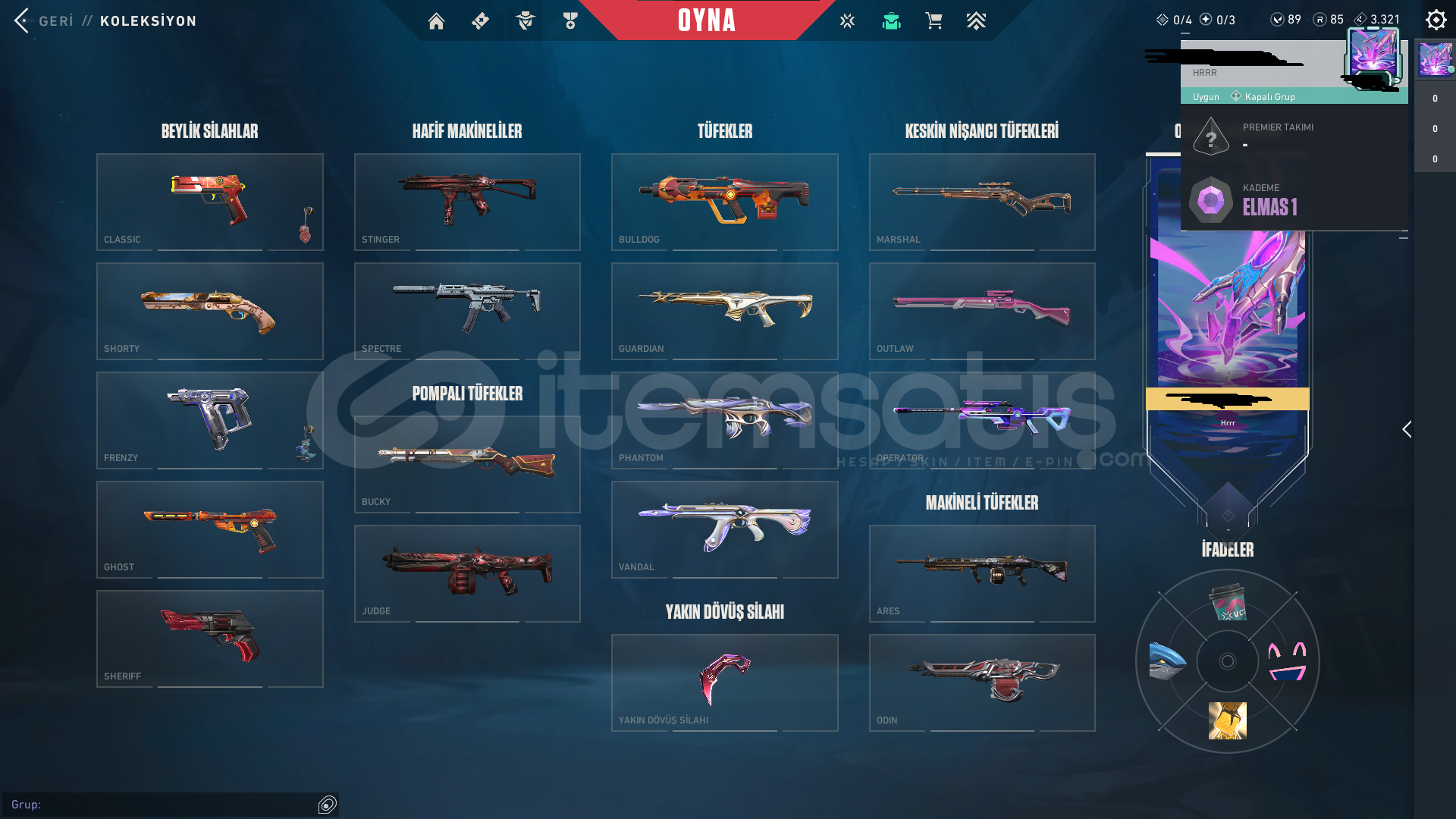 TOTAL 110.000 VP HARCANMIŞPeak Rank: DIAMOND 2Bıçak : Storm Maw Axe, Arcane Gauntlets, Power Fist, VCT 2025 Karambit, Black.Market Butterfly Knife, Reaver KnifeVandal : Reaver Vandal, Araxys Vandal, RGX 11z Pro Vandal, Ion Vandal, Origin Vandal, Forsaken Vandal, Sentinels of Light Vandal, Prime Vandal, Luxe Vandal, Arcane Vandal, Aemondir Vandal, Storm Maw Vandal, Evori Dreamwings VandalPhantom : BlastX Phantom, Mystbloom Phantom, Prime//2.0 Phantom, Radiant Entertainment System...