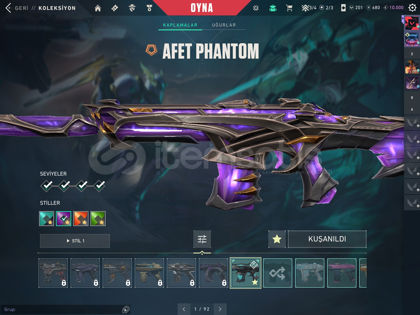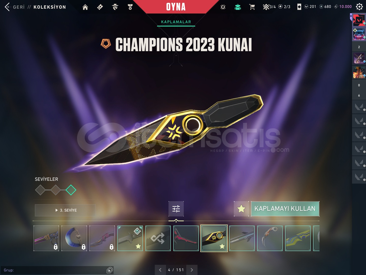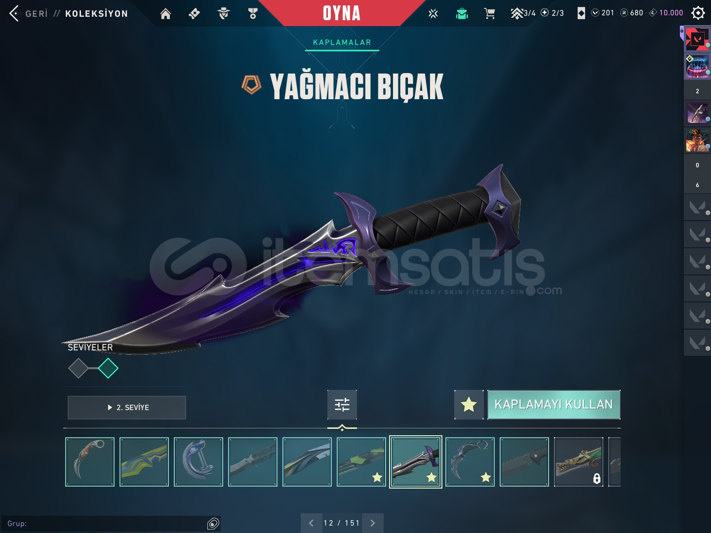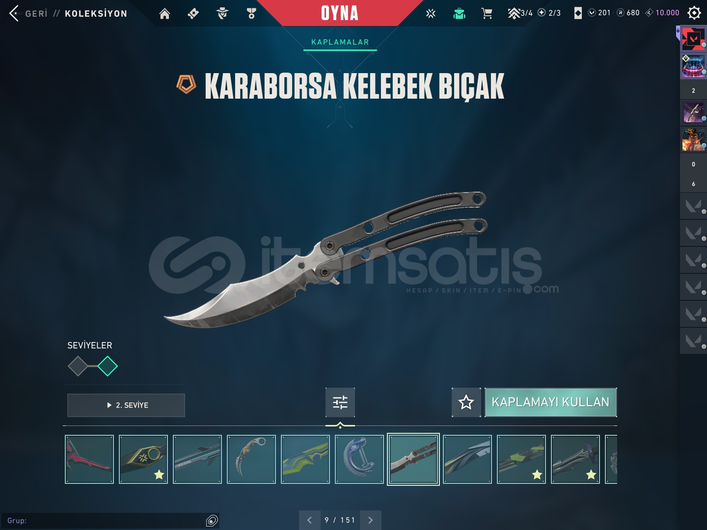 BATTLE PASS HARİÇ 5 BIÇAK BULUNMAKTADIR. İMMO VE YÜCE UĞURLUKLU MAİNLİK GÜZEL HESAP. Bıçaklar: -Uzaylı Avcısı -Yağmacı Karambit -Yağmacı Hançer -RGX Katana -Karaborsa Kelebek -Champions Kunai ve battle pass Vandallar: Yağmacı Vandal Rgx Vandal Yitik Vandal Oni Vandal ve battle pass Phantom: Afet Phantom ve batt...