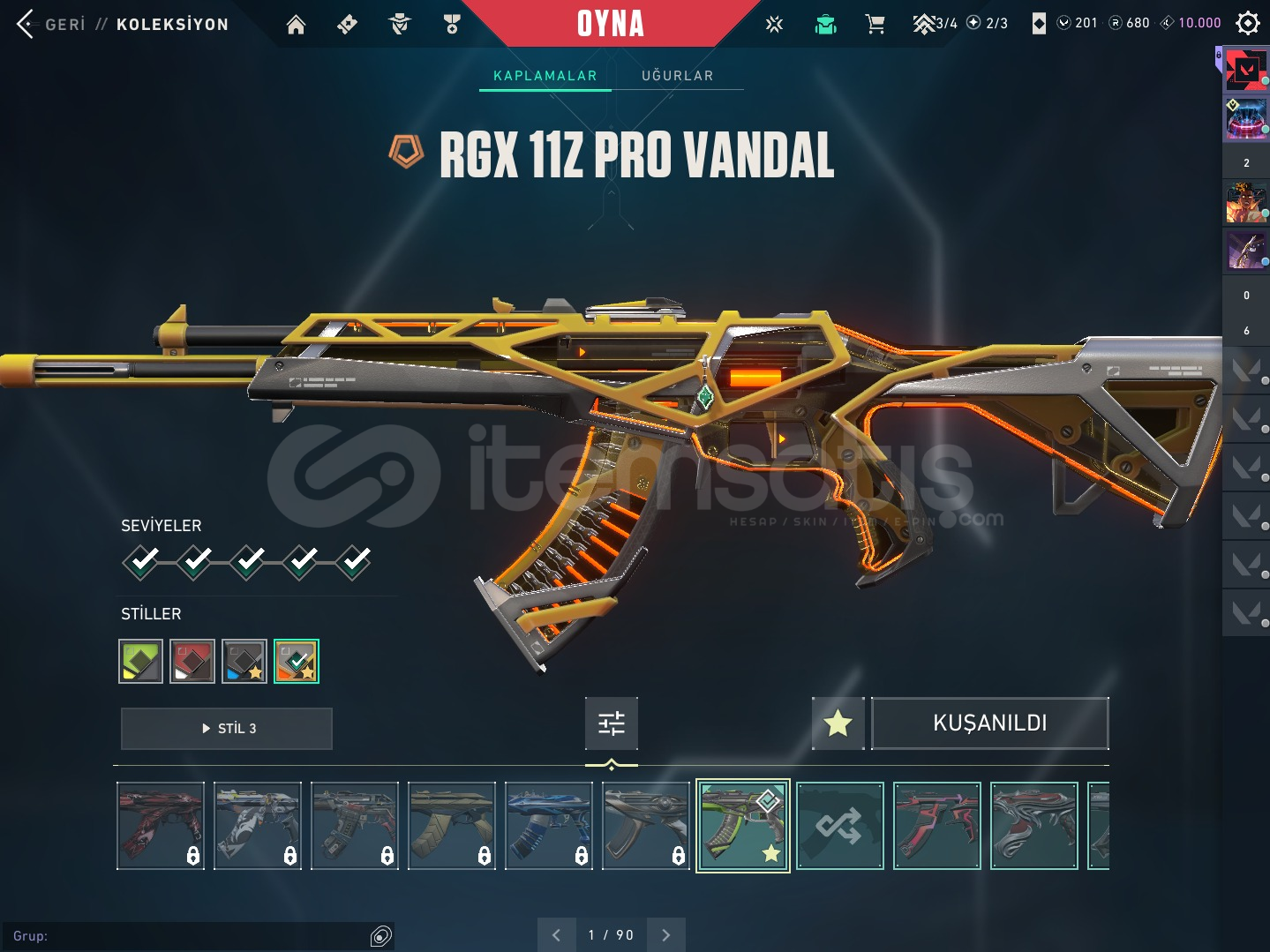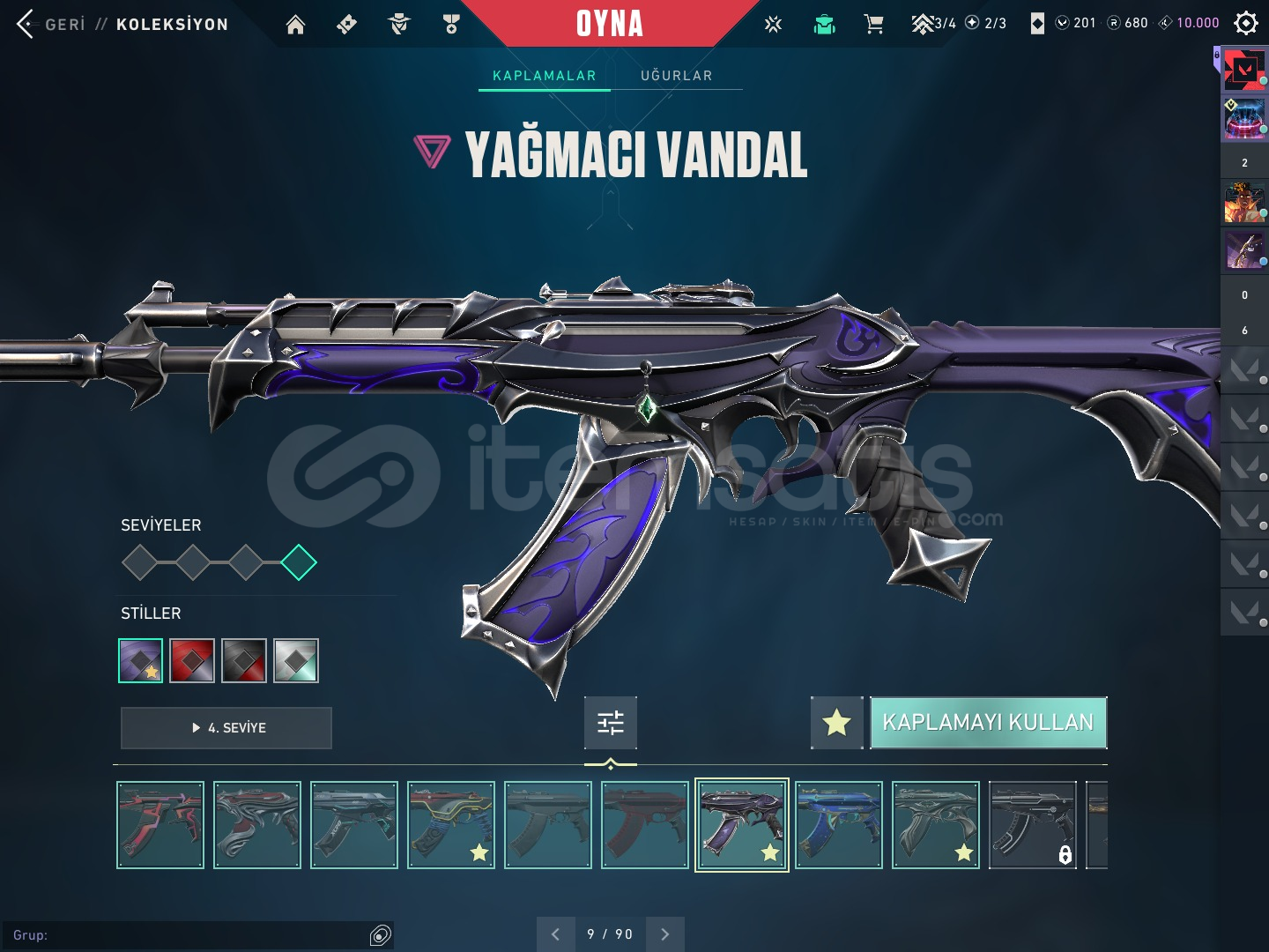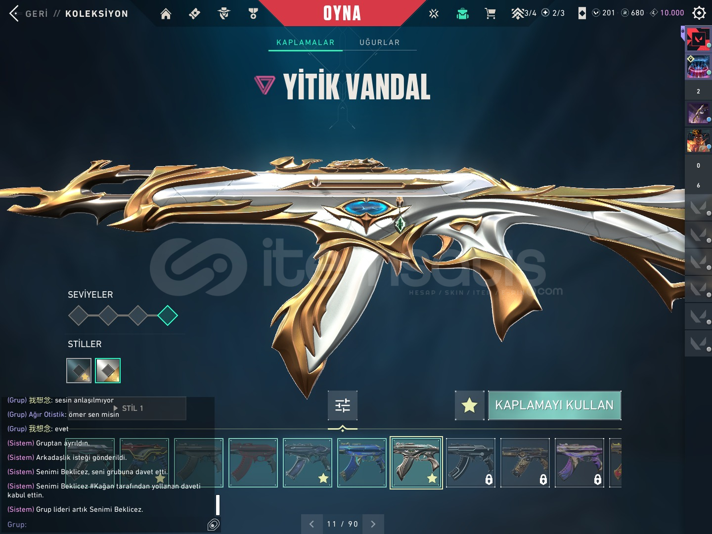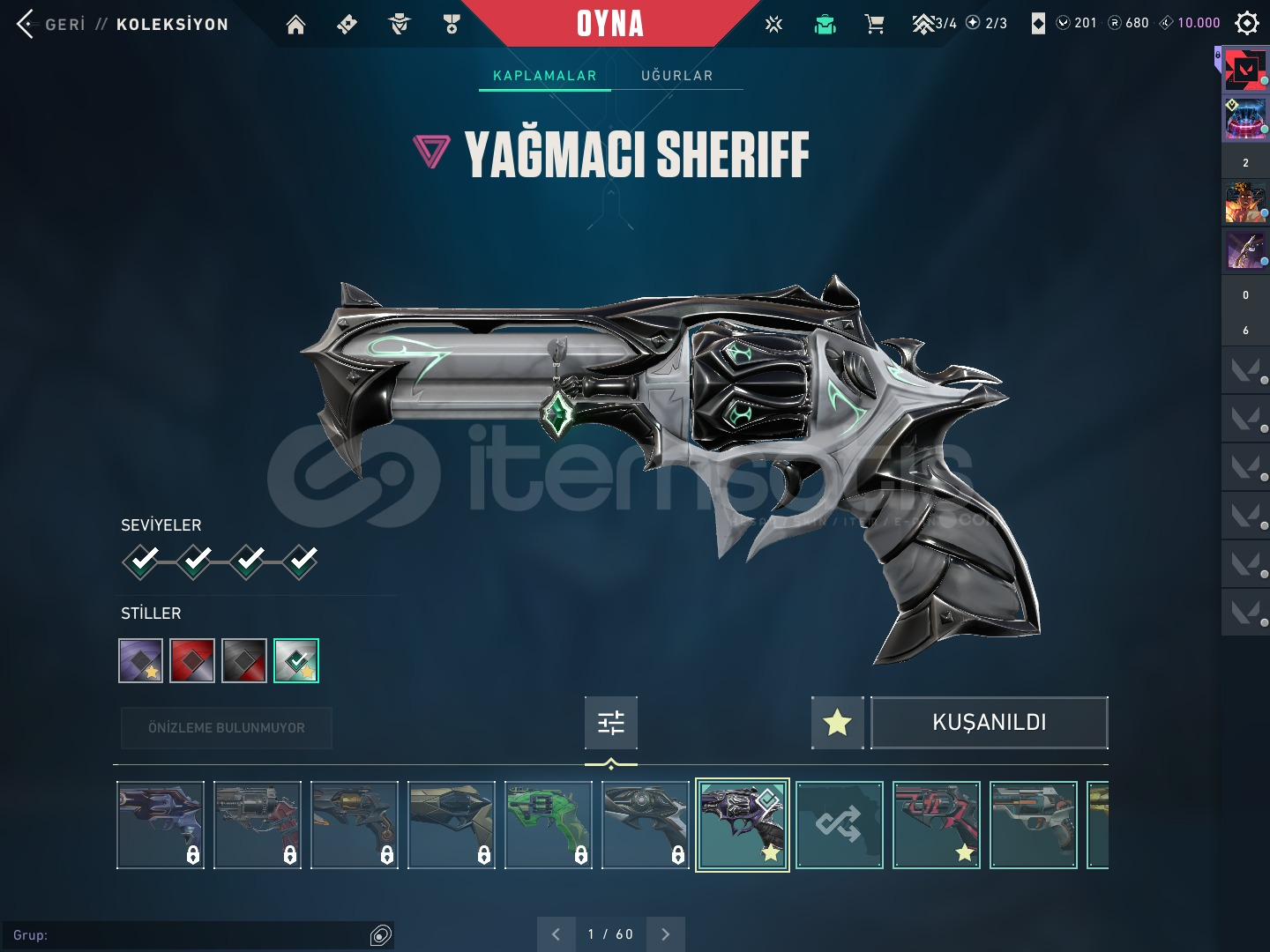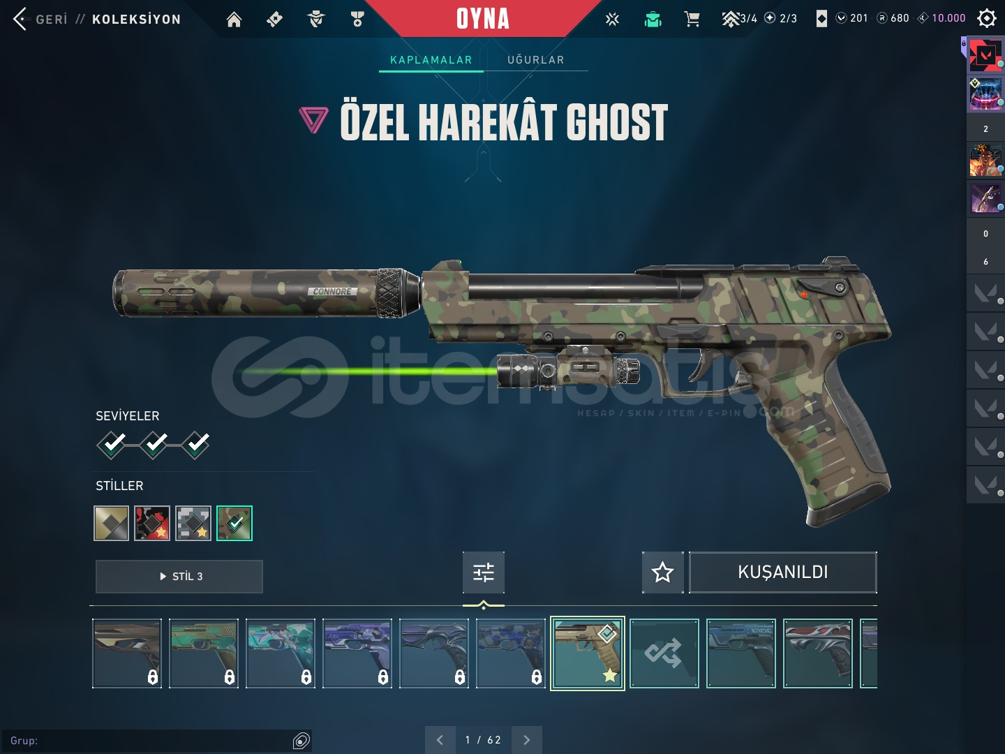 BATTLE PASS HARİÇ 5 BIÇAK BULUNMAKTADIR. İMMO VE YÜCE UĞURLUKLU MAİNLİK GÜZEL HESAP. Bıçaklar: -Uzaylı Avcısı -Yağmacı Karambit -Yağmacı Hançer -RGX Katana -Karaborsa Kelebek -Champions Kunai ve battle pass Vandallar: Yağmacı Vandal Rgx Vandal Yitik Vandal Oni Vandal ve battle pass Phantom: Afet Phantom ve batt...