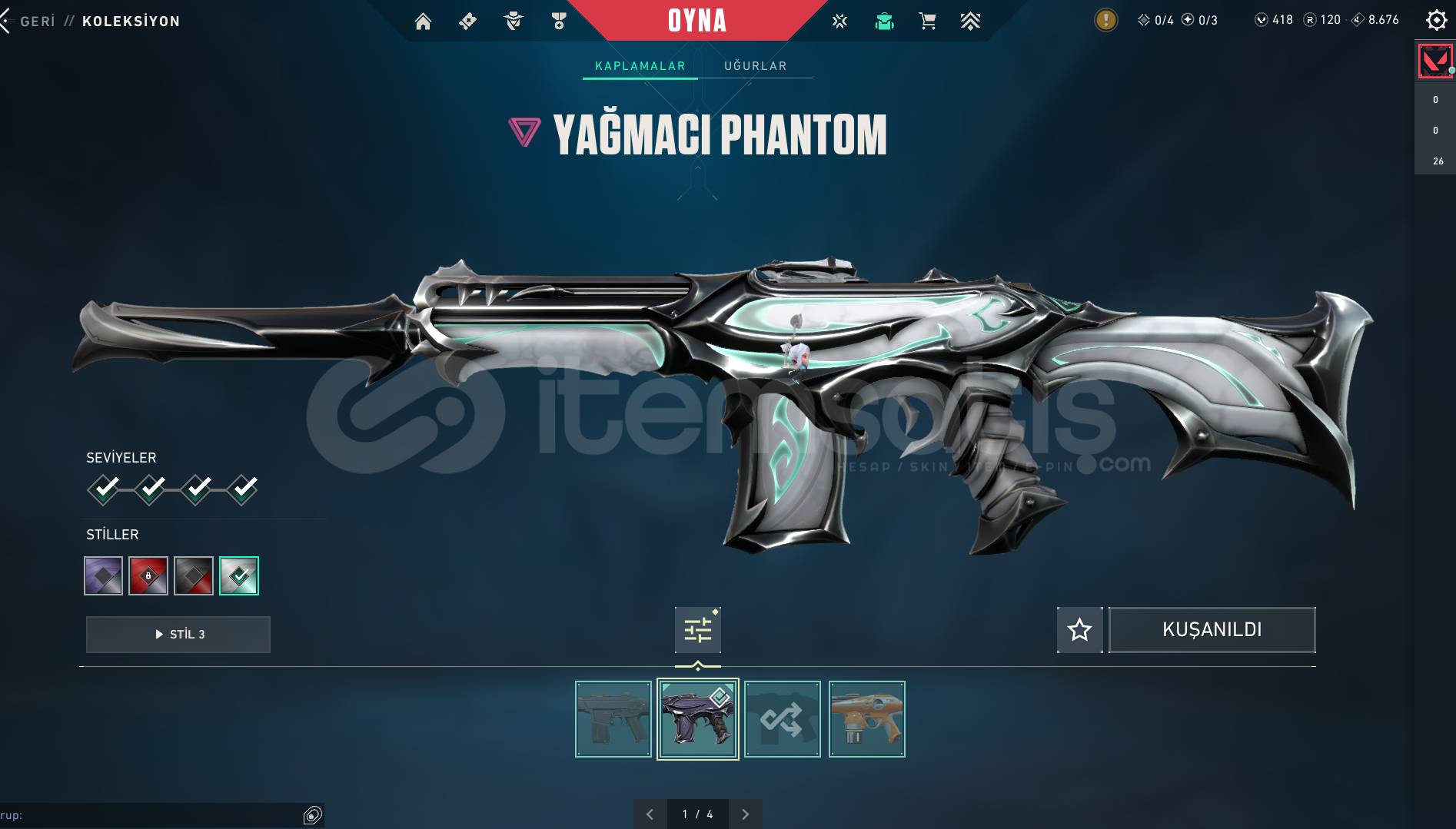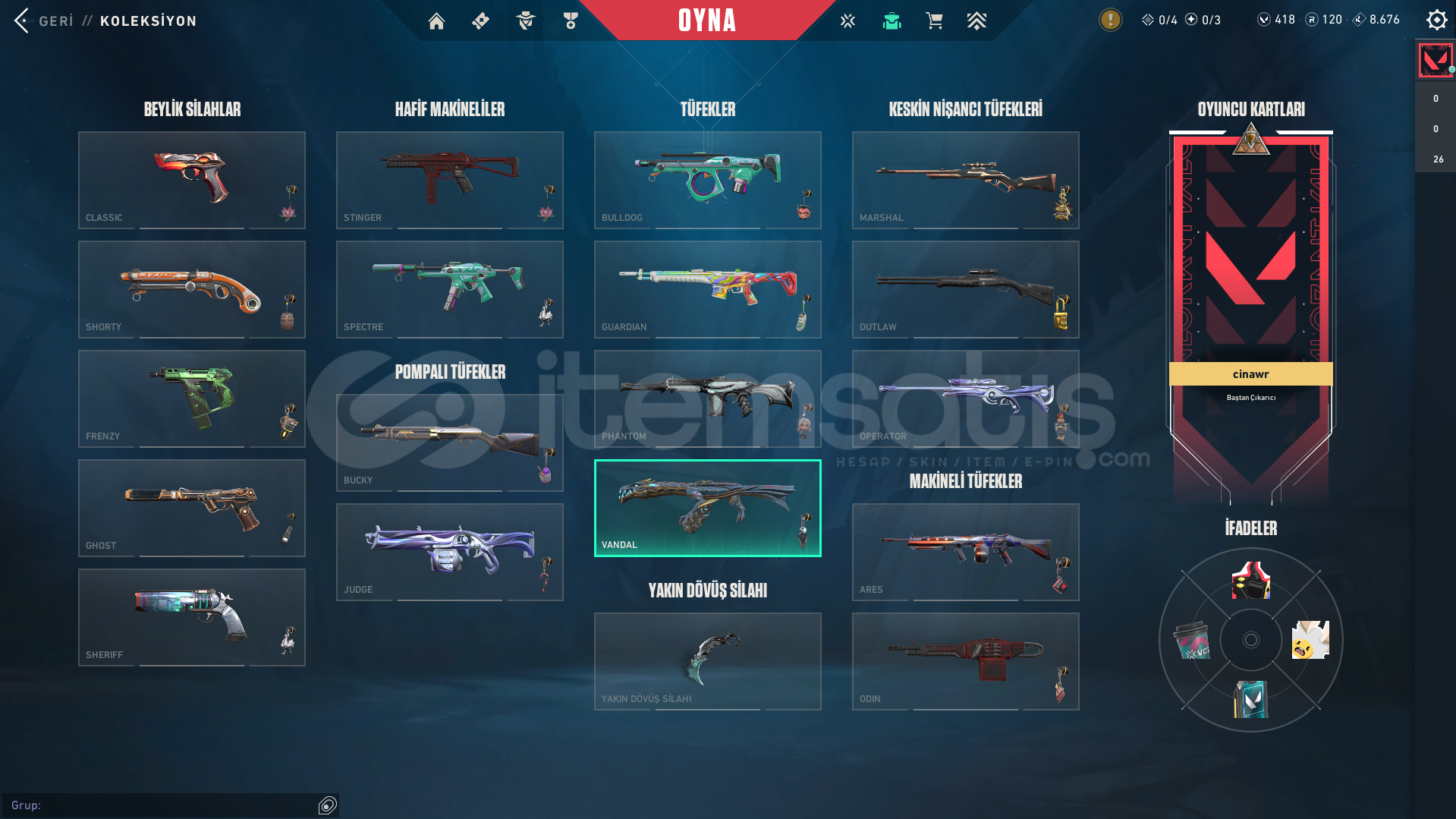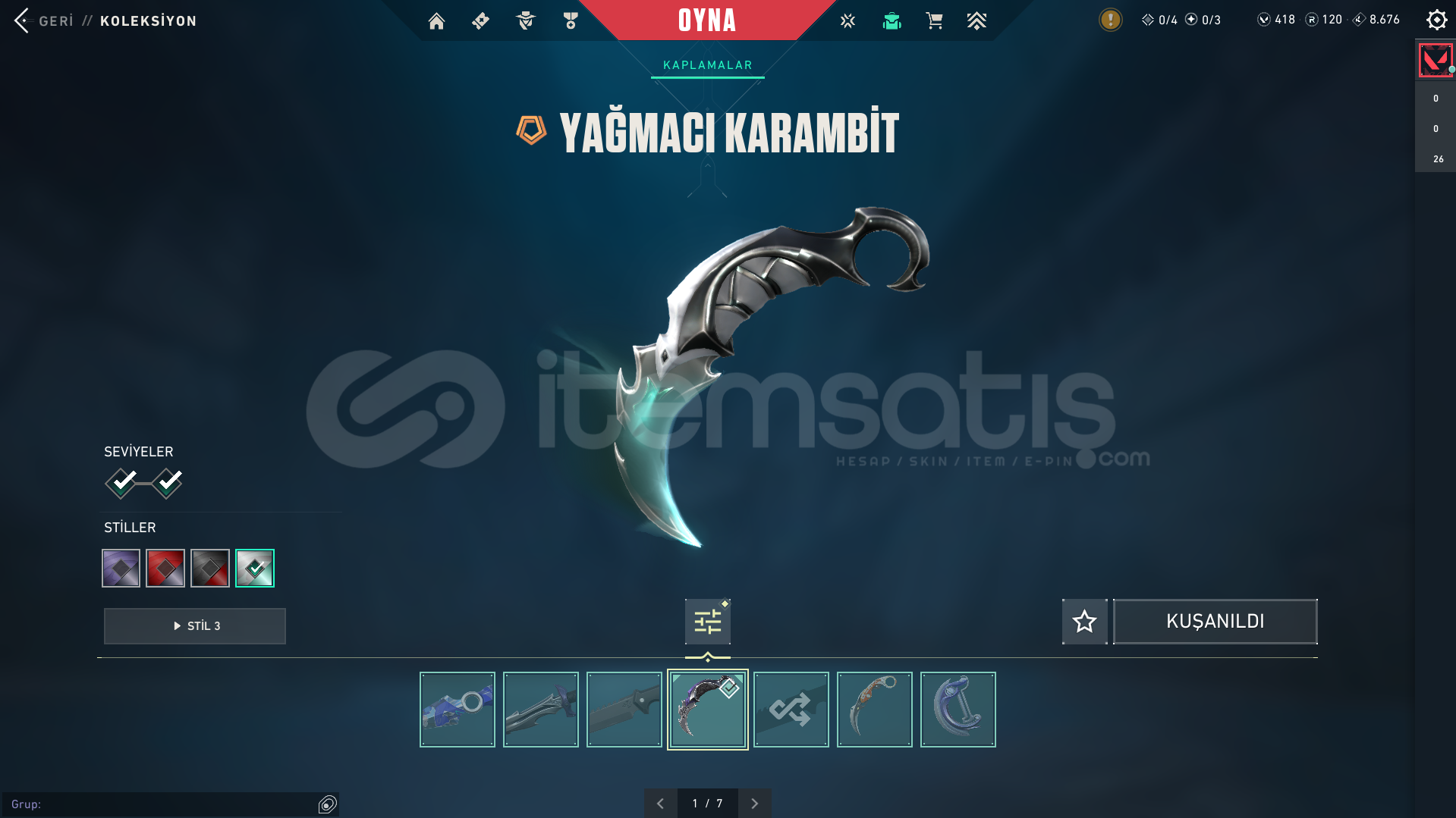 BIÇAKLARYağmacı KarambitYağmacı BıçakValorant Go 1 BıçakHızlı ve Ölümcül Karambitİridyum bıçağıVandal/PhontomEjder Vandalİyon VandalYağmacı VandalYağmacı PhontomKalan Dİğer SkinlerSeri Tetik SheriffShirpunk GhostVe Battle Pass Skinleri