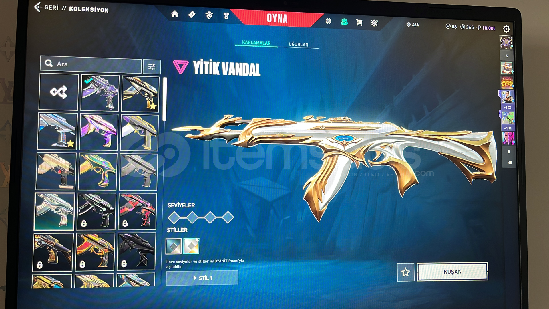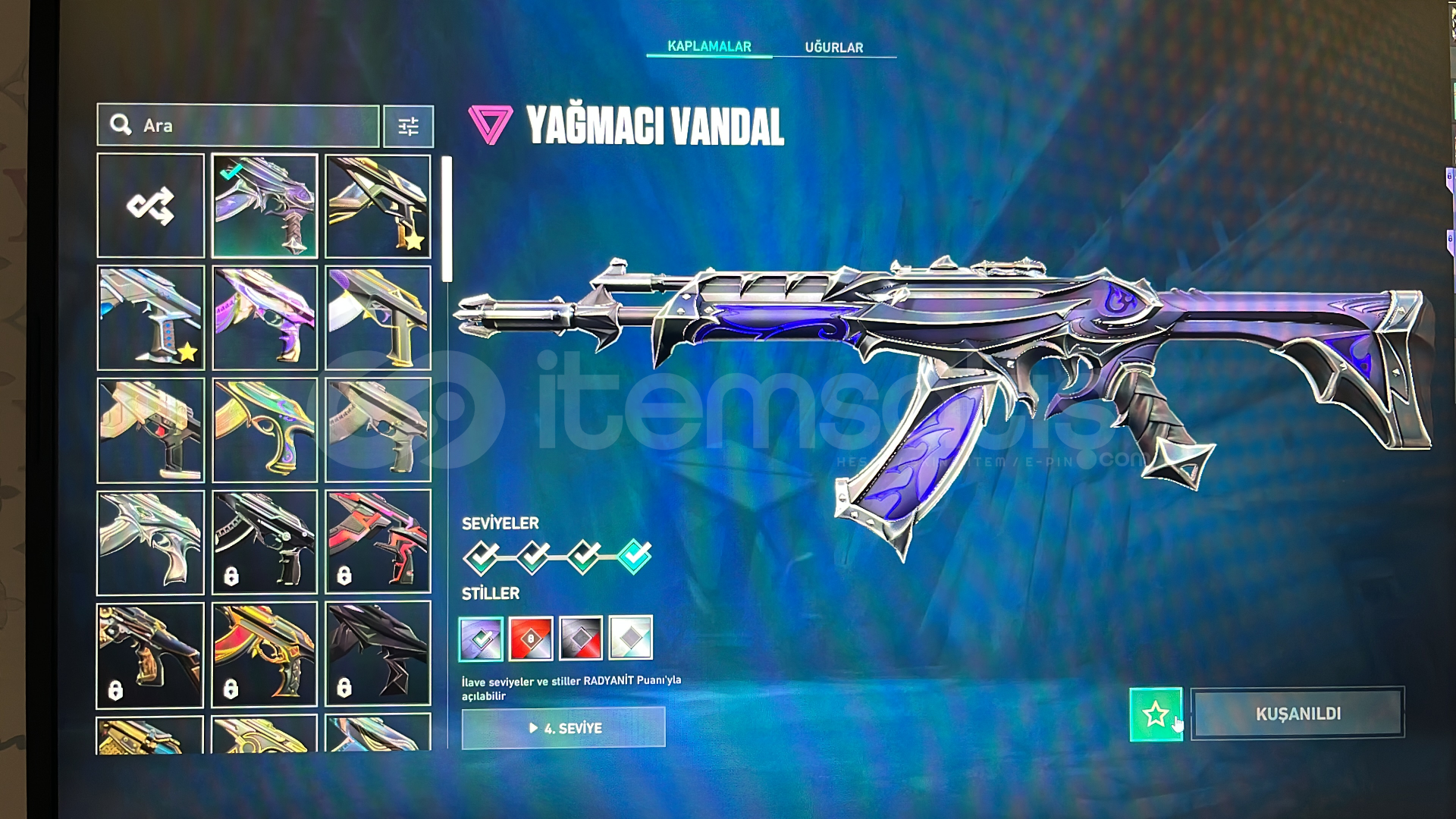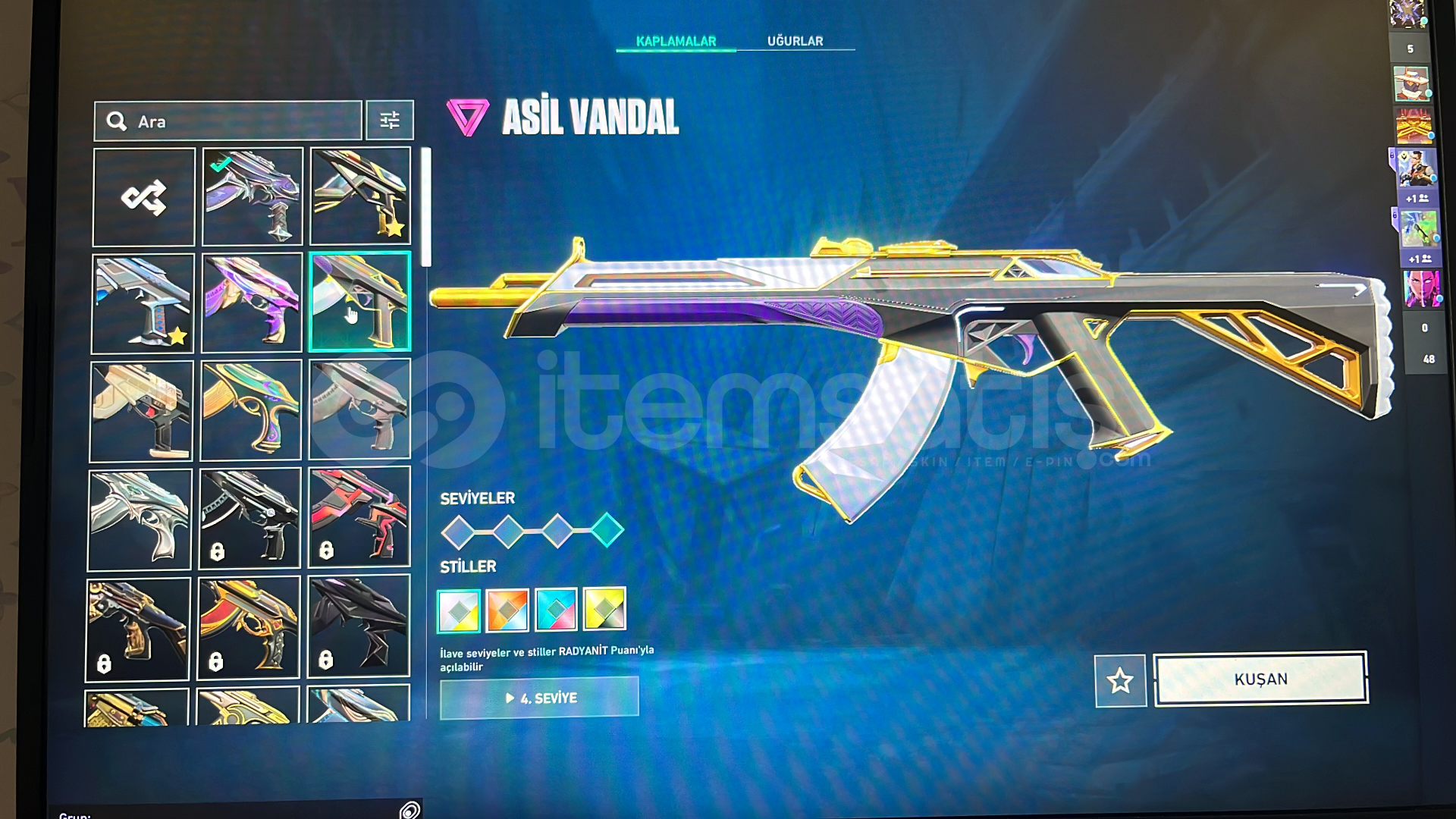 VANDAL ;YağmacıKuranomiAsilChampion 25YitikPHANTOM;Sır ÇiçeğiÖzel HarekatYağmacı OperatörYağmacı ŞherifYAĞMACI KARAMBİTChampion kelebekOrion kılıcı Geri kalan tüm silahlarda bp skin vardır peek plat3 güncel gold 1275 level 350 radyanit vardırSorunsuz hızlı teslimat aldığınız an gelip teslim ederim her zaman müsaitim
