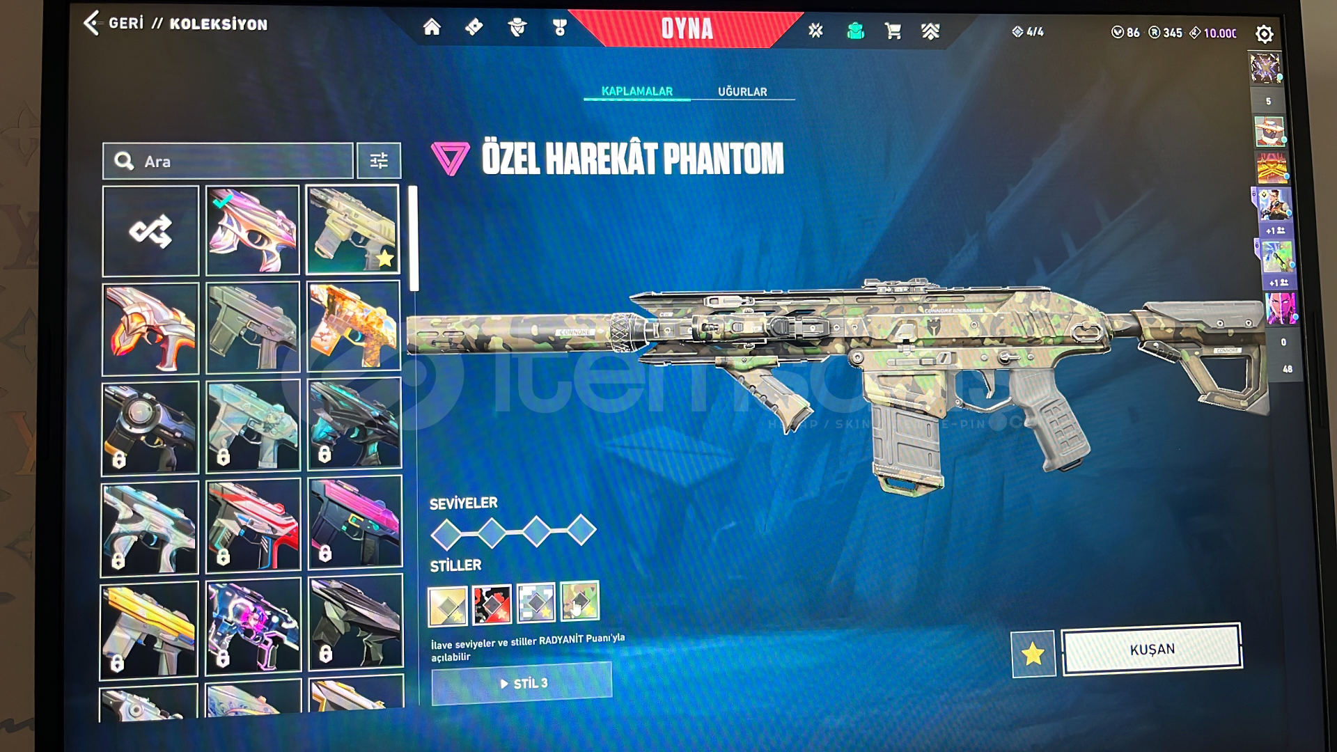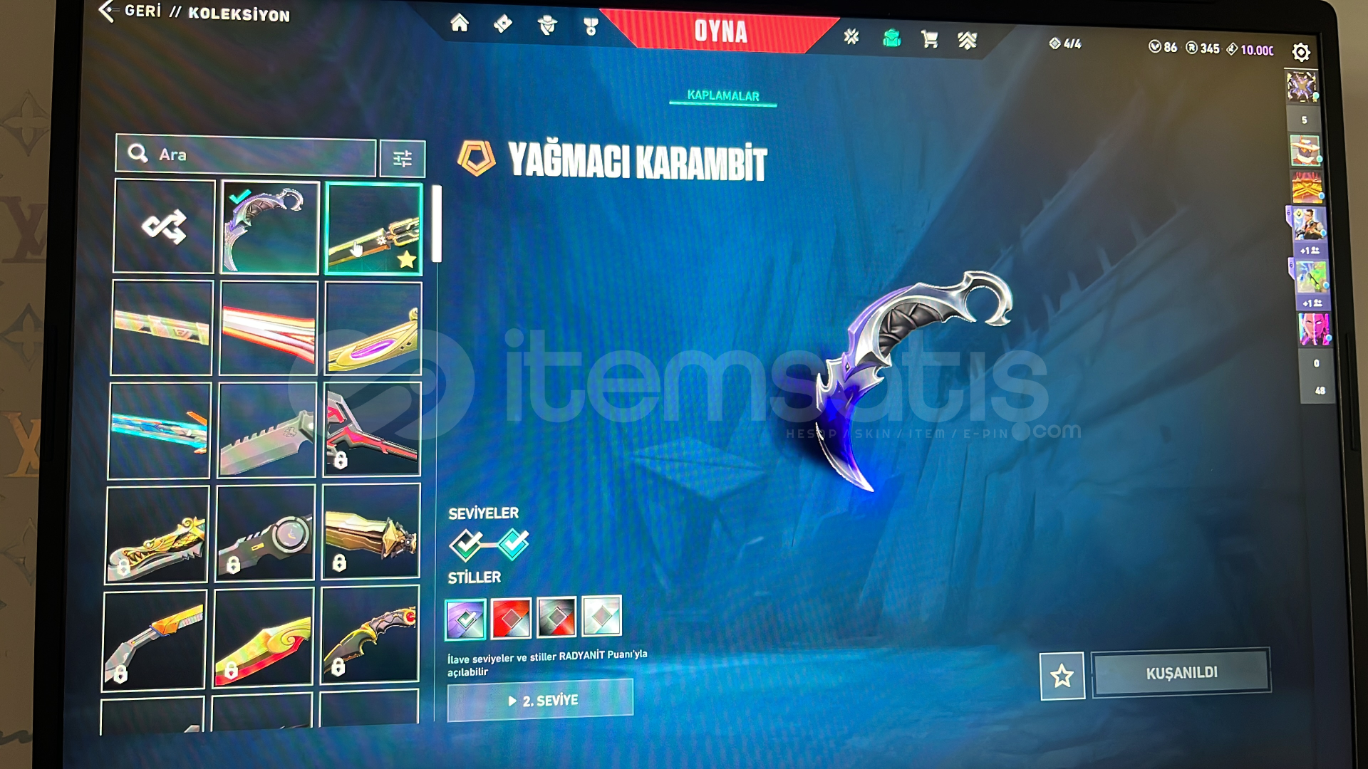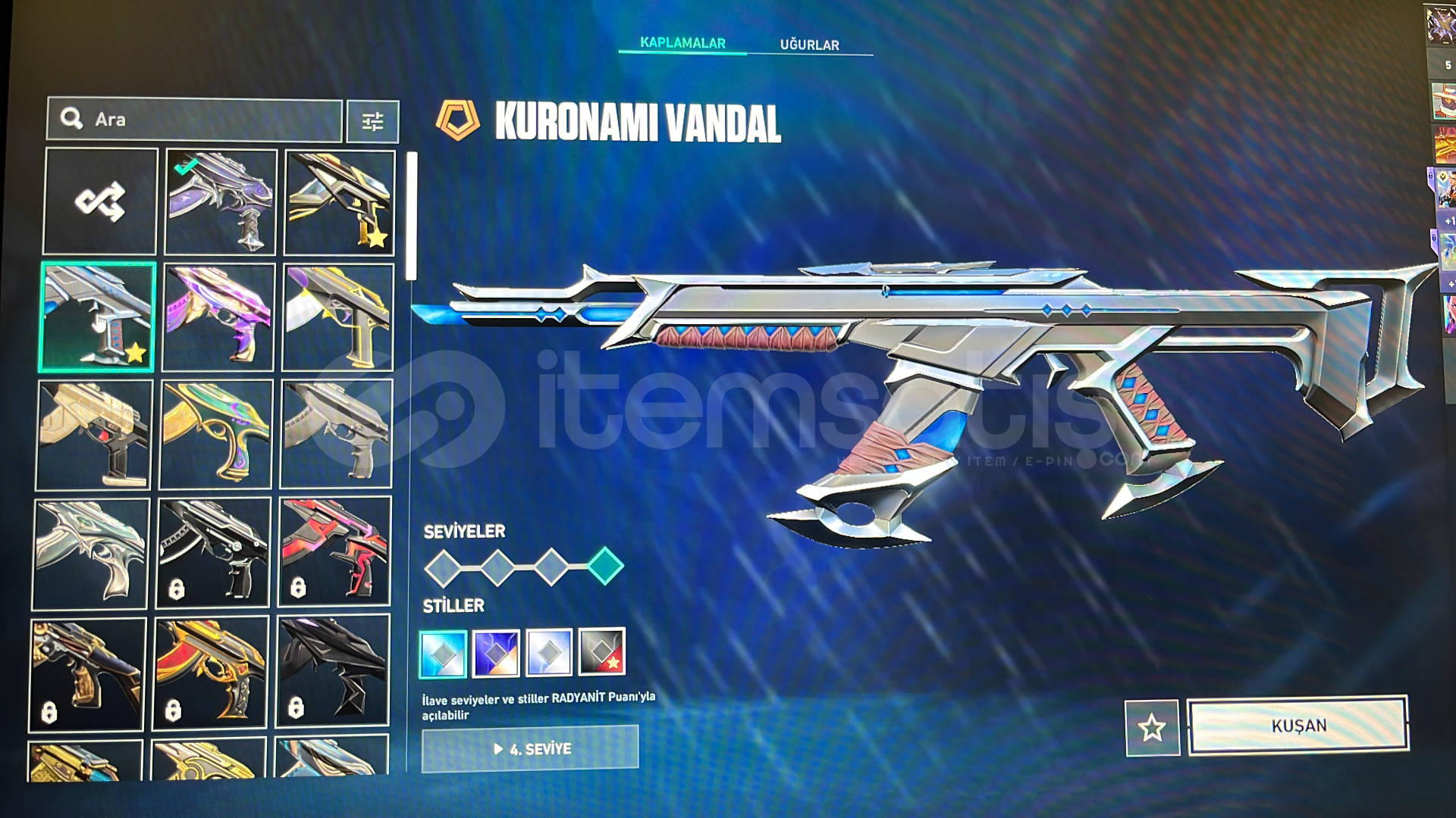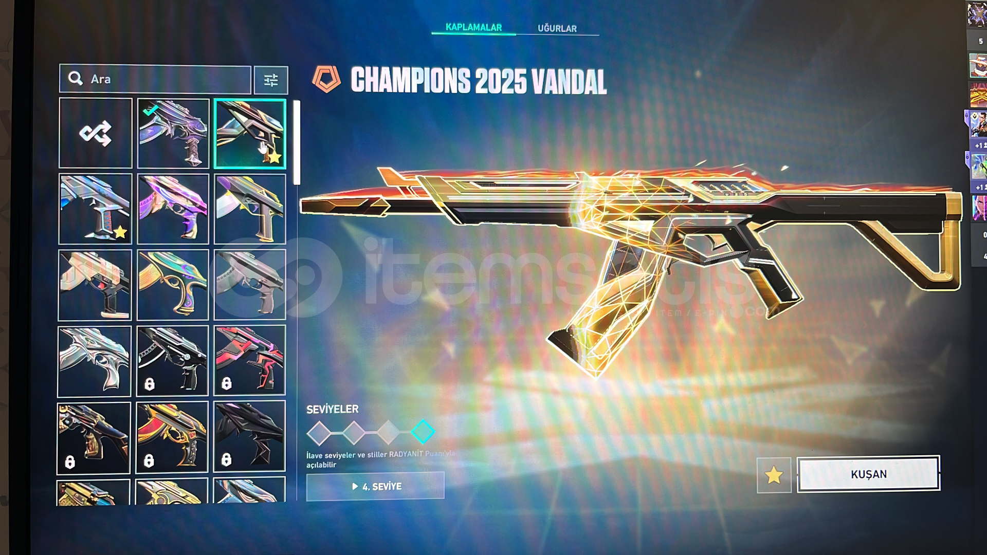 VANDAL ;YağmacıKuranomiAsilChampion 25YitikPHANTOM;Sır ÇiçeğiÖzel HarekatYağmacı OperatörYağmacı ŞherifYAĞMACI KARAMBİTChampion kelebekOrion kılıcı Geri kalan tüm silahlarda bp skin vardır peek plat3 güncel gold 1275 level 350 radyanit vardırSorunsuz hızlı teslimat aldığınız an gelip teslim ederim her zaman müsaitim