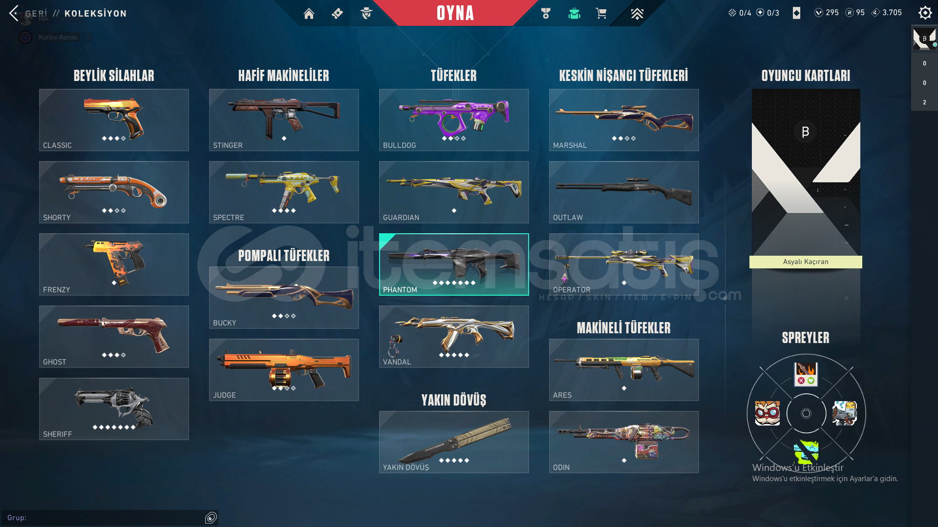 Valorant hesabın içinde bulunanlar resimlerde ki gibidir. Mail alıcının mailine devredilecektir şimdiden hayırlı olsun