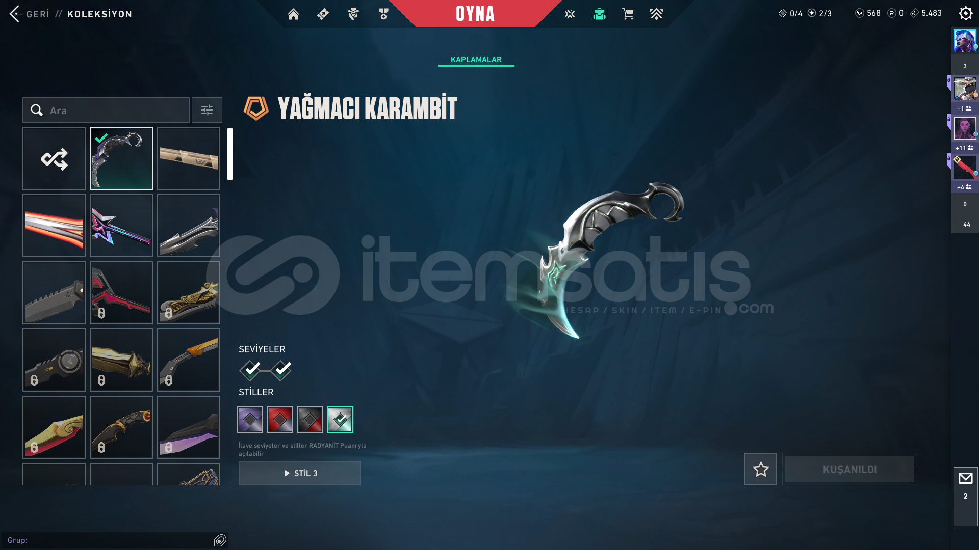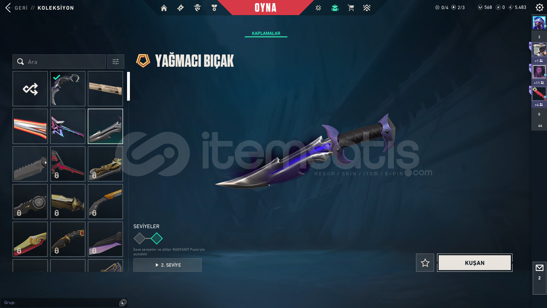 HESAPTA 5 BIÇAK SKİNİ;YAGMACI KARAMBİT YAGMACI HANÇER 1 TANE BALTA 1 TANE KILIÇ 1 TANEDE KILIÇ TARZI BİŞEY