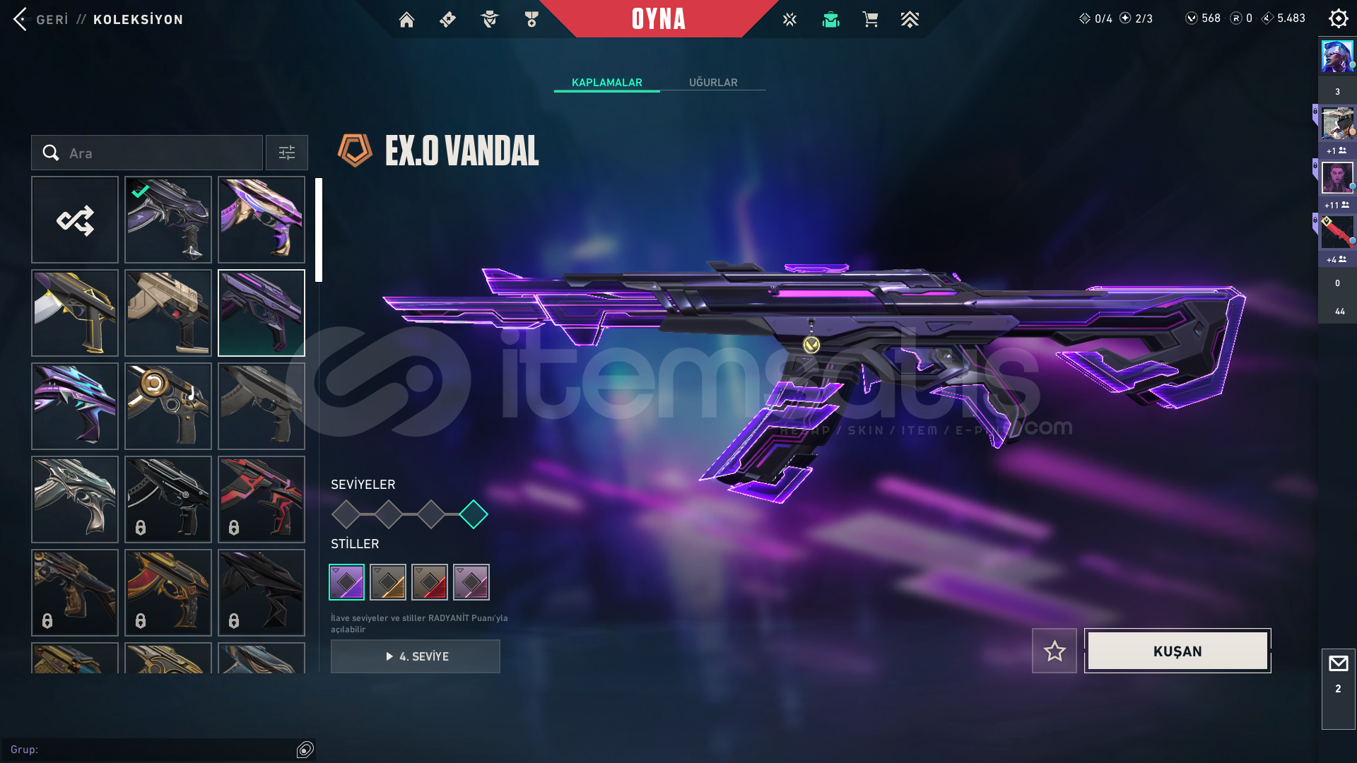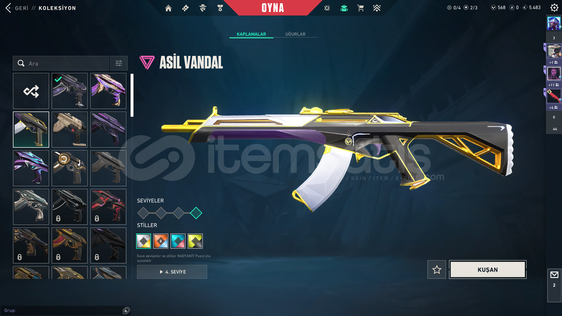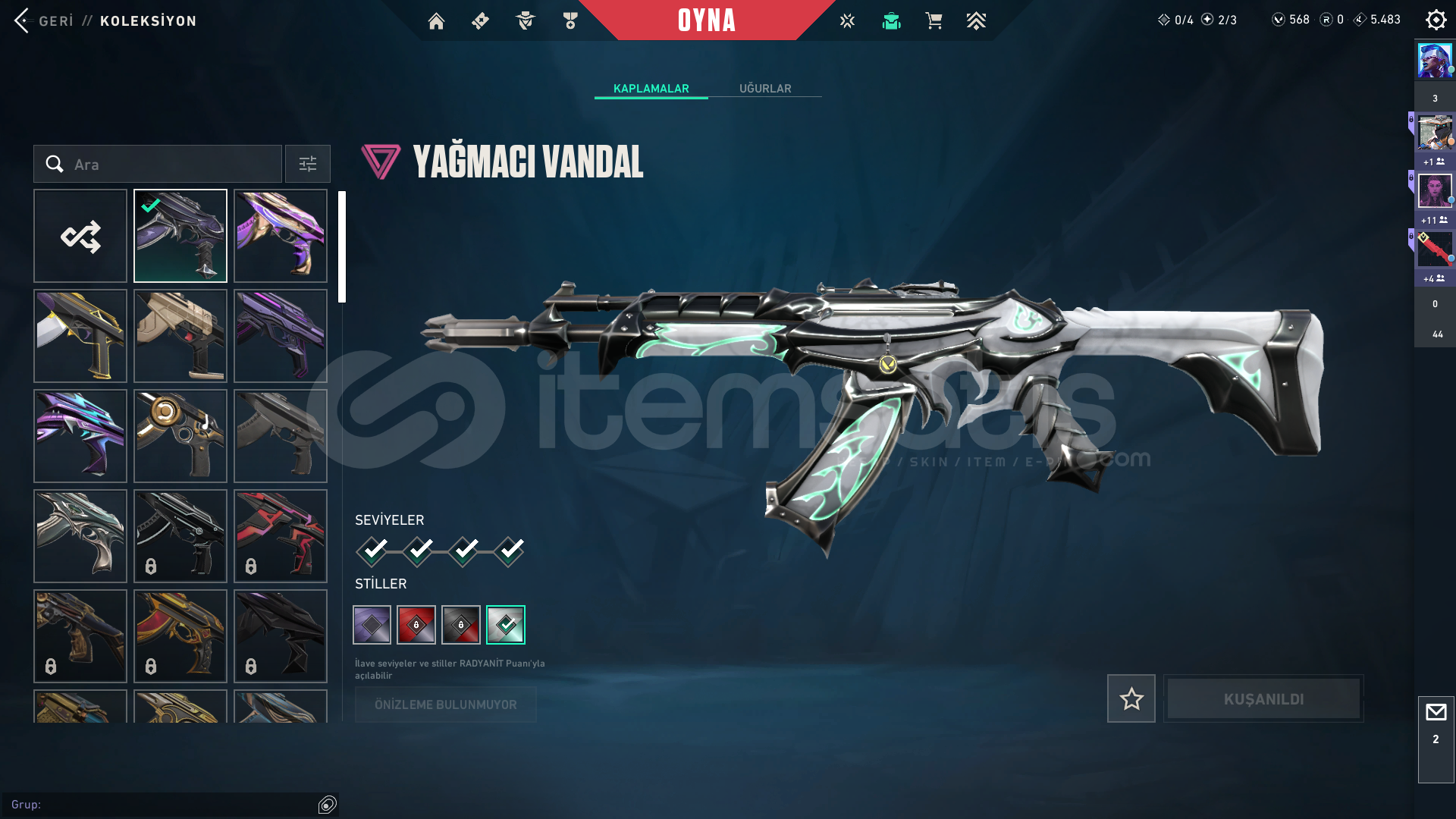 HESAPTA 9 TANE VANDAL SKİNİ ;YAGMACI VANDAL ASİL CANDAL EXO VANDAL YİTİK VANDAL KÖKEN VANDAL DİĞERLERİDE ANİMASYONSUZ