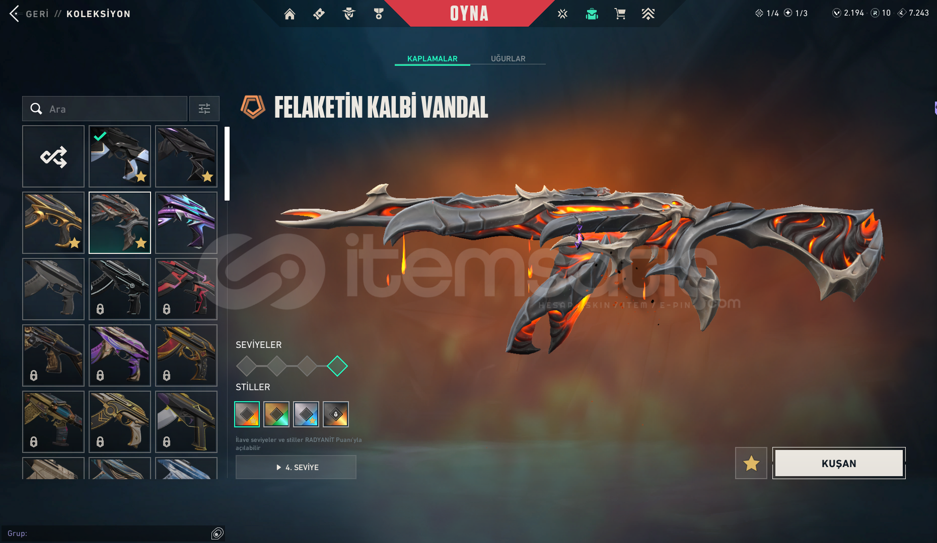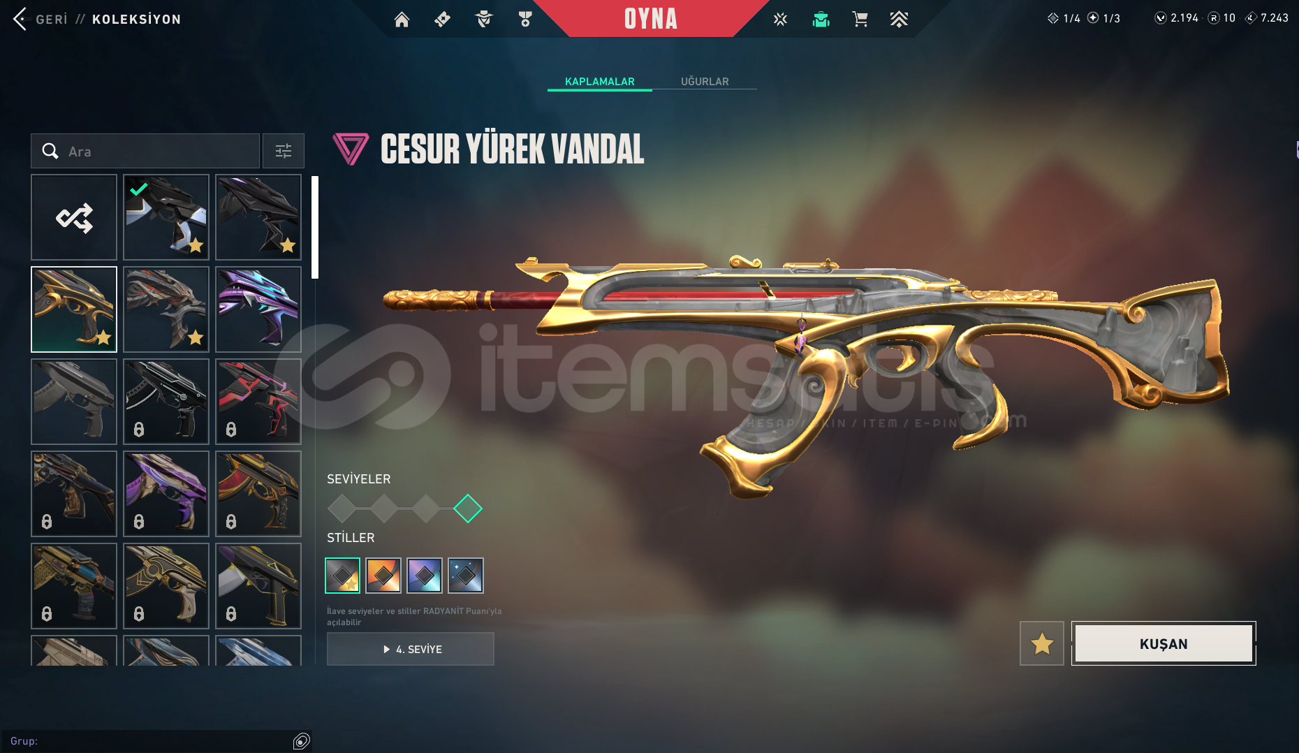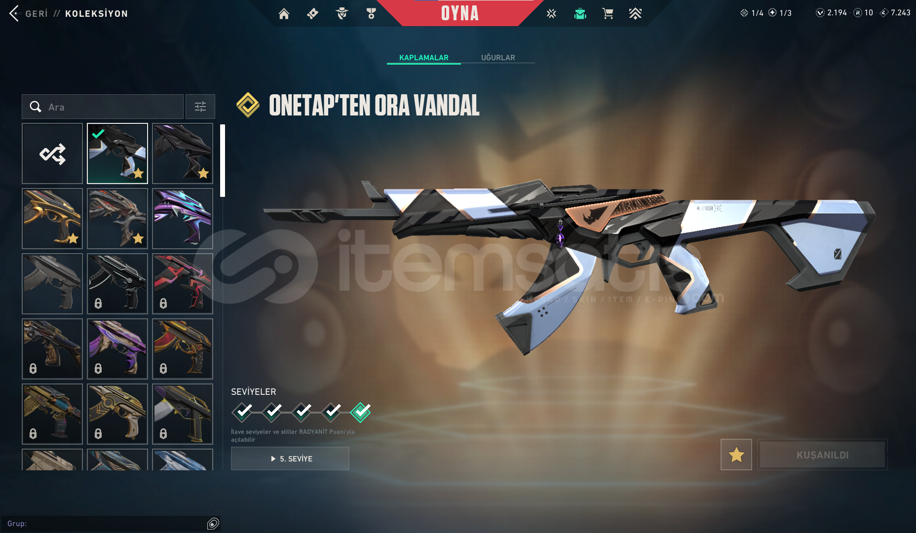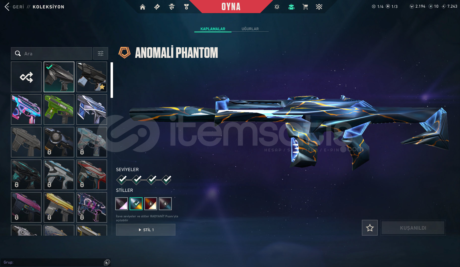 HESAP SATIŞ PİYASASINI BİLMEDİĞİMDEN DOLAYI MESAJ ATIP TEKLİF VERİN GÖSTERMELİK FİYAT DİREKT SATIN ALMAYIN!Hesap Seviye: 100Toplam Skin: 51 AdetVP ile alınmış skin: 18 Adetİlk Mail ile teslim edilecek——— VANDAL (4 Adet)• Anomali Vandal → 1775 VP• Onetap Vandal → 2175 VP• Cesur Yürek Vandal → 1775 VP• Felaketin Kalbi Vandal → 2175 VP⸻ PHANTOM (3 Ade...