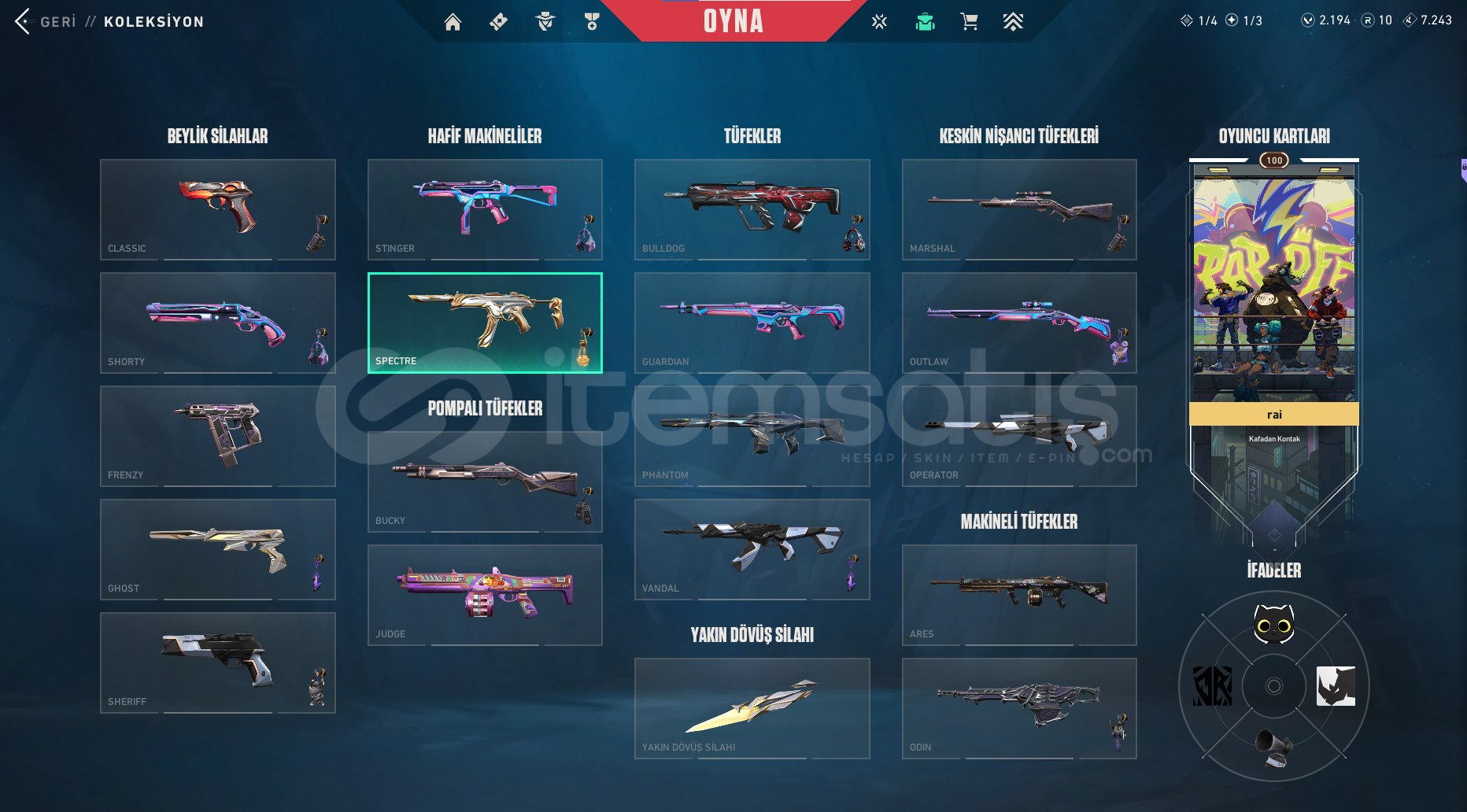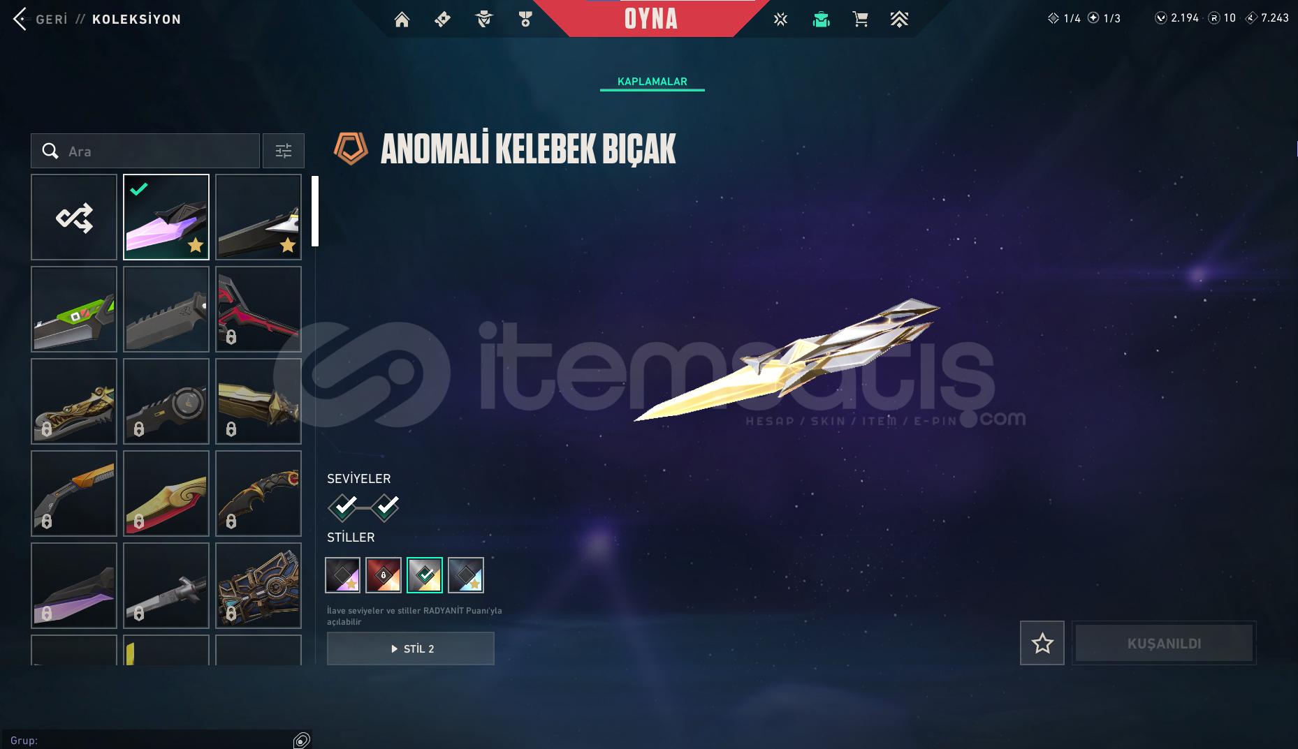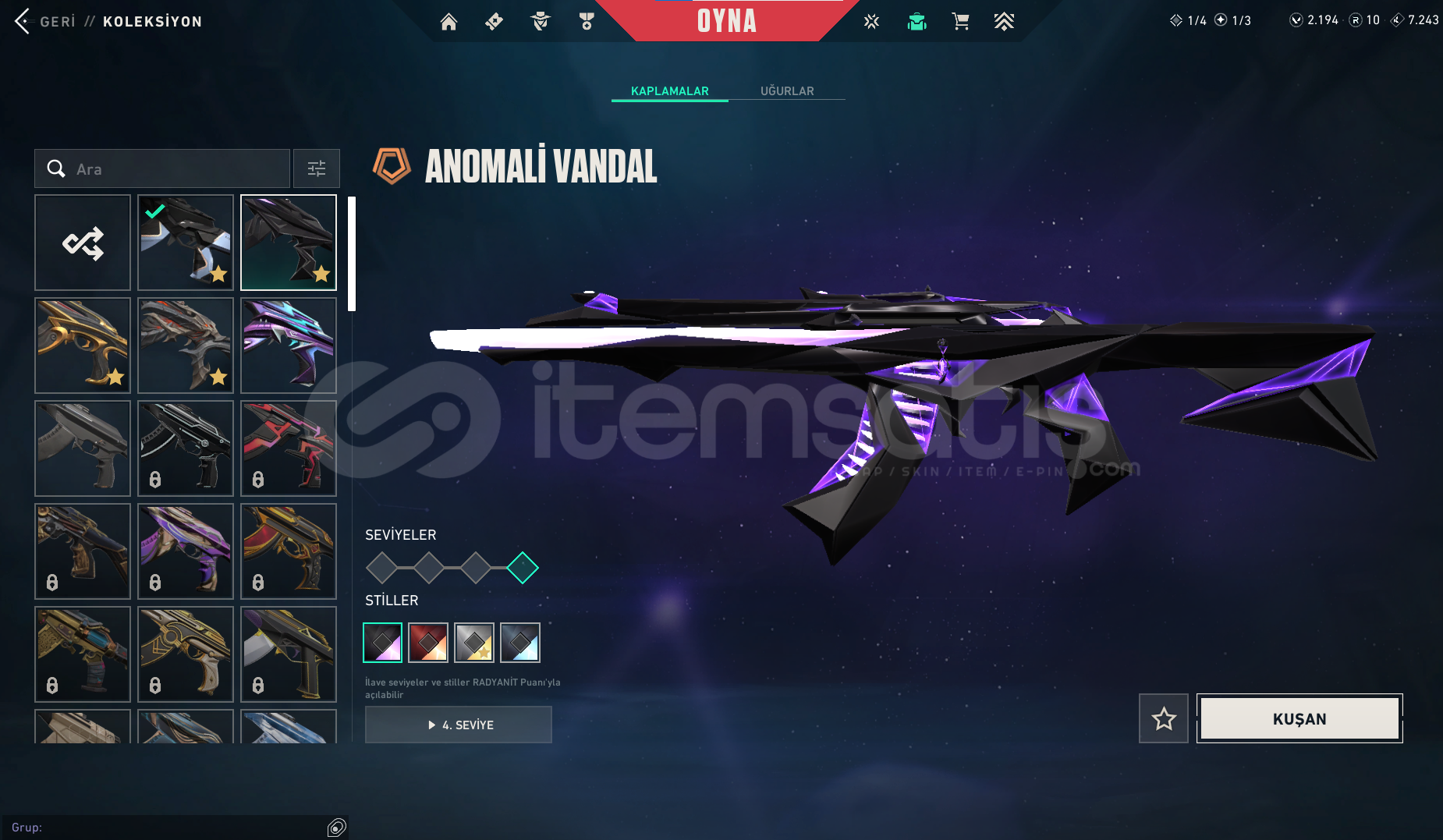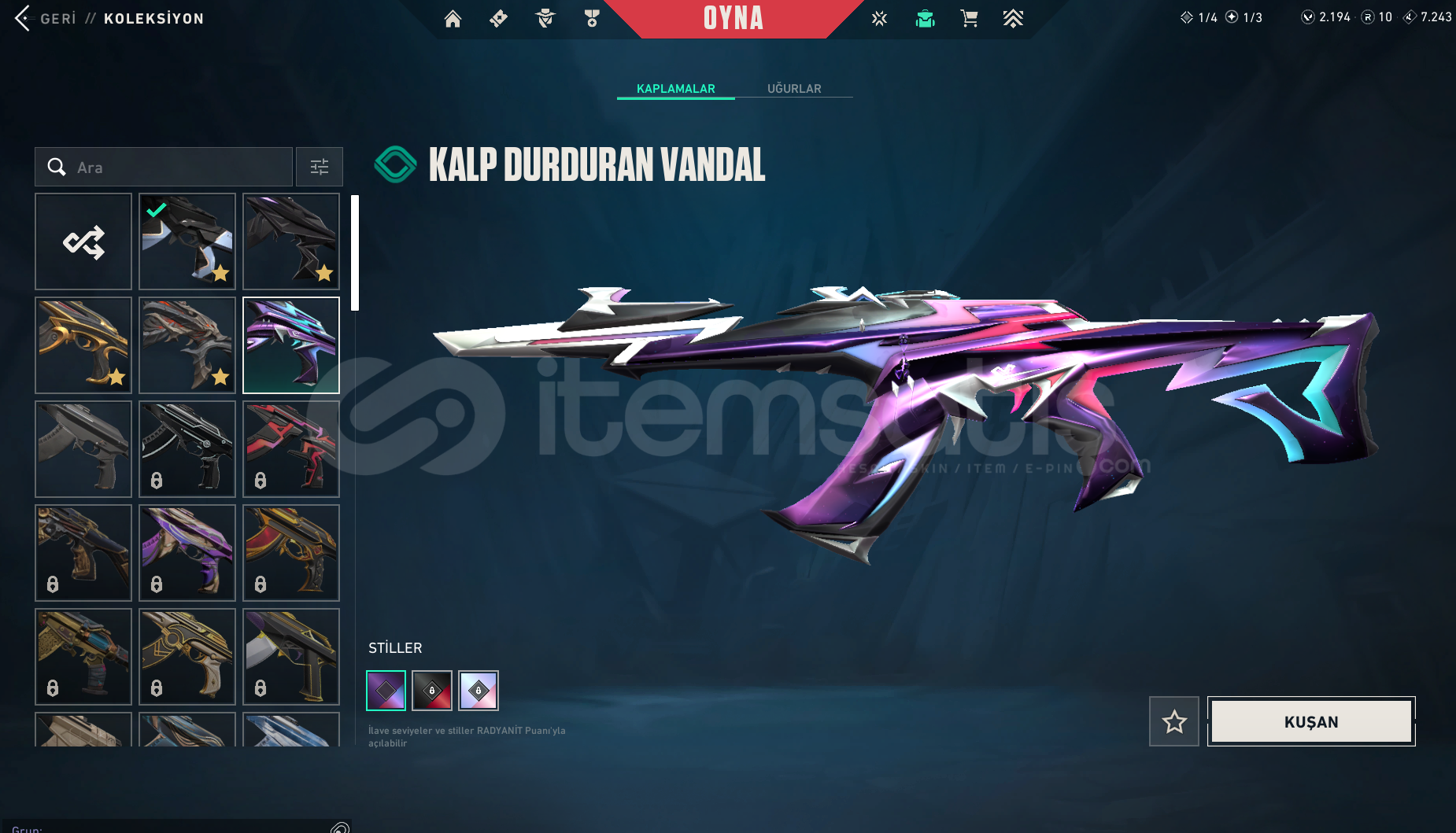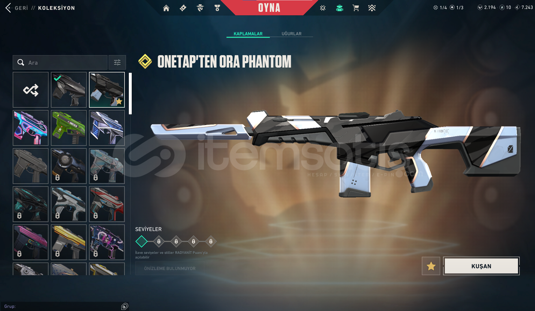 HESAP SATIŞ PİYASASINI BİLMEDİĞİMDEN DOLAYI MESAJ ATIP TEKLİF VERİN GÖSTERMELİK FİYAT DİREKT SATIN ALMAYIN!Hesap Seviye: 100Toplam Skin: 51 AdetVP ile alınmış skin: 18 Adetİlk Mail ile teslim edilecek——— VANDAL (4 Adet)• Anomali Vandal → 1775 VP• Onetap Vandal → 2175 VP• Cesur Yürek Vandal → 1775 VP• Felaketin Kalbi Vandal → 2175 VP⸻ PHANTOM (3 Ade...