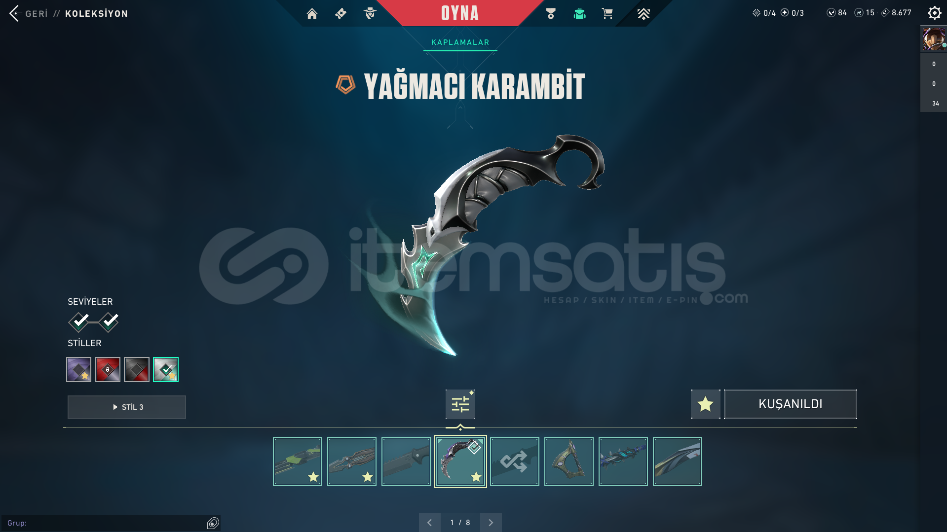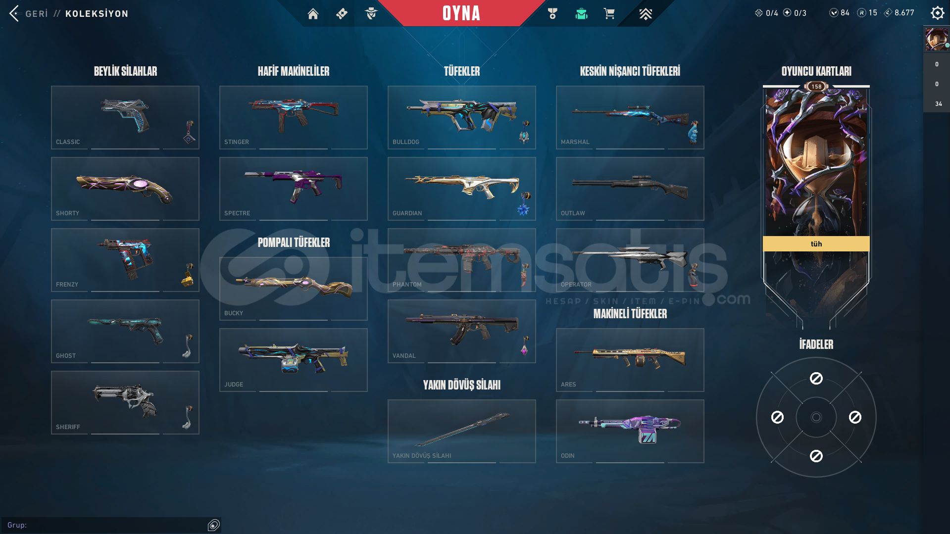 • Oyunu zaten nadiren oynuyordum artık hiç girmeyeceğim için hesabımı satıyorum. Hesabın ilk sahibi benim. Ban veya ceza geçmişi yoktur. Devir, ilk mail ile birlikte mail değişimi yapılarak sağlanacaktır. İsim değişim hakkı vardır ki isim değişimi rica edeceğim aynı Nicki kullanacağım için. 158 level hesapta 53 skin(15 adet VP'li ve 38 adet Battlepass Skini) vardır. 84 VP 15 Radyanit 8677 KP vardır. Harbor, Iso, Tejo, Veto, Vyse, Waylay hariç her ajan açıktır zaten hesaptaki kp ile istediğiniz birini açabilirsiniz. Peak rank Plat 3'tür en son derecesi Bölüm 7 Kısım 3'te olmuştur dereceli girmeyeli baya oldu zaten.