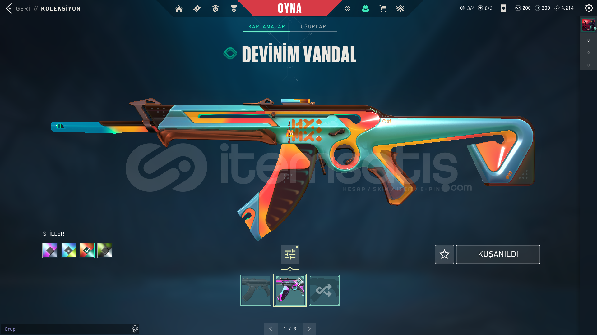 ⭐ Hesapta Yağmacı Karambit ve Devinim Vandal bulunmaktadır. Bunun dışında 7 ekstra skin daha bulunmaktadır.