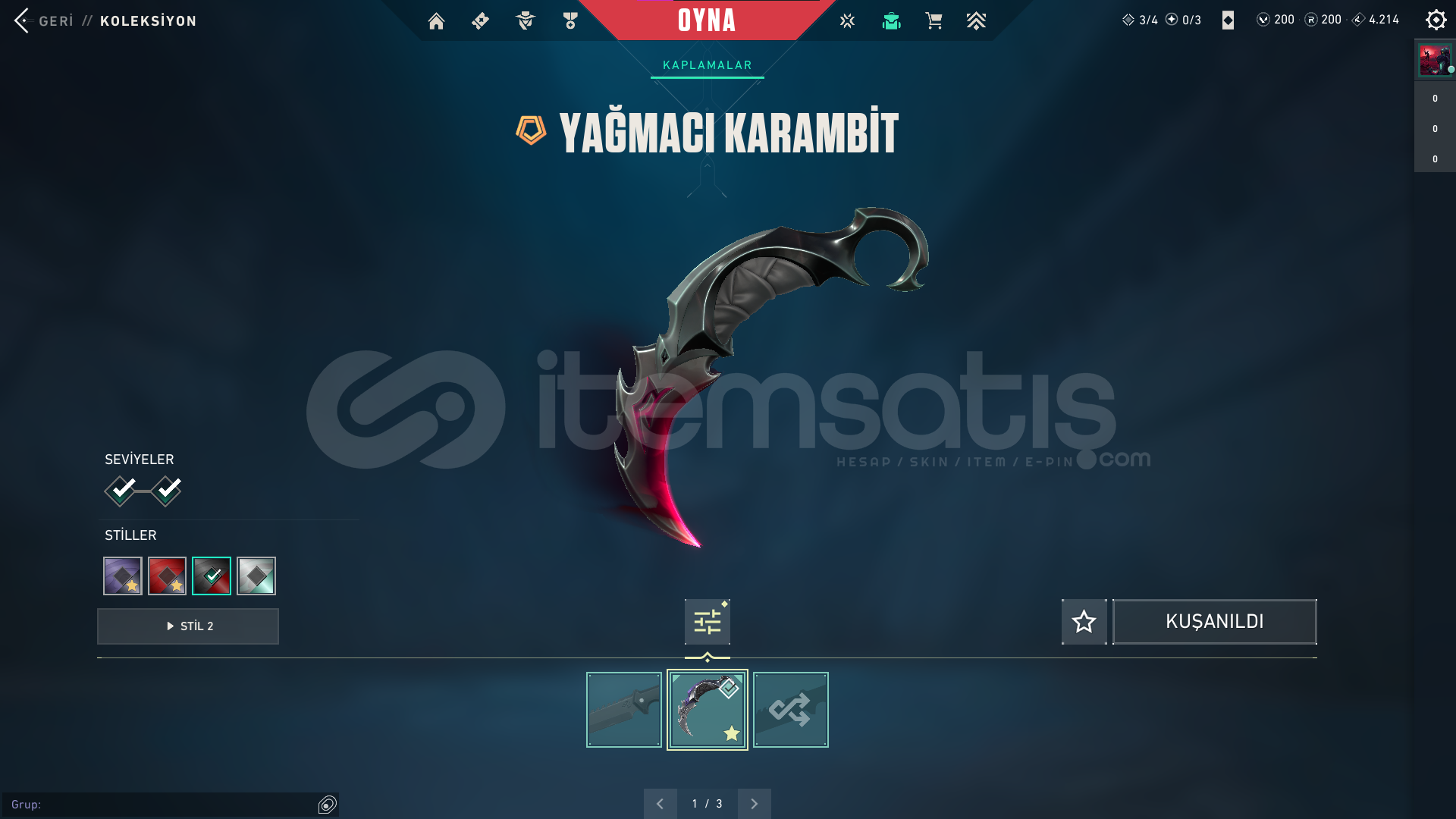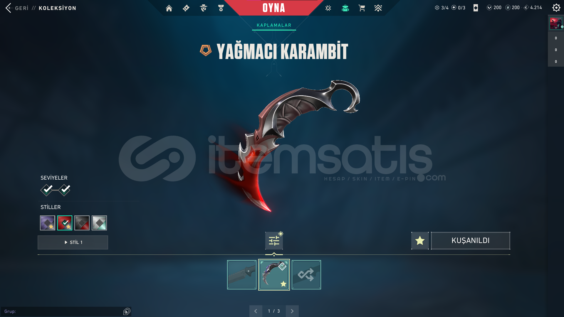57 Level Yağmacı Karambit 200 RP Devinim Vandal