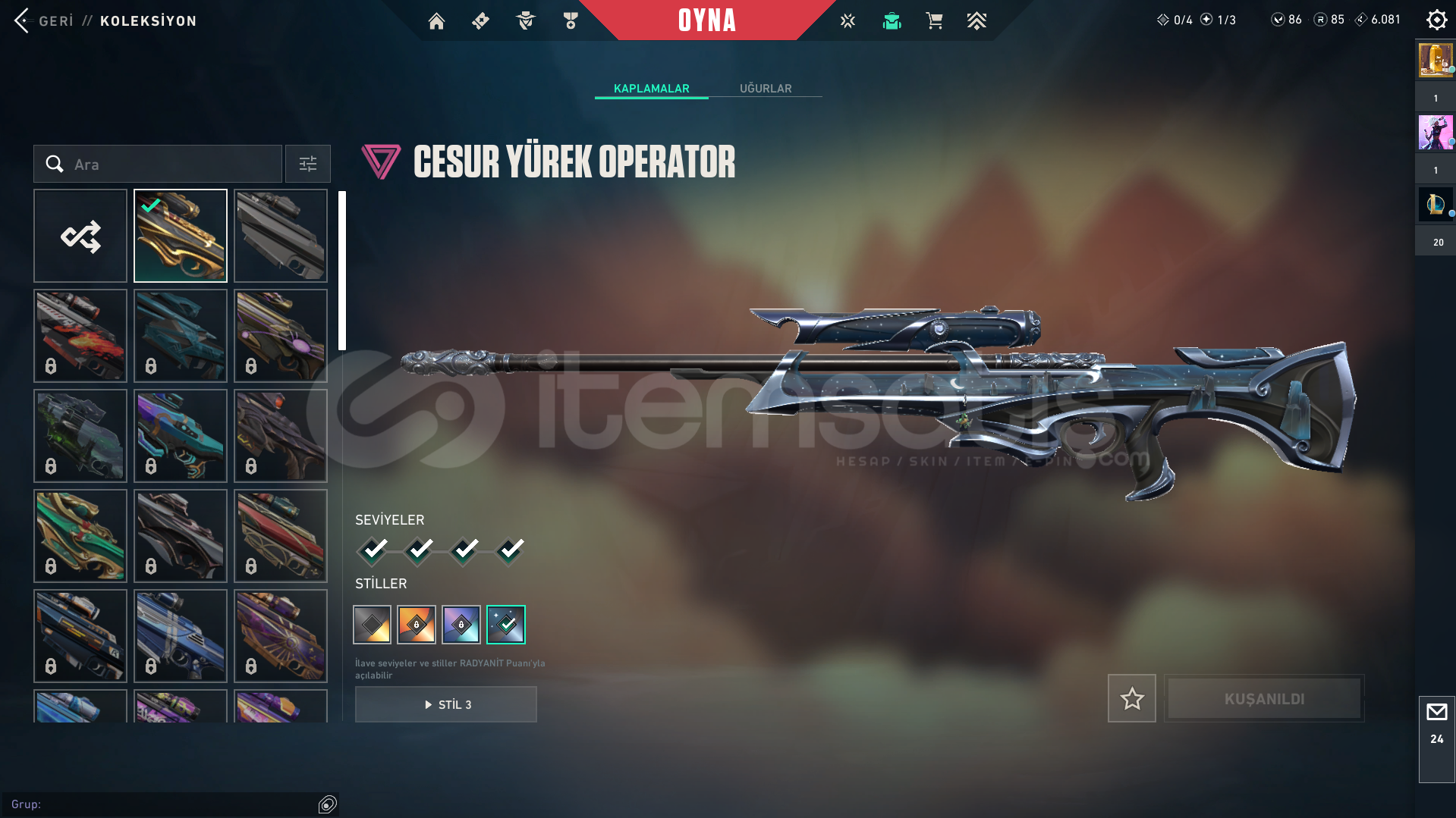 Hesapta Gez - Göz couple kartları ve uğurları vardırAsil classicProtokol spectre Özel harekat phantom Kuronami vandalCesur yürek operatör Oni katana bulunmaktadır