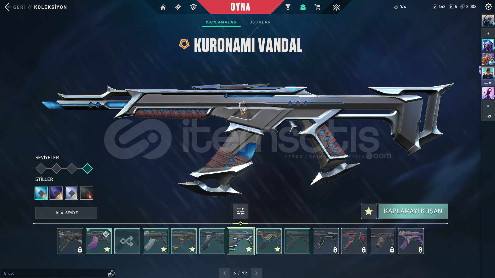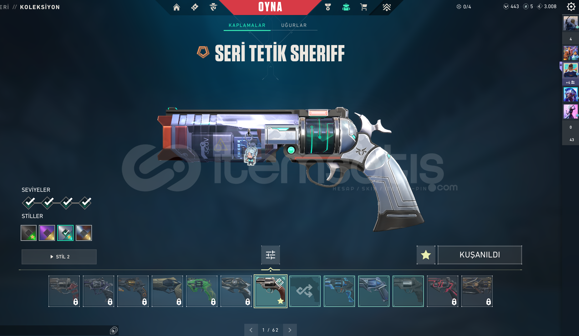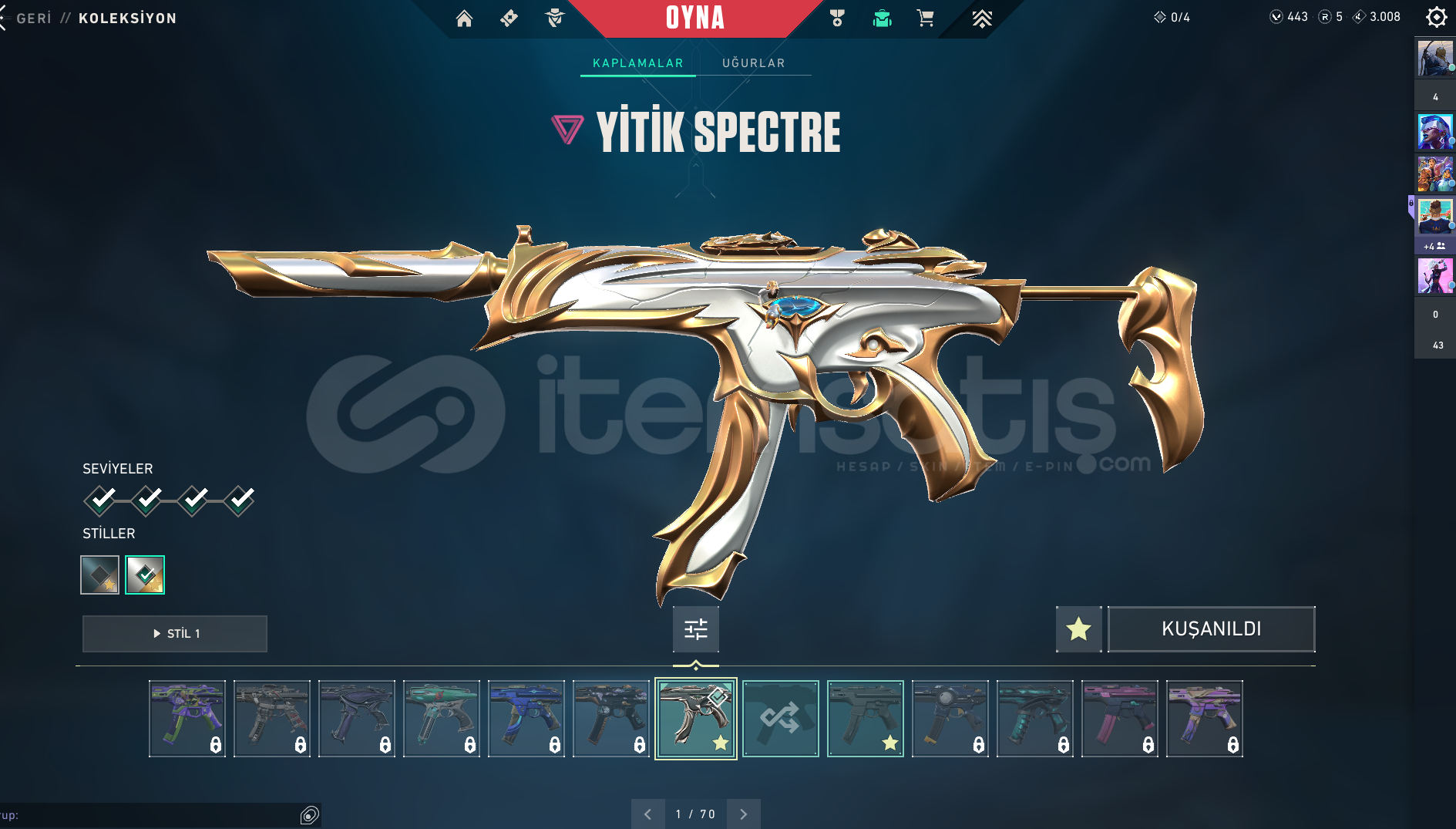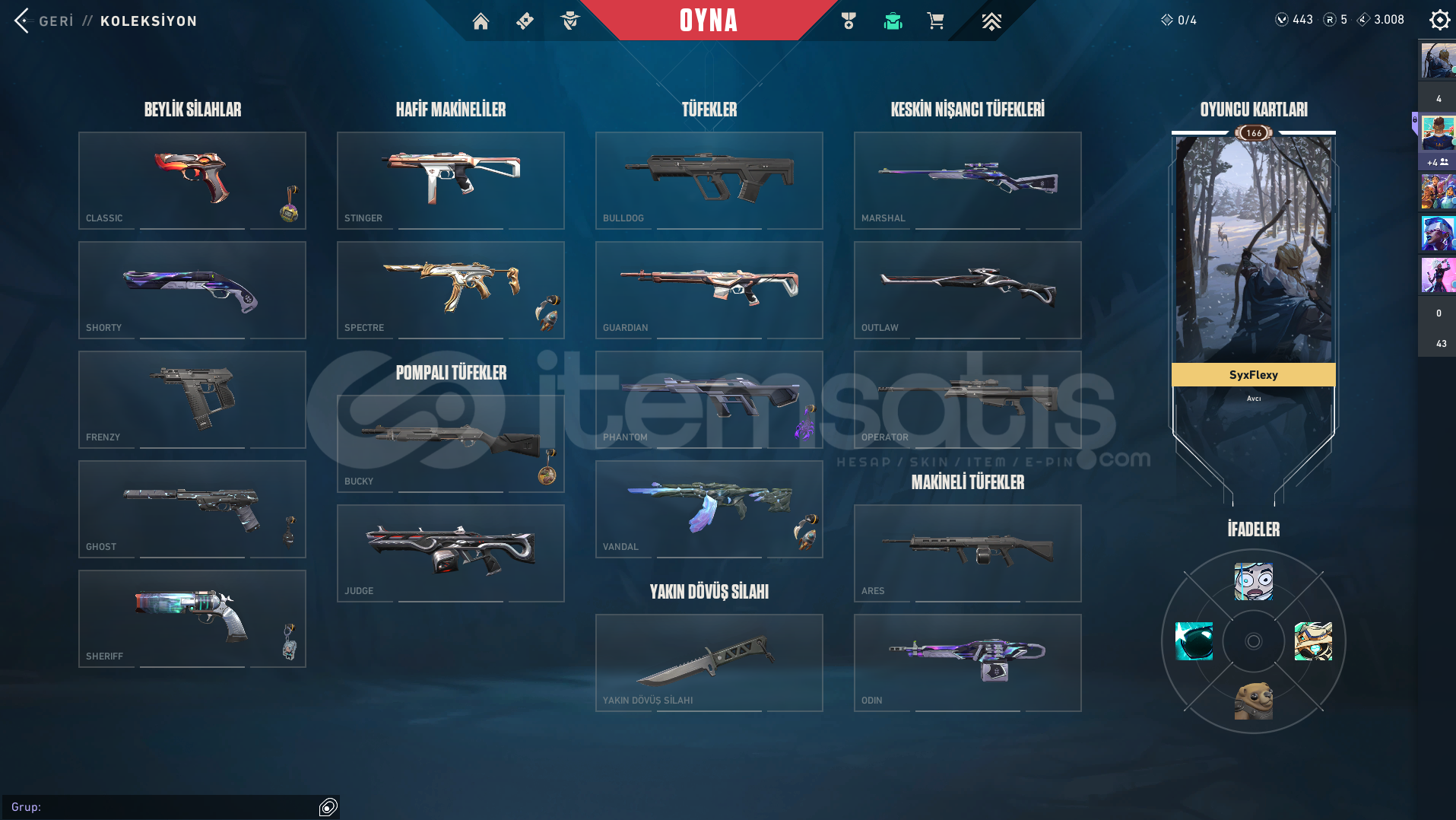 hesapta kuranami vandal asil vandal oni vandal cesür yürek vandal ve dolmırın intikamı vandal vardır phatomda gaia ve şimşek vardır seri tetik sheriff vardıryitik spectre ve xenohunter bıçak vardır hesap içinde 443vp vardır 1de battle pass açılmıştır