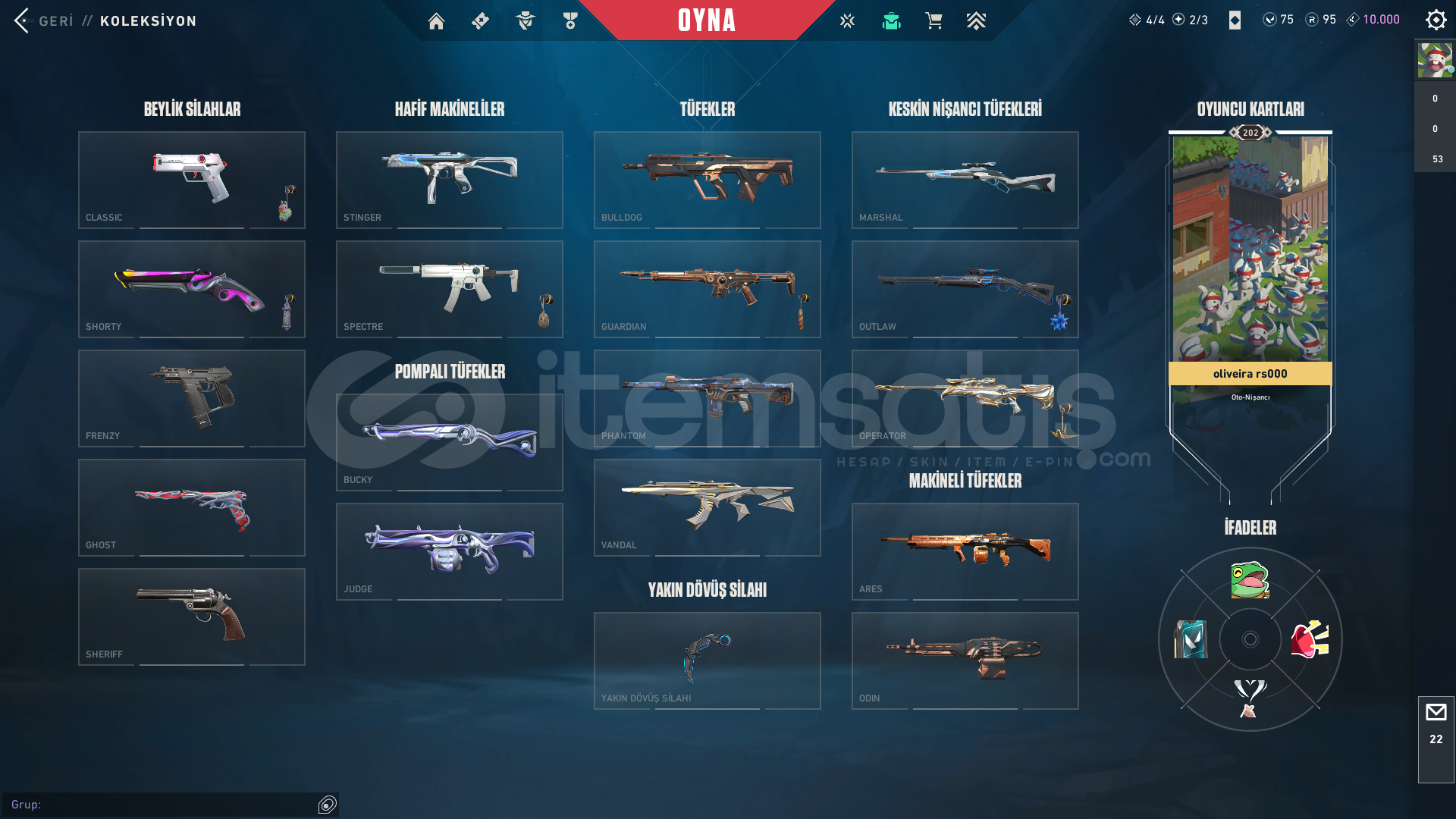 ✅ Mail: Mail değişimi yapılacaktır.✅ Level: 202✅ Rank: Gold 2✅ Knife / Bıçak Sayısı: 6✅ Skin Sayısı: 54🎯 Önemli Skinler:Elderflame VandalRGX 11z Pro OutlawNocturnum PhantomReaver KarambitPrelude to Chaos VandalYoru's Stylish Butterfly CombSentinels of Light VandalRGX 11z Pro FireflyNeo Frontier SheriffSpectrum ClassicRGX 11z Pro SheriffSingularity ...