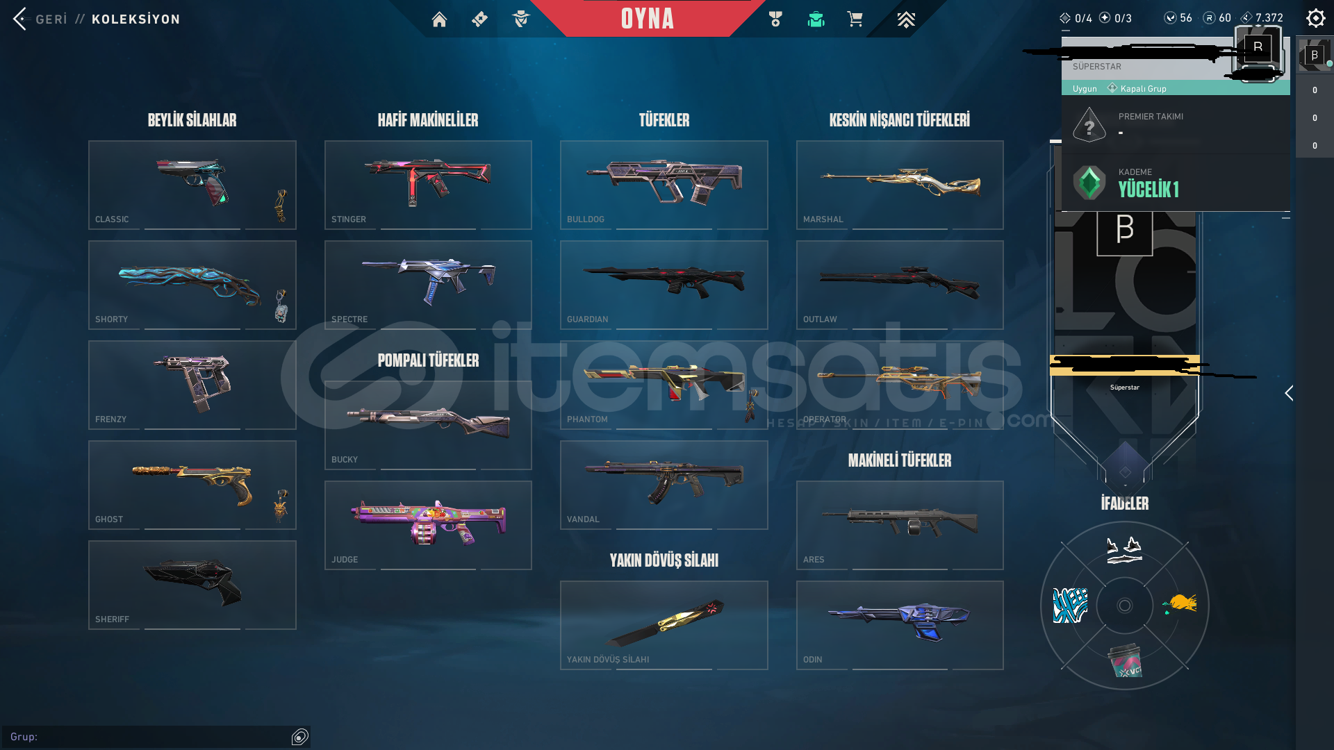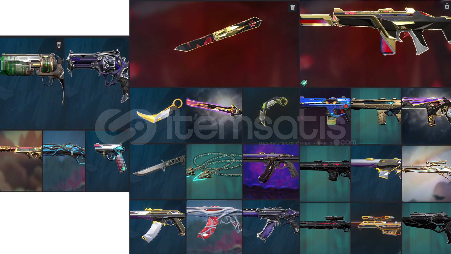 Toplam 70 Bin VP HarcandıPeak Rank: ASCENDANT 1Bıçak : Champions 2024 Blade, RGX 11z Pro Karambit, Araxys Bio-Atomizers, Xenohunter Knife, Prime//2.0 Karambit, Champions 2022 Butterfly KnifeVandal : Prelude to Chaos Vandal, Reaver Vandal, Prime Vandal, Gaia's Vengeance VandalPhantom : Champions 2024 Phantom, Araxys Phantom, Champions 2022 Phantom, Radiant Entertainment System PhantomGhost : Valiant Hero GhostSheriff : Araxys Sheriff, Reaver Sheriff, Neo Frontier SheriffClassic :...