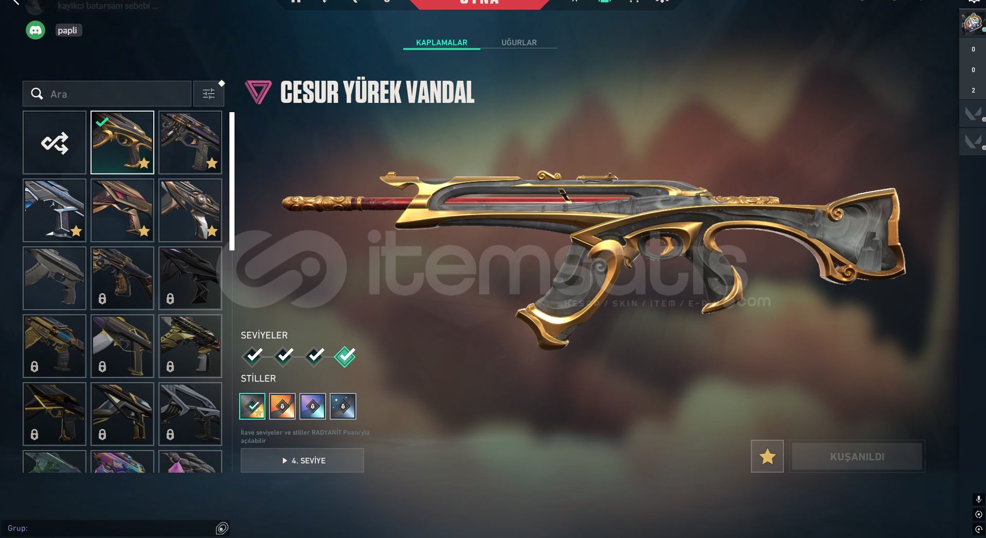 Hesapta bulunan skinler;