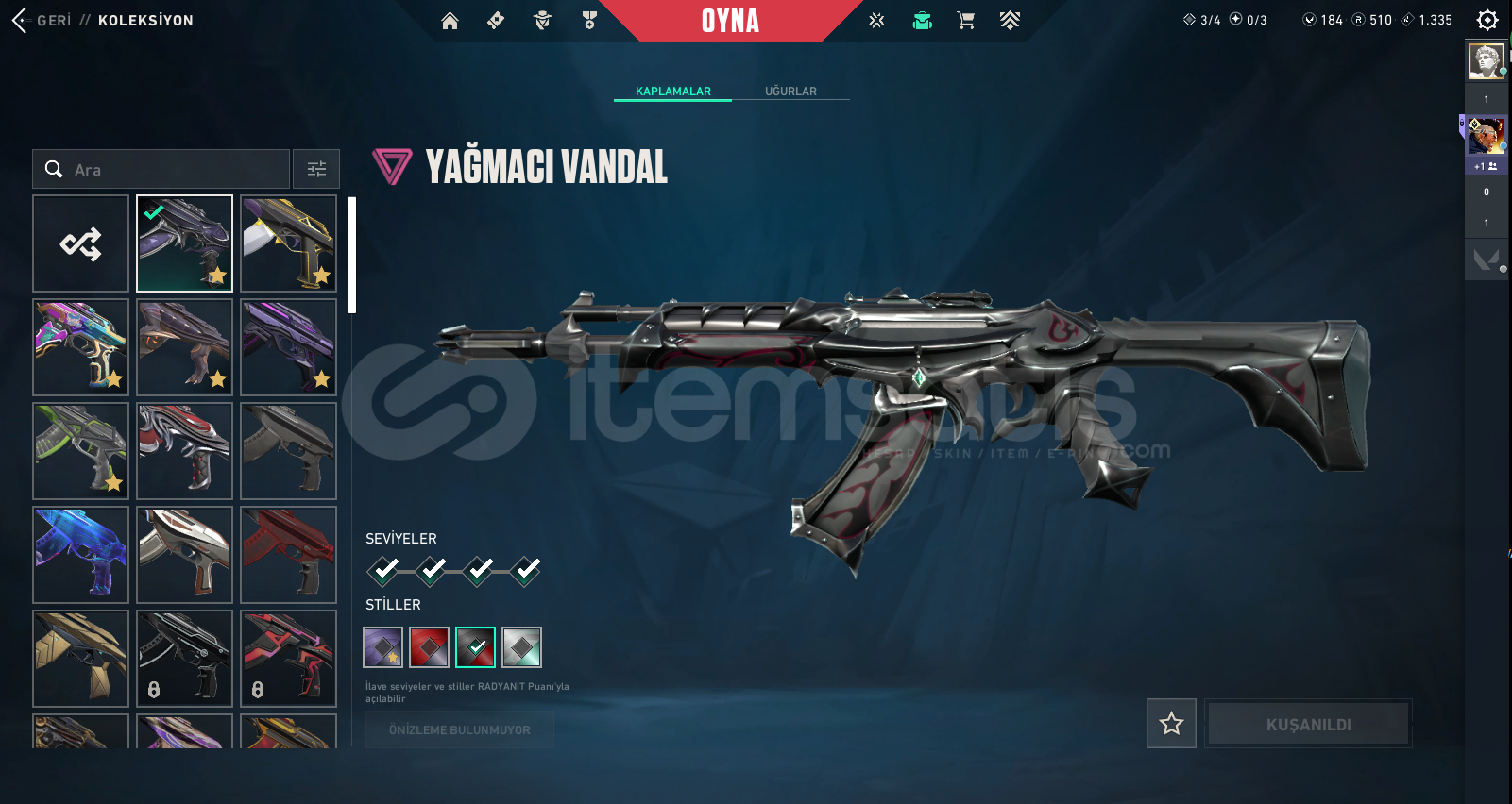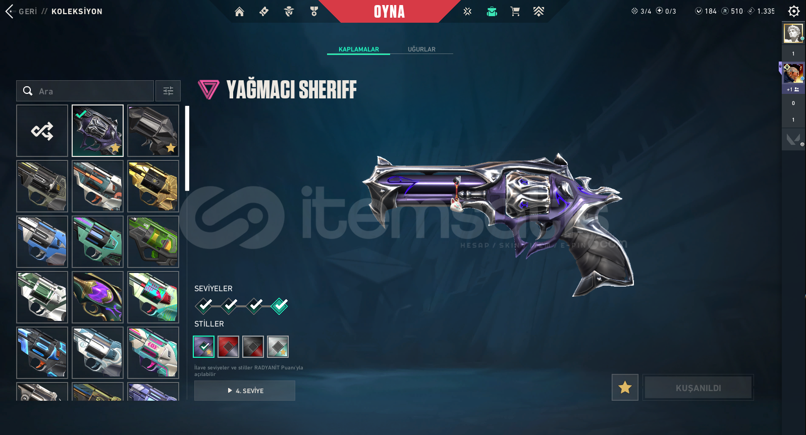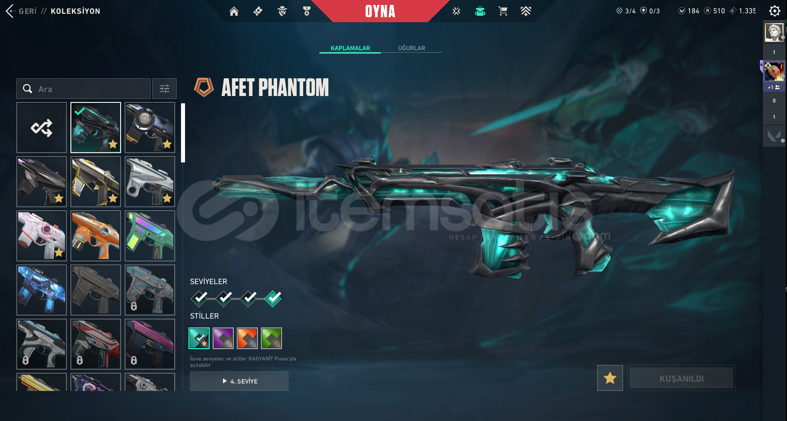 77350 TOTAL VP HARCANMIŞTIR 195 + BAŞARILI İŞLEM GÜVENCESİ !Peak Rank: ASCENDANT 2Bıçak :RGX 11z Pro Firefly, Prime//2.0 Karambit, Glitchpop DaggerVandal :RGX 11z Pro Vandal, Glitchpop Vandal, Prime Vandal, EX.O Vandal, Araxys Vandal, Reaver Vandal, Elderflame VandalPhantom :Ruination Phantom, Singularity Phantom, Ion Phantom, Silvanus Phantom, Spectrum Phantom, Prime//2.0 PhantomGhost :Infantry Ghost, Ruination Ghost, Sovereign GhostSheriff :Reaver Sher...