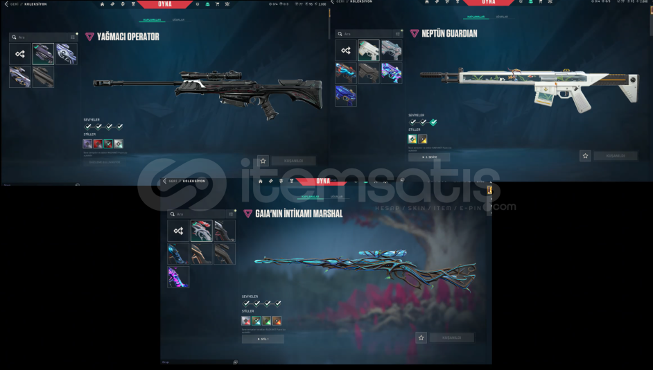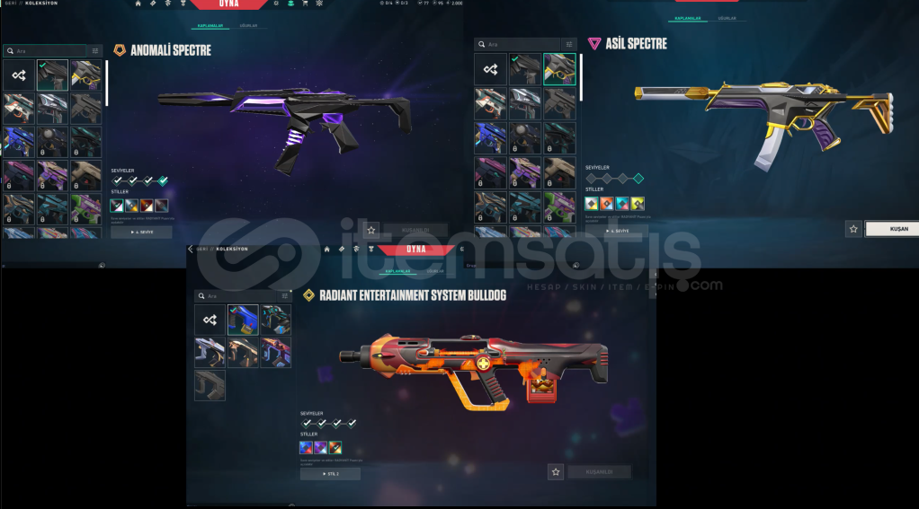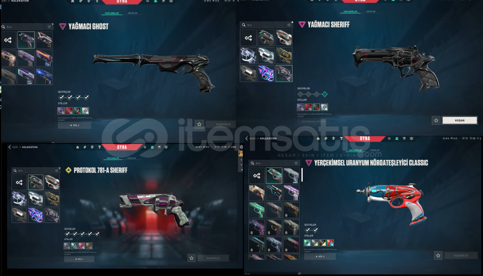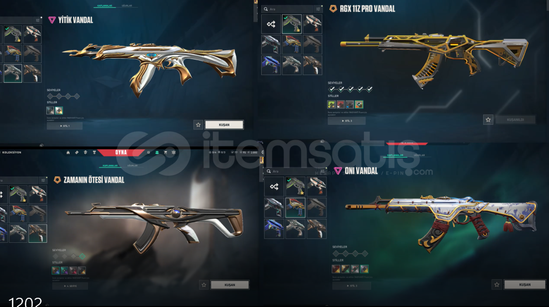 VandallerYitik (Forsaken) VandalRGX 11z Pro VandalZamanın Ötesi (Chronovoid) VandalOni VandalTabancalarYağmacı (Reaver) GhostYağmacı SheriffProtocol 781-A SheriffG.U.N ClassicSniper / GuardianYağmacı OperatorNeptün GuardianGaia’nın İntikamı MarshalSpectre + BulldogAnomali Spectre (Singularity)Asil (Prime) SpectreRadiant Entertainment System BulldogPhantom + OdinAsil 2.0 PhantomBlastX PhantomYağmacı OdinBıçakl...
