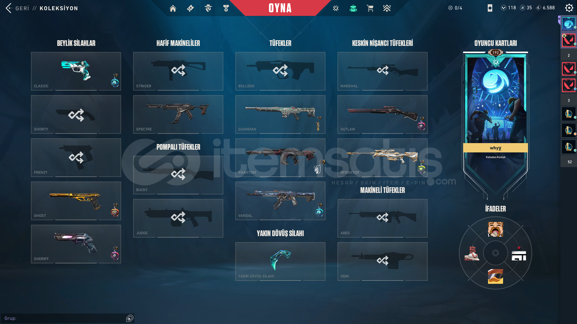 Hesabın İçerisindekiler;2025 VCT FUT BUNDLEFAZ KORUYUCU GHOSTGAIA GHOSTANOMALI SHERIFFVCT 2025 BUNDLEKURONAMI SPECTREONI GUARDIANZIFIRI PHANTOMKAOSUN BASLANGICI VANDALYAGMACI VANDALSIMSEK OUTLAWYITIK OPERATORHesapta Ekstra Olarak;YILDIZ BELASI KARTIRUH AZABI KARTIVCT 2025 FUT KARTIVCT 2025 AMERICAS, CN, PASIFIC ve EMEA kartları bulunmaktadır.Hesapta Sadece 2 Silahta Skin Yoktur;ARESSTINGERGeri Kalan Random Gösterilen Silahlarda Battlepass mevcuttur.Hesaba 1 Battle...