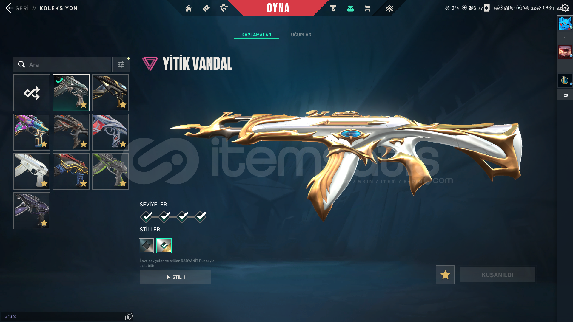 hesap 363 levelken peek rankı dia 3tür.hesapta 141 adet skin bulunmaktadırhttps://youtu.be/Jn9C6UNZLsk yukarıdaki linkte hesabın incelemesi bulunmaktadırhesapta bulunan skinler;yağmacı vandalyağmacı sheriffyağmacı karambityağmacı phantomchampions 2025 vandalyitik vandalrgx vandaloni vandalfelaketin kalbi vandalneptun vandalgaia vandaldelipop vandalözel harekat phantomiyon phantomsır çiçeği ...