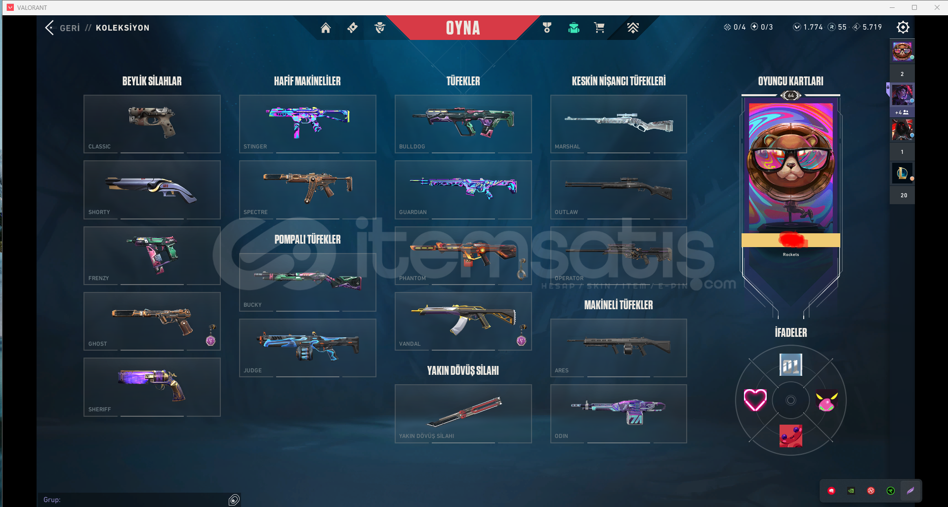 İLK MAİLLİ SATIŞTA KENDİ MAİLİNİZE DEVREDİLECEK, KULLANICI ADI DEĞİŞİKLİĞİ MEVCUT1774 RP MEVCUT - 64 LEVELUZUN SÜREDİR OYNAMIYORUM ARTIK CS GEÇTİĞİM İÇİN SATIYORUM PLAT ELOTAM MAİNLİK HESAPTIR.ÖNEMLİ SKİNLERİ AŞŞAĞIDA SIRALADIM, DİĞER SİLAHLARDA İSE BATTLEPASS SKİNLERİ MEVCUT.SİHİRPUNK...