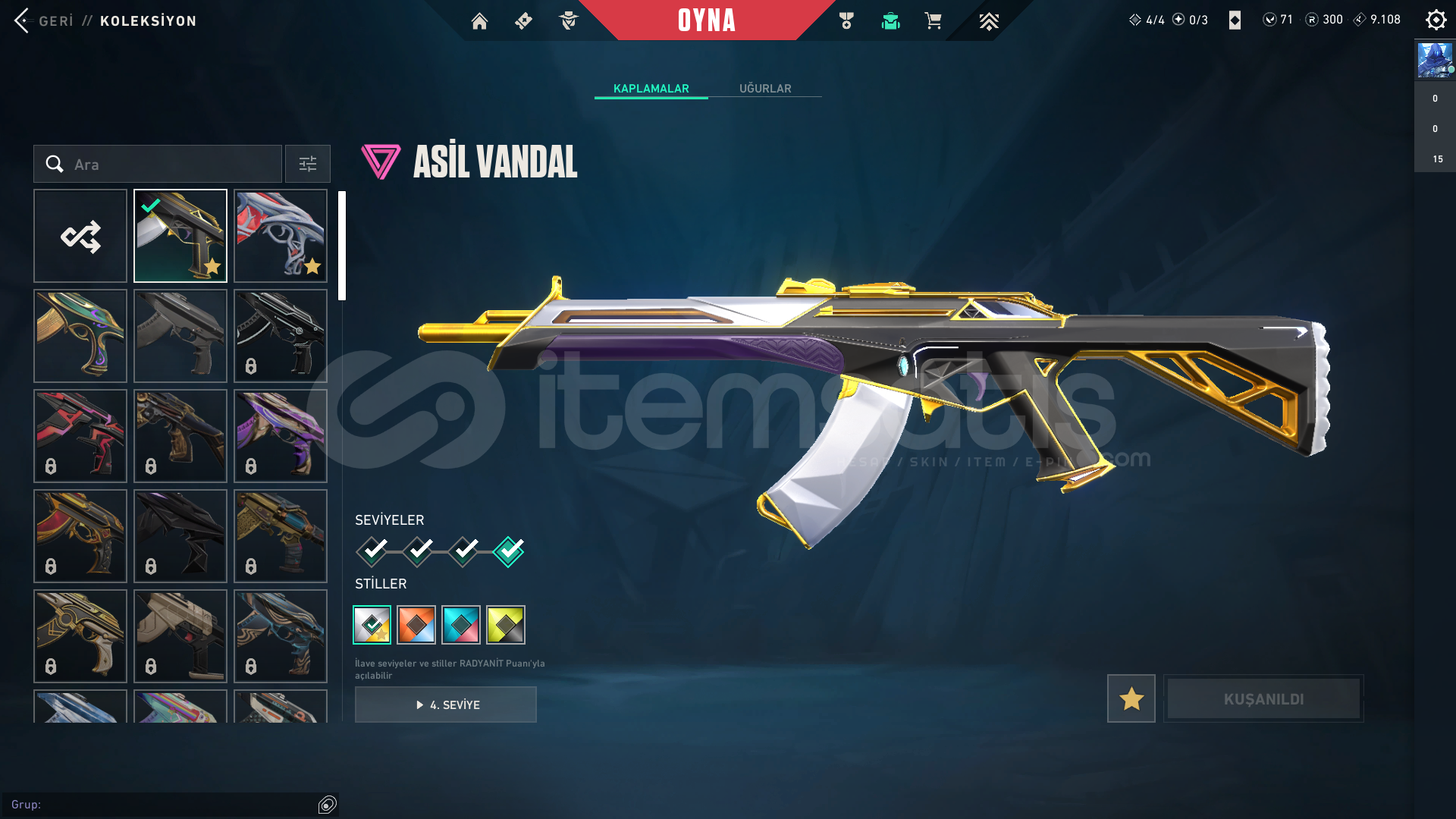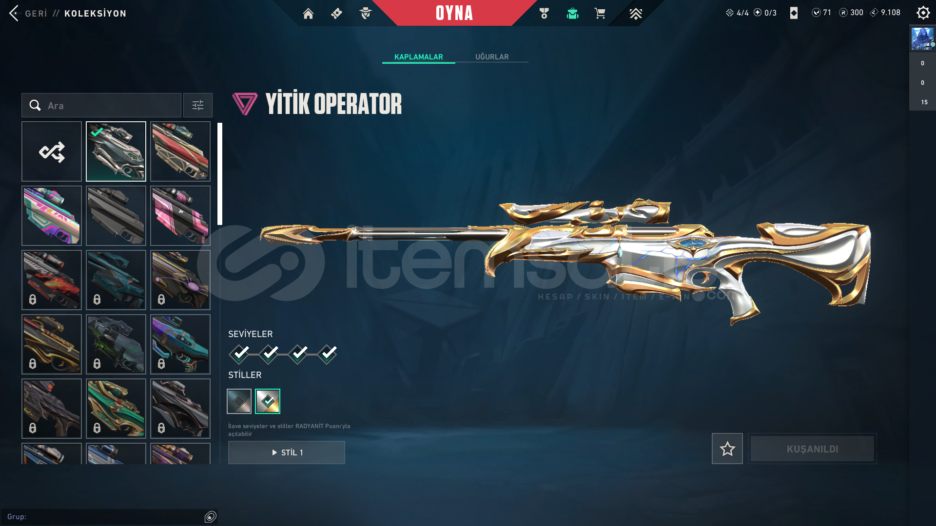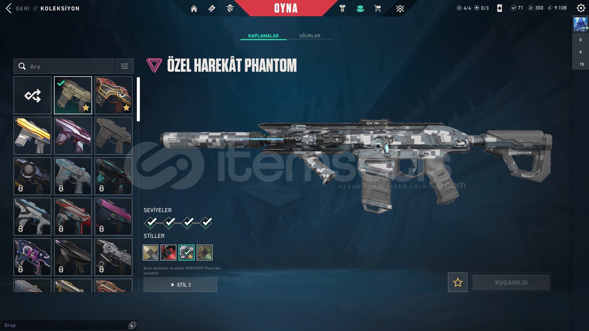 • HESAPTAKİ ÜCRETLİ SKİNLER;
