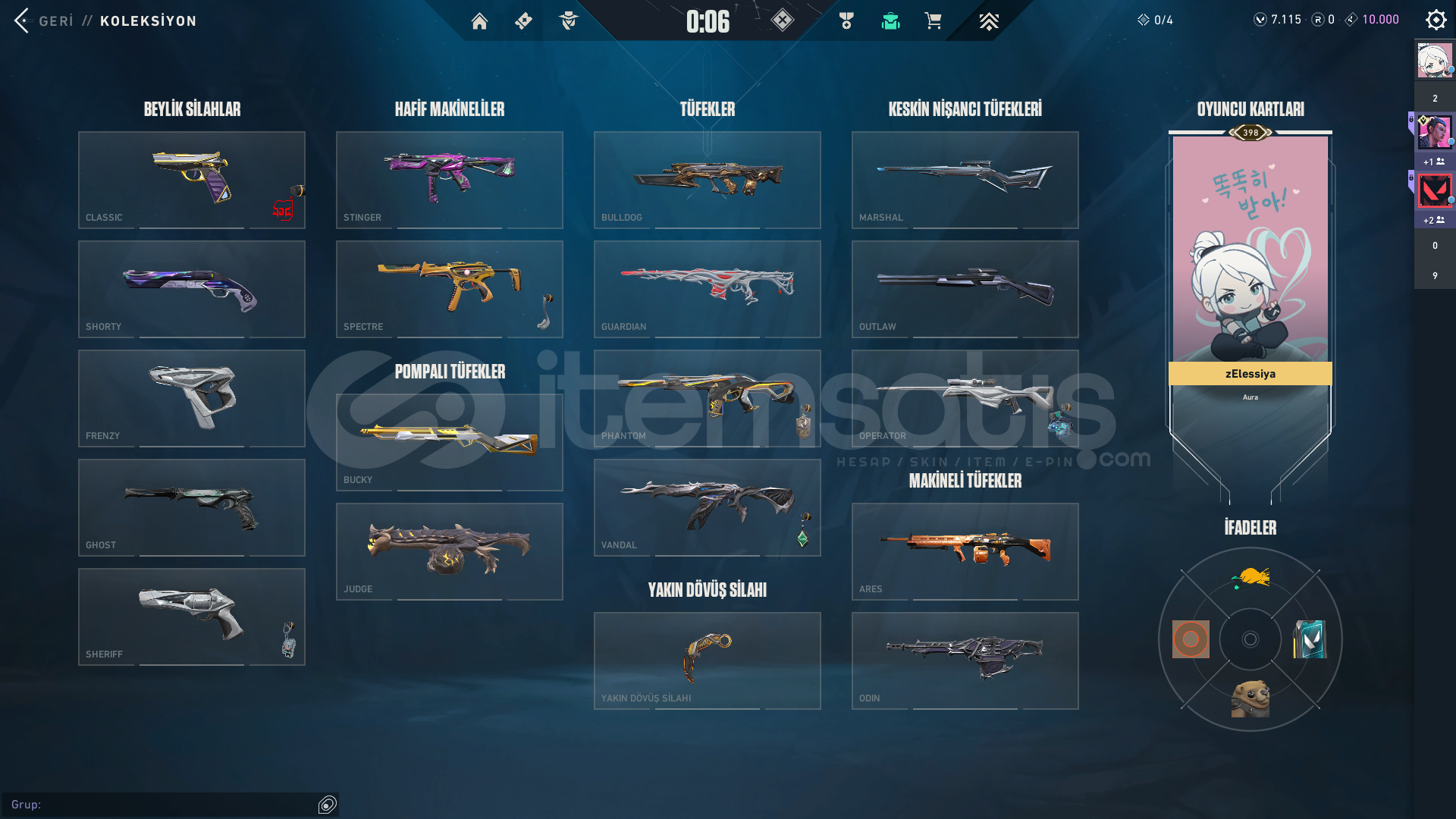 xAragornShop Güvencesiyle hesaplarımız son derece güvenlidir herhangi bir sorunla karşılaşmazsınız.Hesap immortal 1 10RREski Vp fiyatları ile 29000TL Satın Alma geçmişi Herhangi bir ban söz konusu değilTR Sunucu7160 VP MevcutHesapta bulunan preimum skinler --------------------------------ASİL CLASSİCVCT X JDG CLASSİCİYON FRENZYYAĞMACI GHOSTANOMALİ GHOSTSİHİRPUNK GHOSTKURONAMİ...